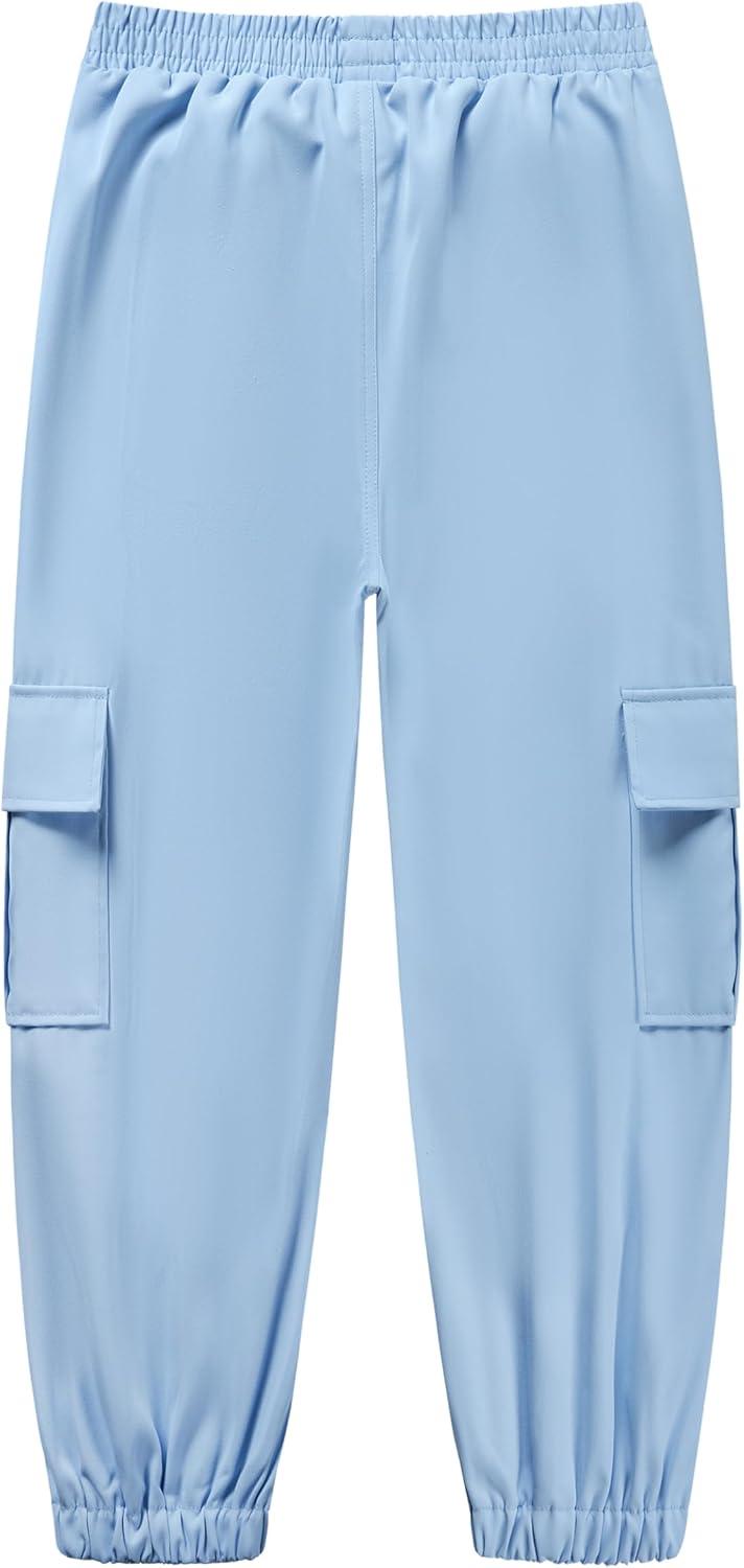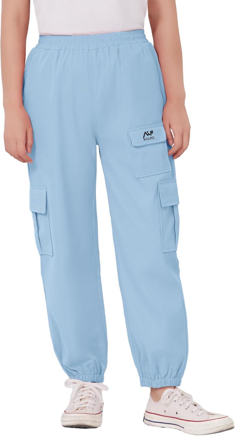 WULFUL Girl’s Casual Cargo Jogger Pants Adjustable Waist(Blue)