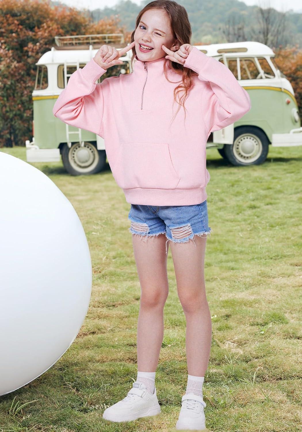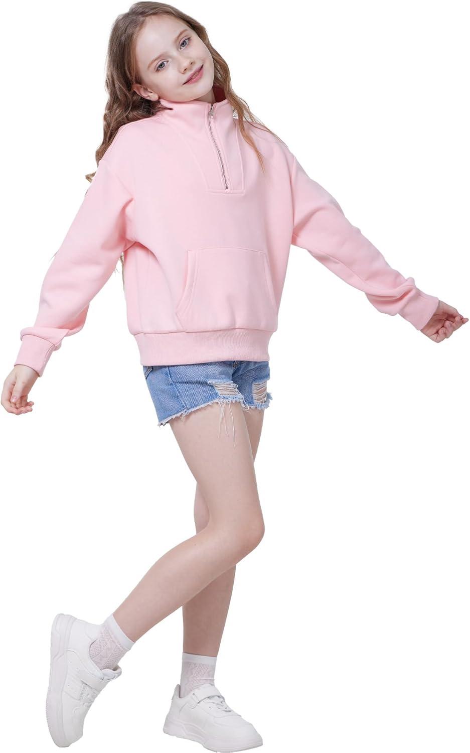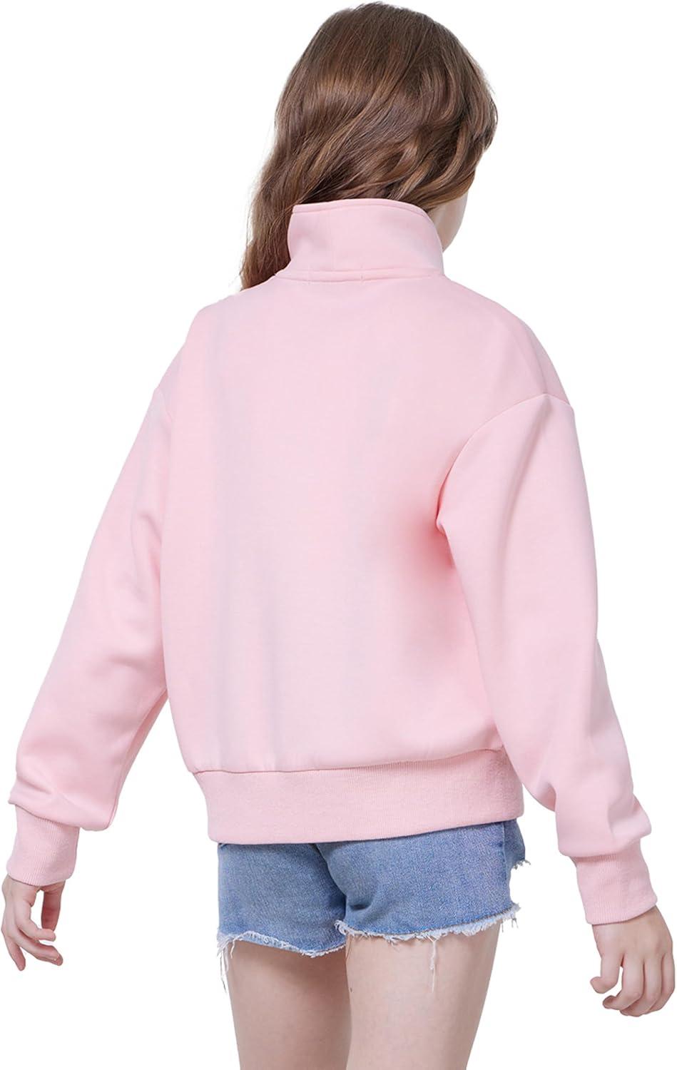 WULFUL Girls Casual Half Zipper Sweatshirts Long Sleeve Fashion Pullovers for Teen Girls(Pink)