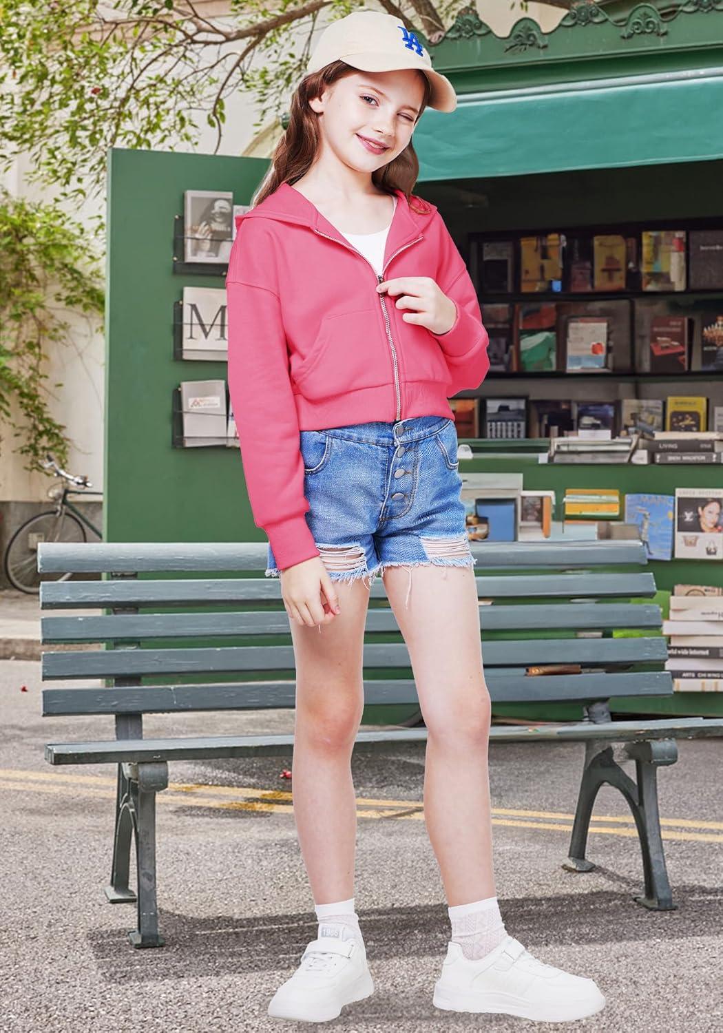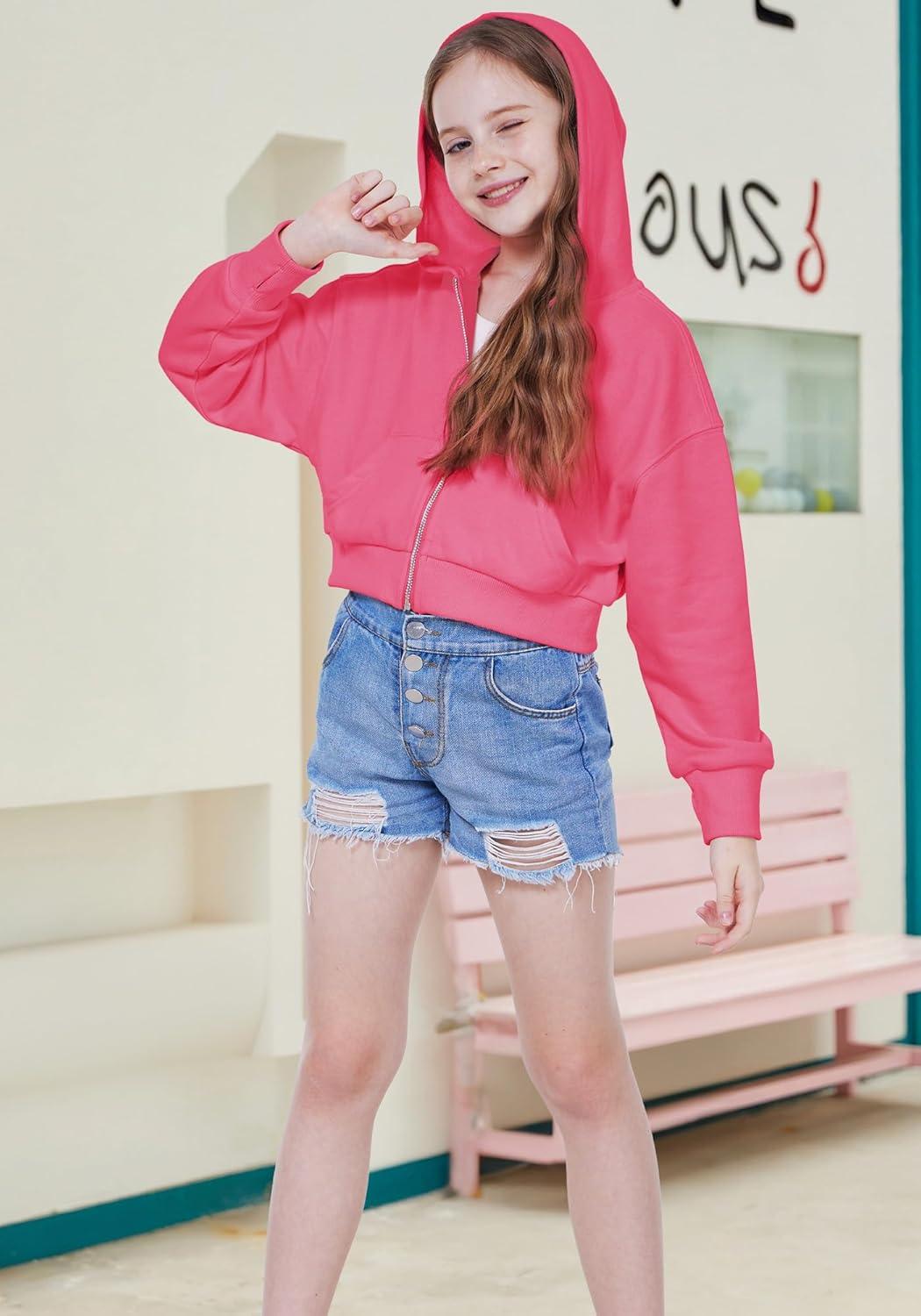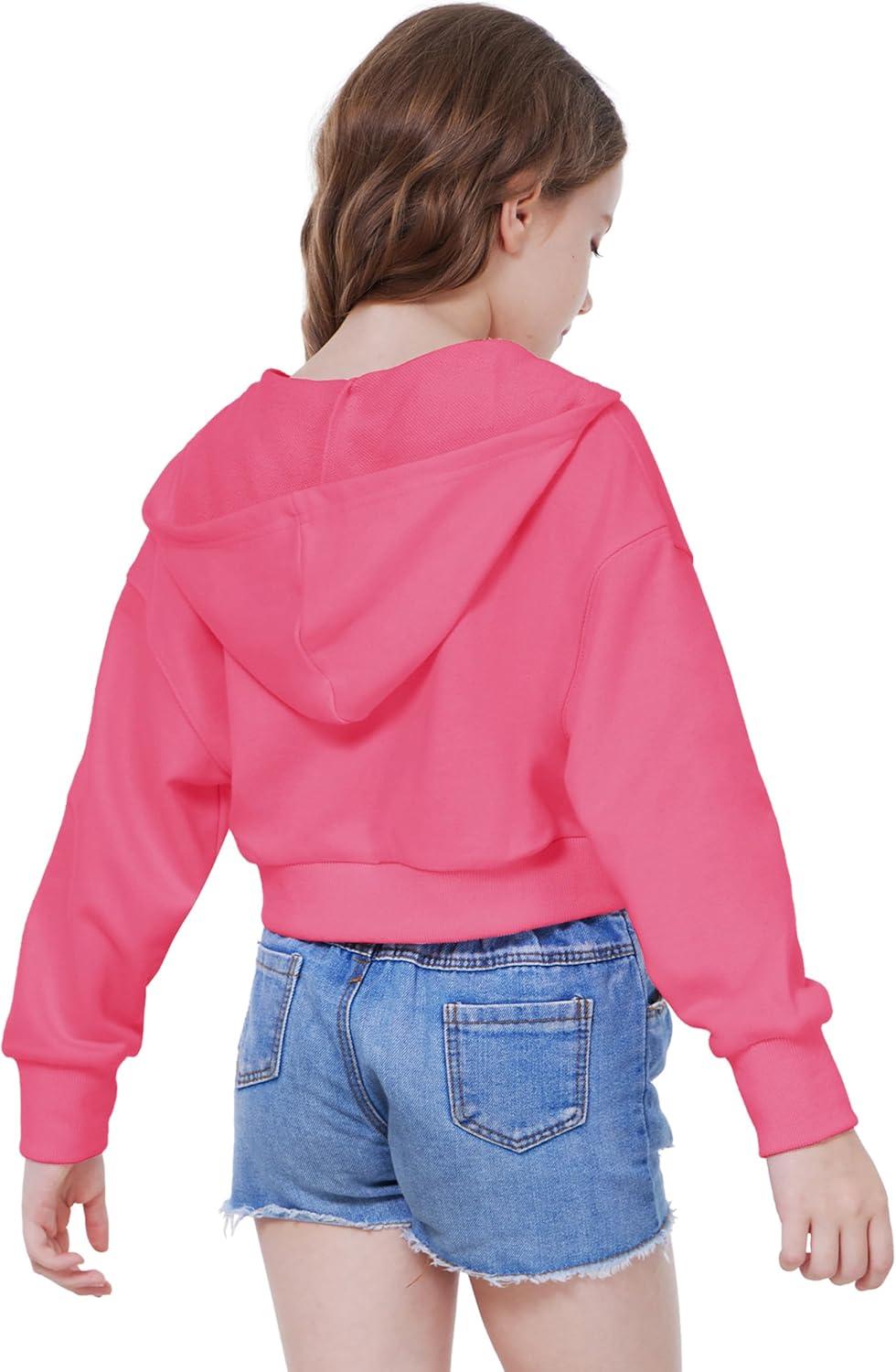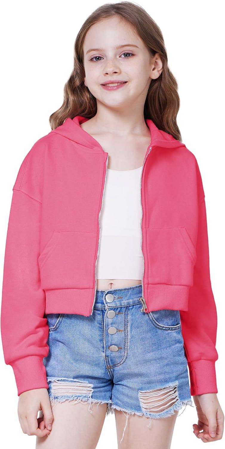 WULFUL Girls Casual Zipper up Sweatshirts Crop Jackets for Teens(Rose Red)