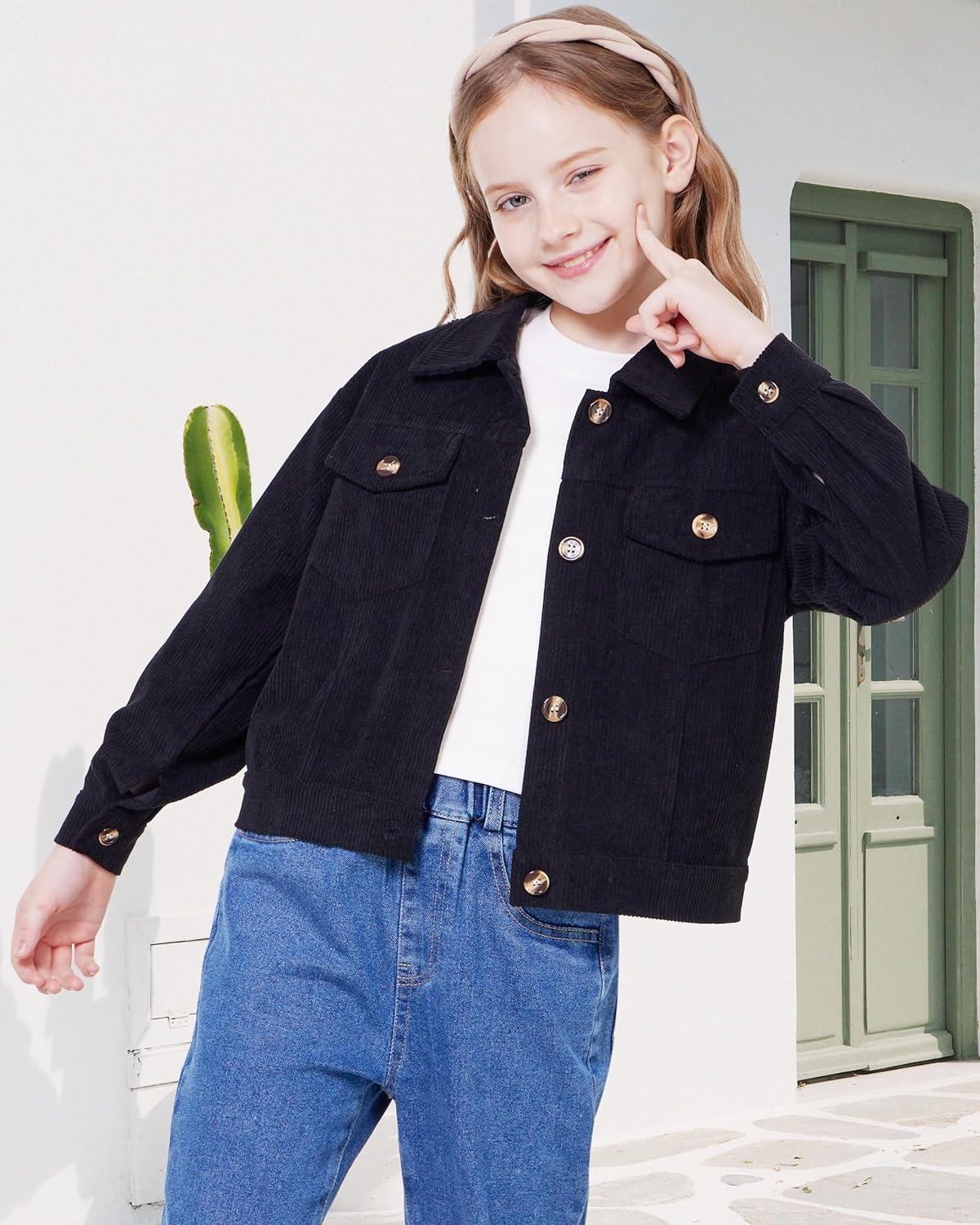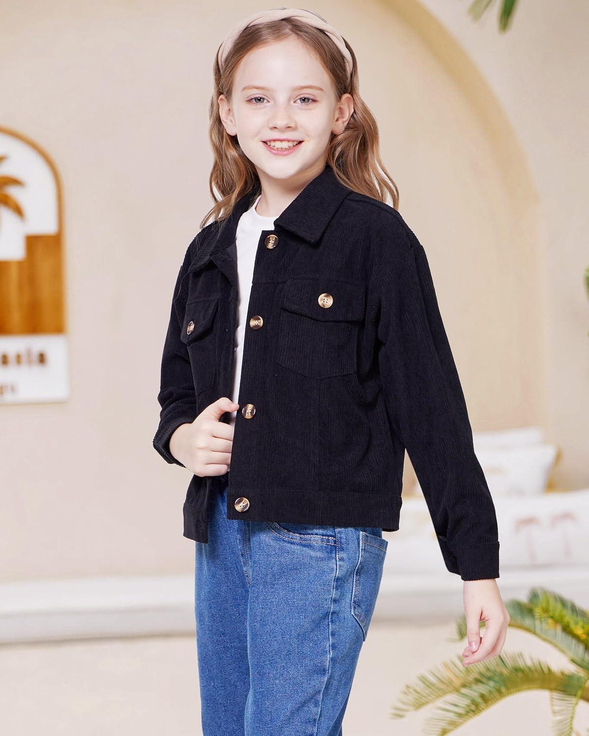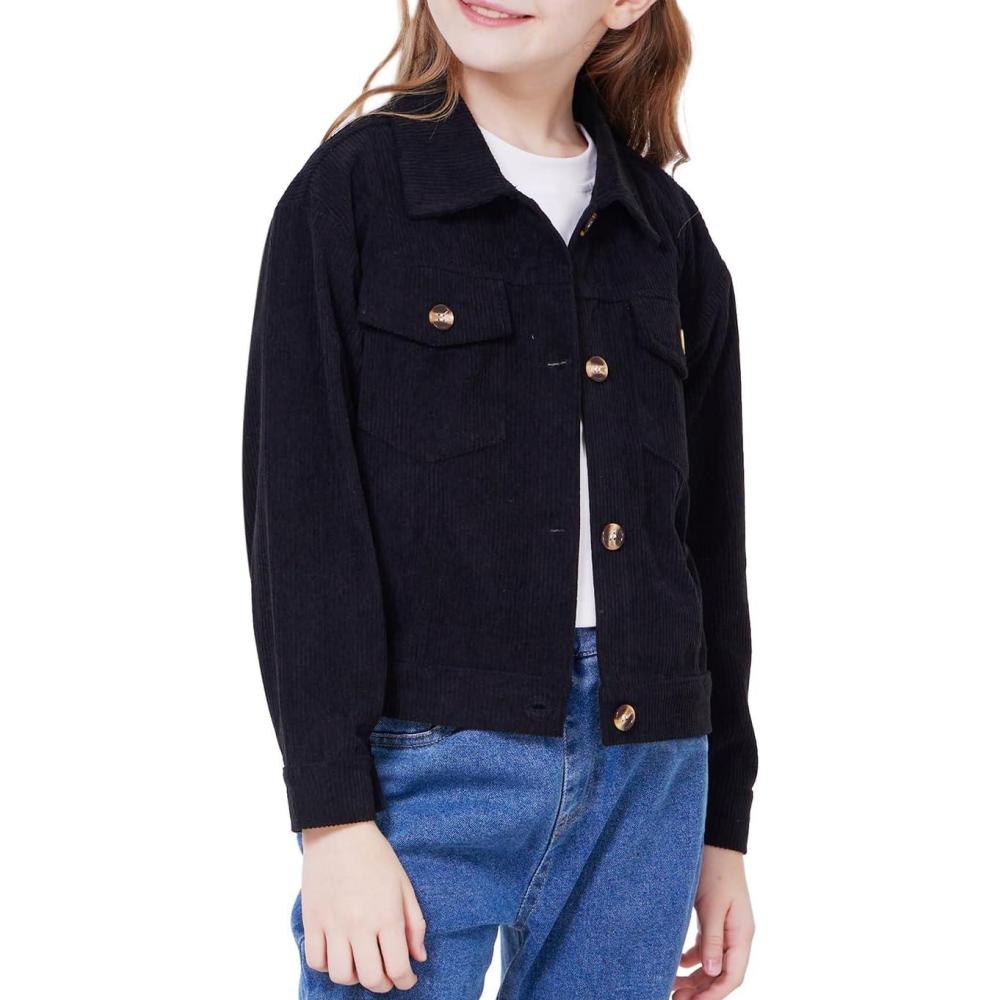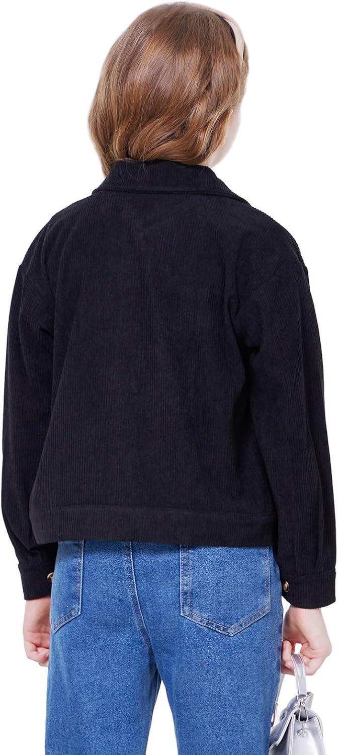 WULFUL Girl's Fashion Button Down Corduroy Jackets Casual Fall Jackets Teen Girl Outerwear(Black)