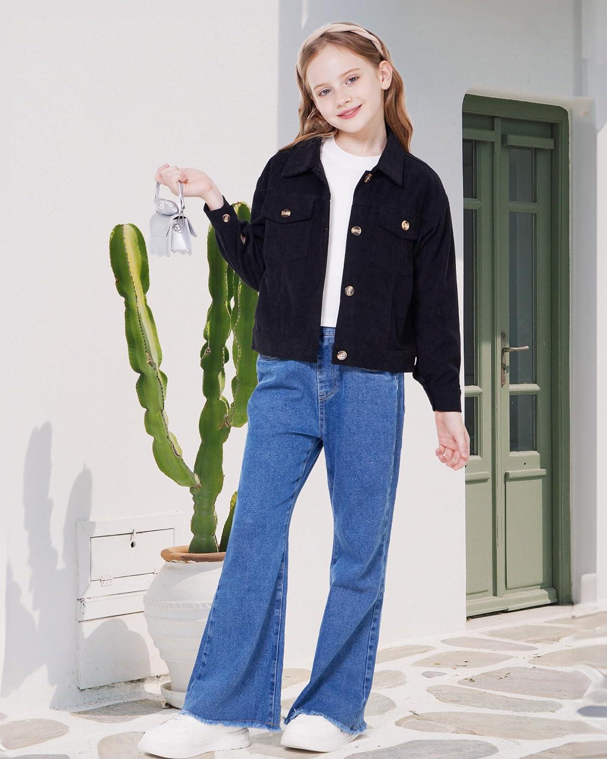 WULFUL Girl’s Fashion Button Down Corduroy Jackets Casual Fall Jackets Teen Girl Outerwear(Black)