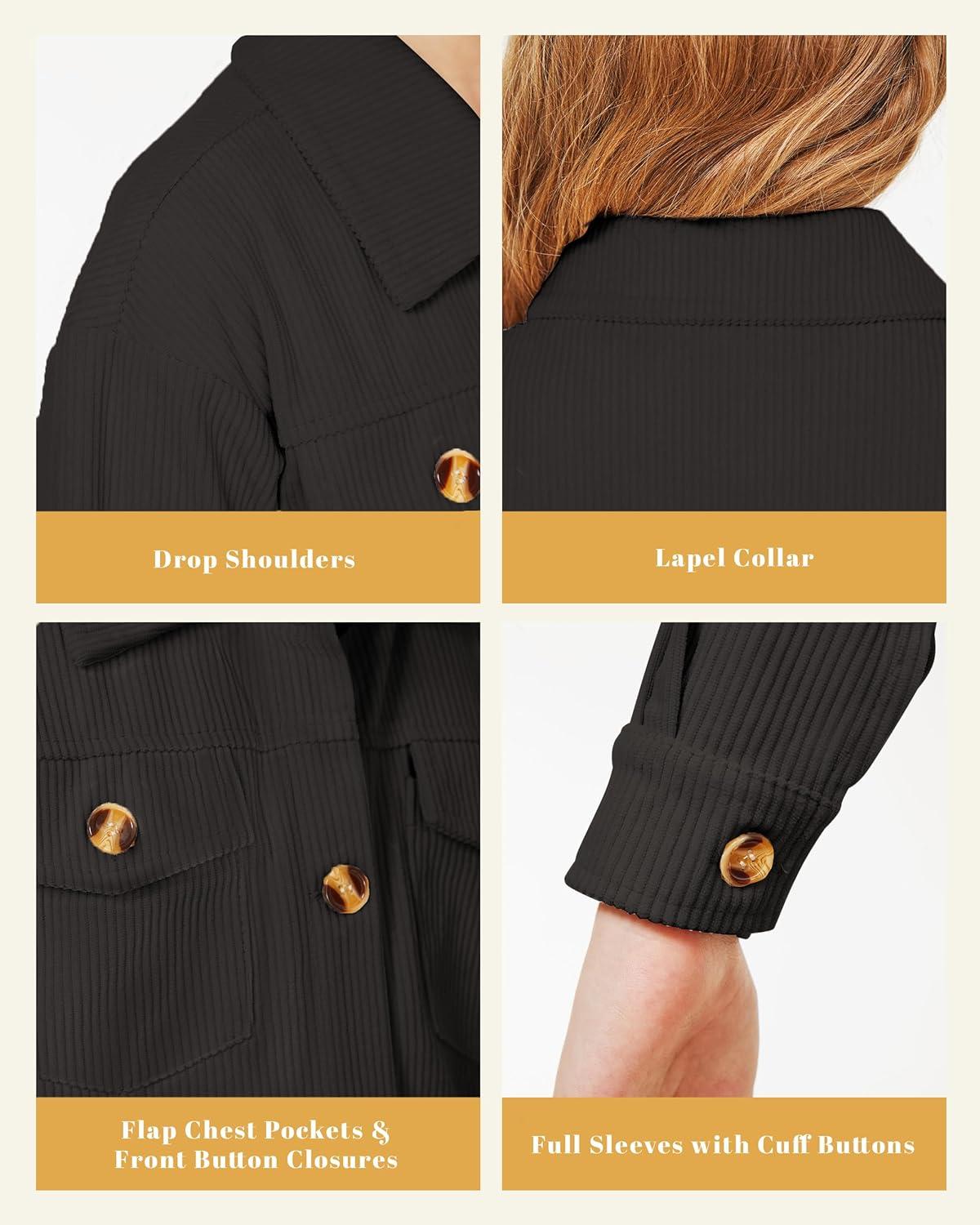 imageWULFUL Girls Fashion Button Down Corduroy Jackets Casual Fall Jackets Teen Girl OuterwearBlack