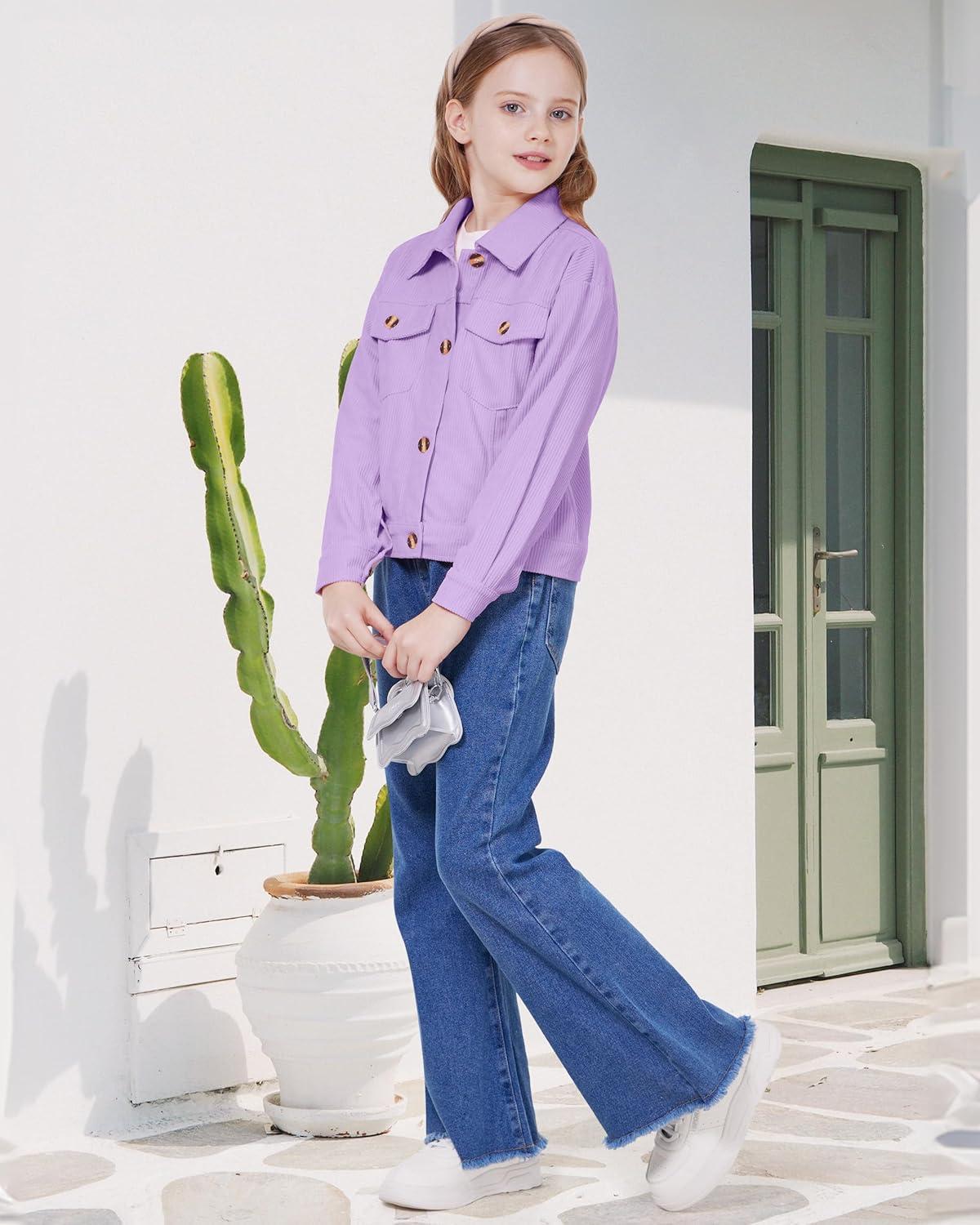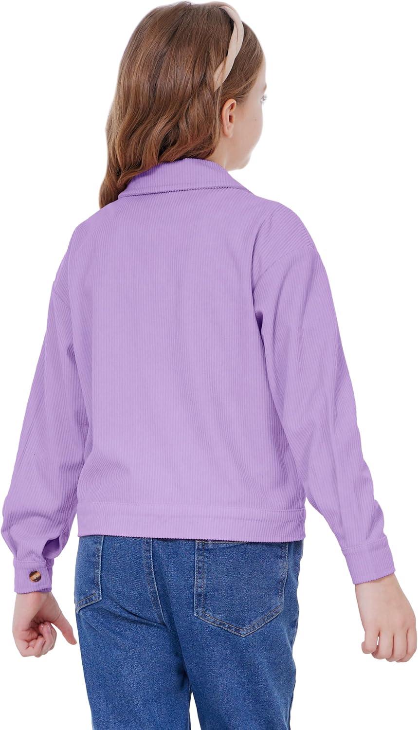WULFUL Girl's Fashion Button Down Corduroy Jackets Casual Fall Jackets Teen Girl Outerwear(Purple)