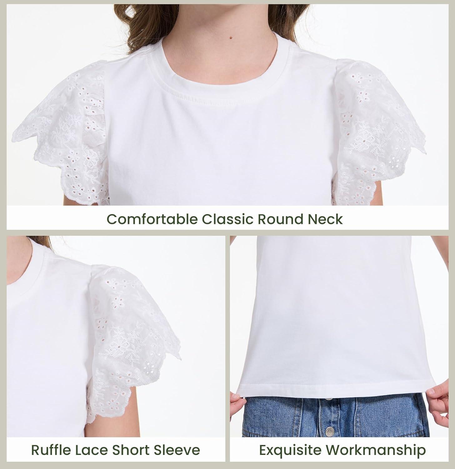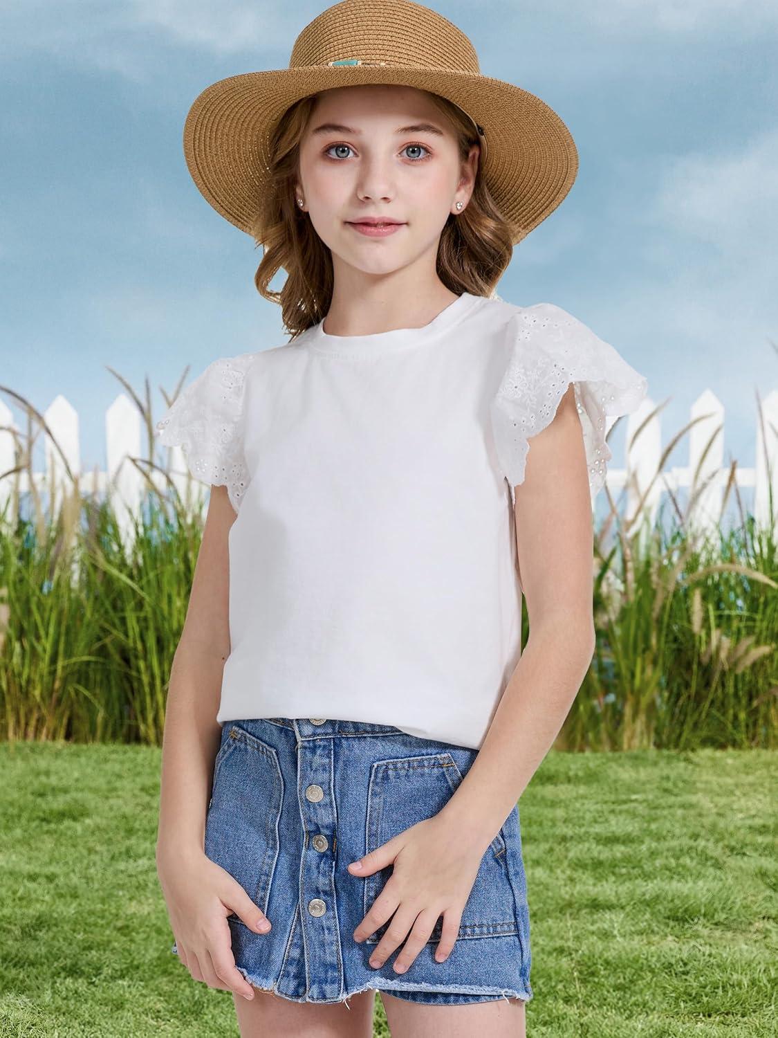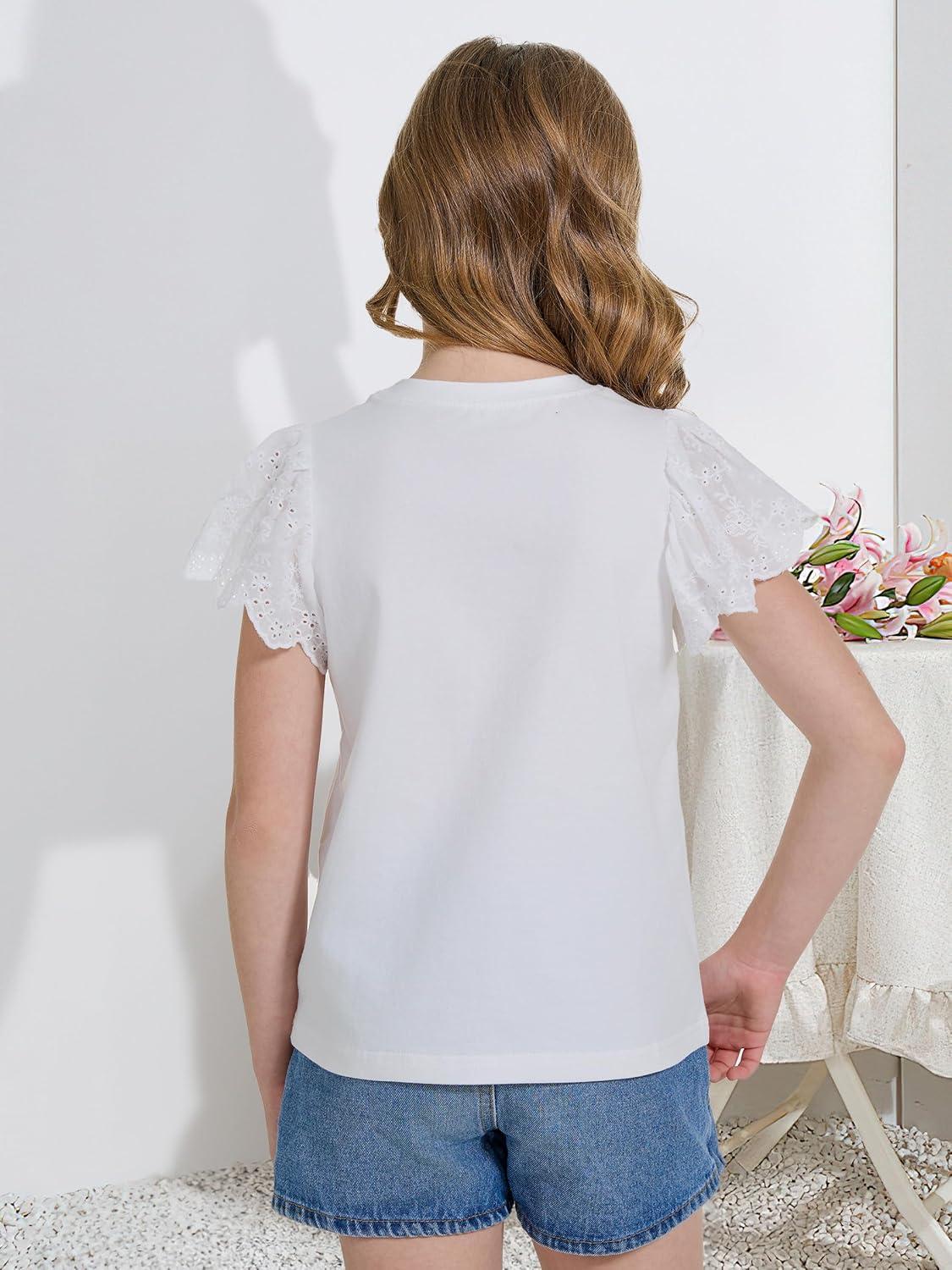WULFUL Girls Shirts Fashion Cotton Summer Short Sleeve Tops Casual T-Shirts 4-15 Years Old(White)