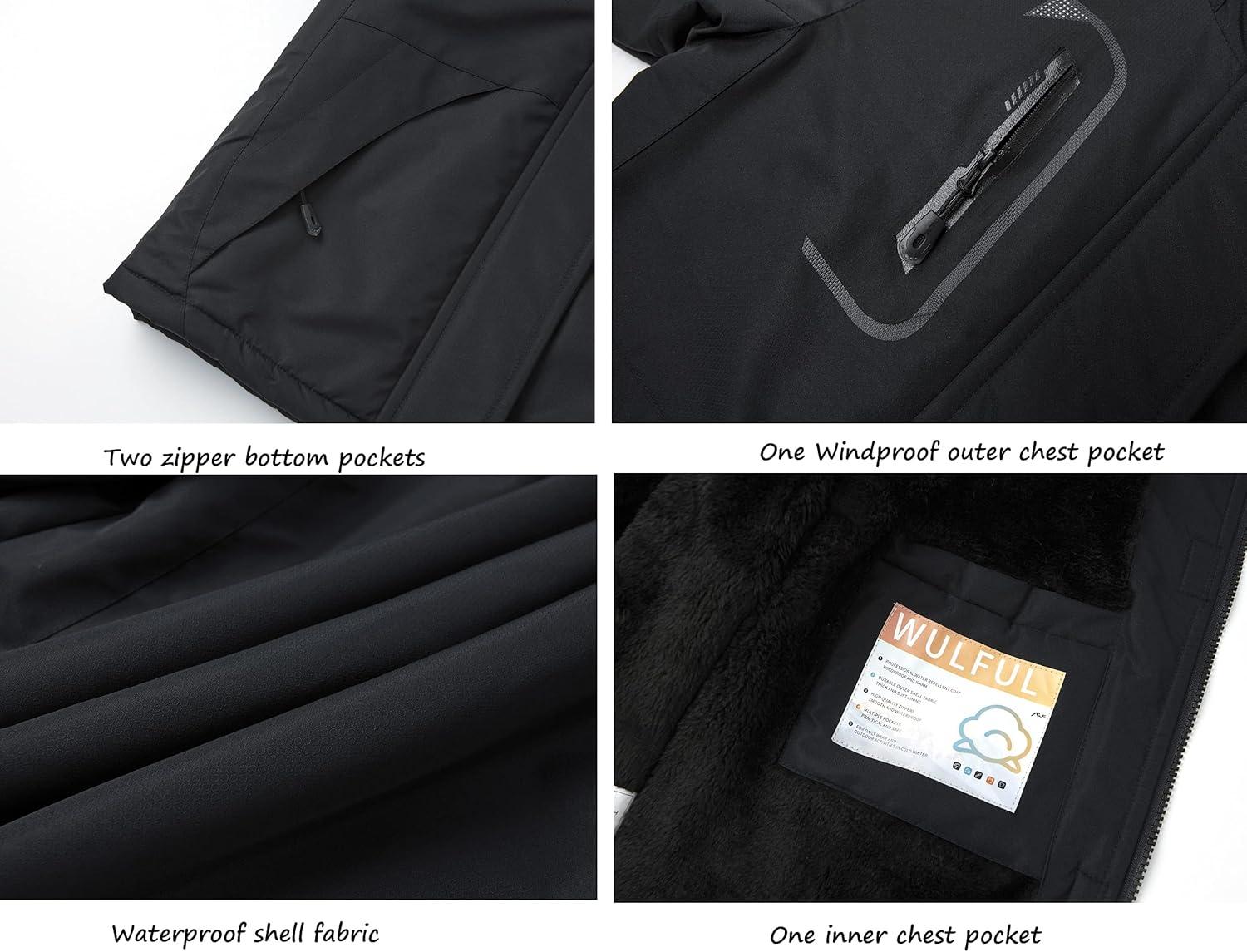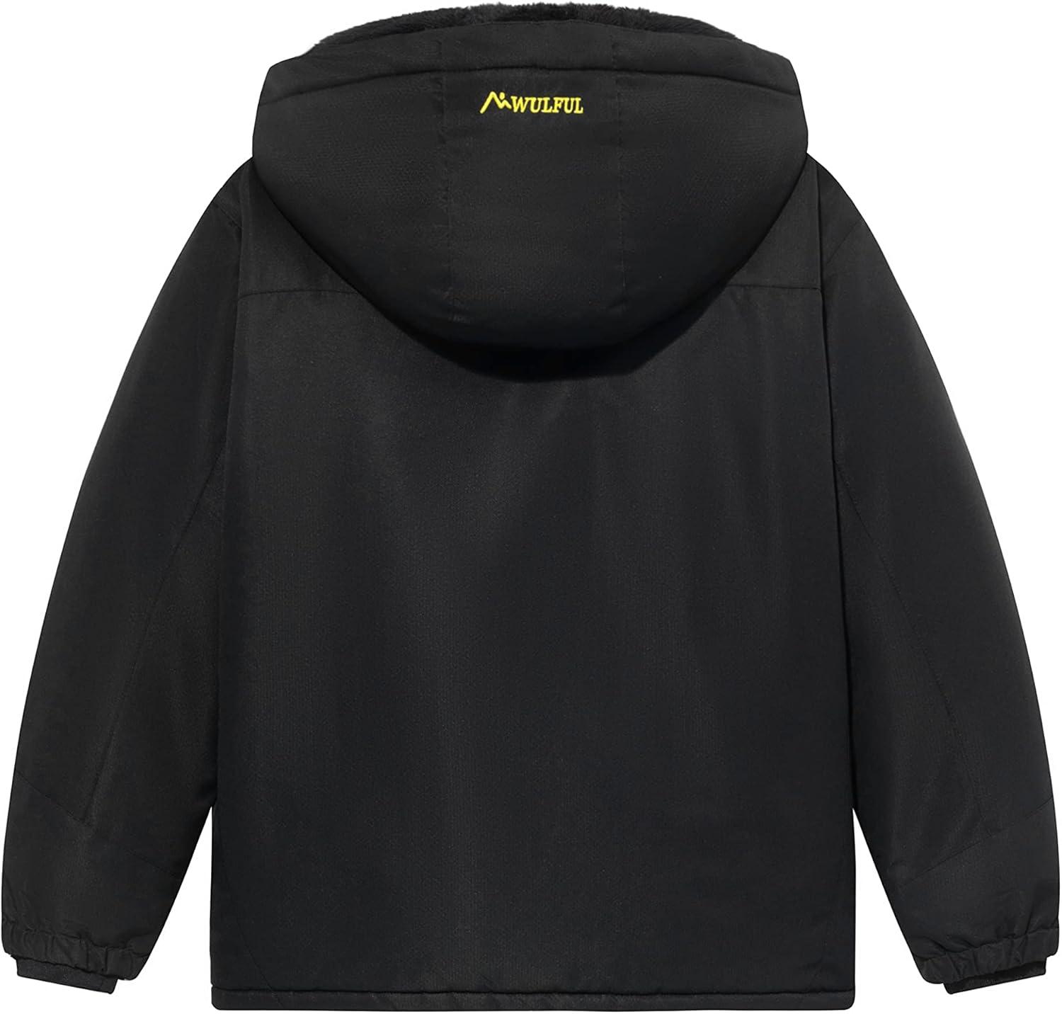 WULFUL Girl’s Waterproof Ski Jacket Warm Fleece Hooded Winter Snow Coat(Black)