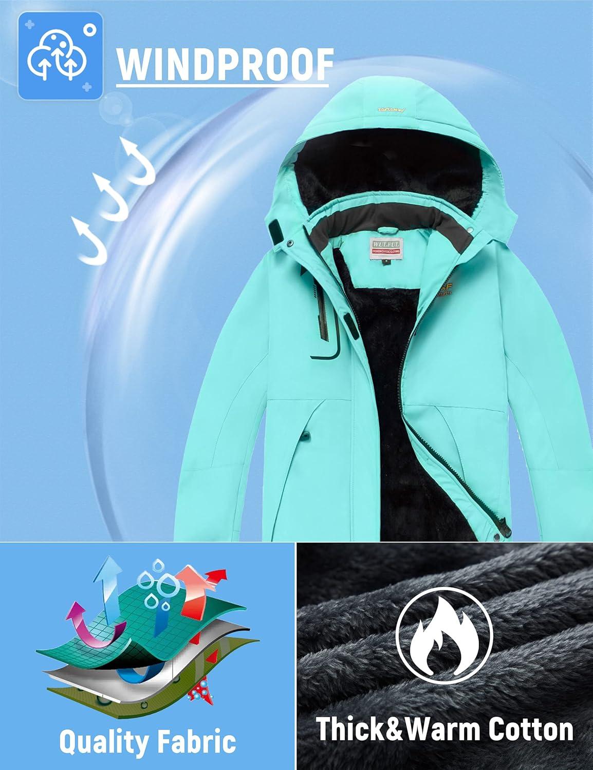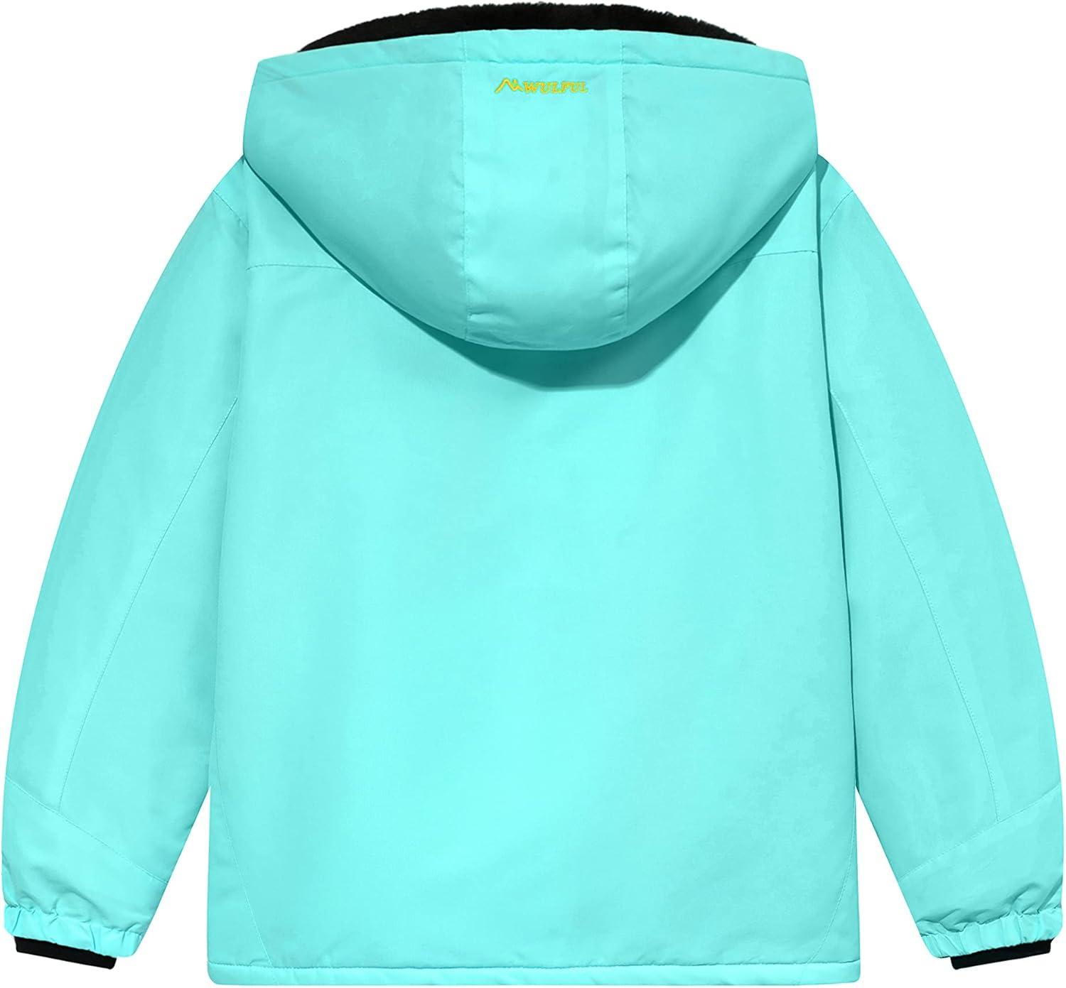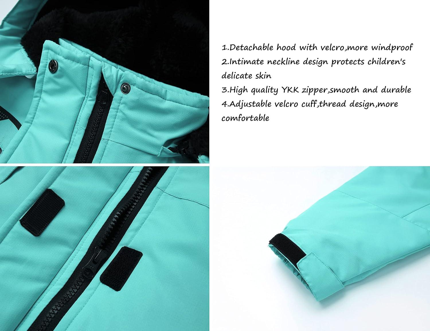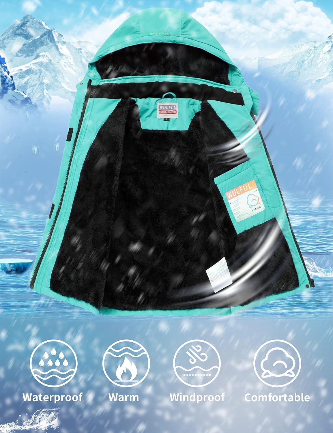 WULFUL Girl’s Waterproof Ski Jacket Warm Fleece Hooded Winter Snow Coat(Light Blue)