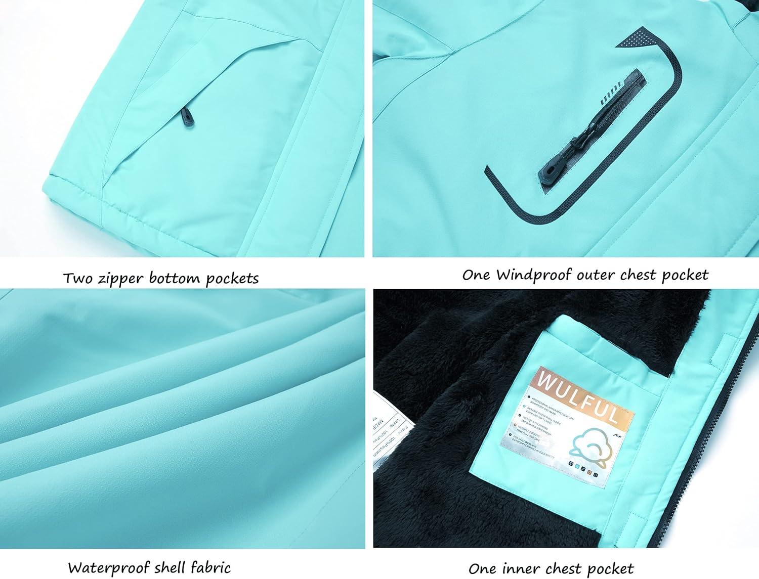 WULFUL Girl’s Waterproof Ski Jacket Warm Fleece Hooded Winter Snow Coat(Blue)