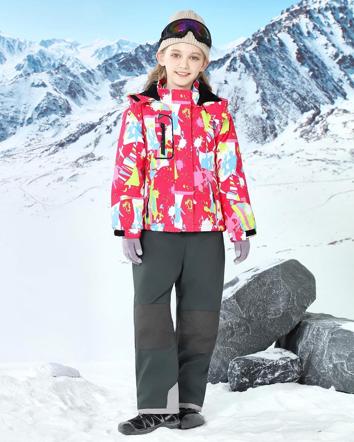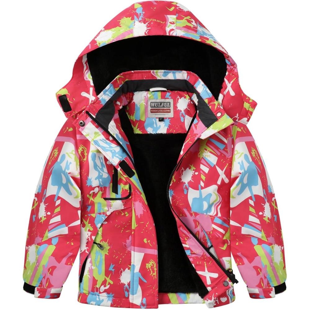 WULFUL Girl’s Waterproof Ski Jacket Warm Fleece Hooded Winter Snow Coat(Multicolor)