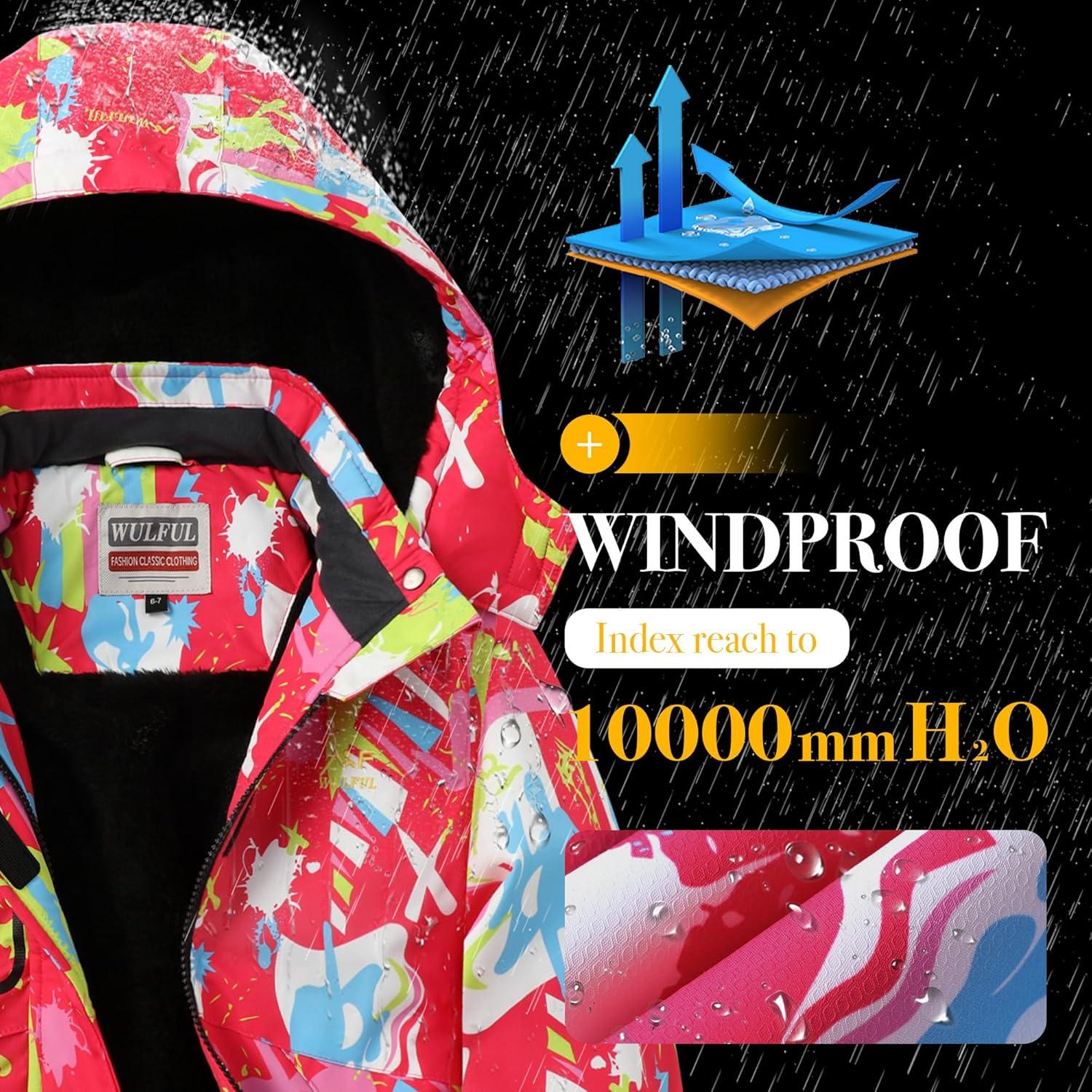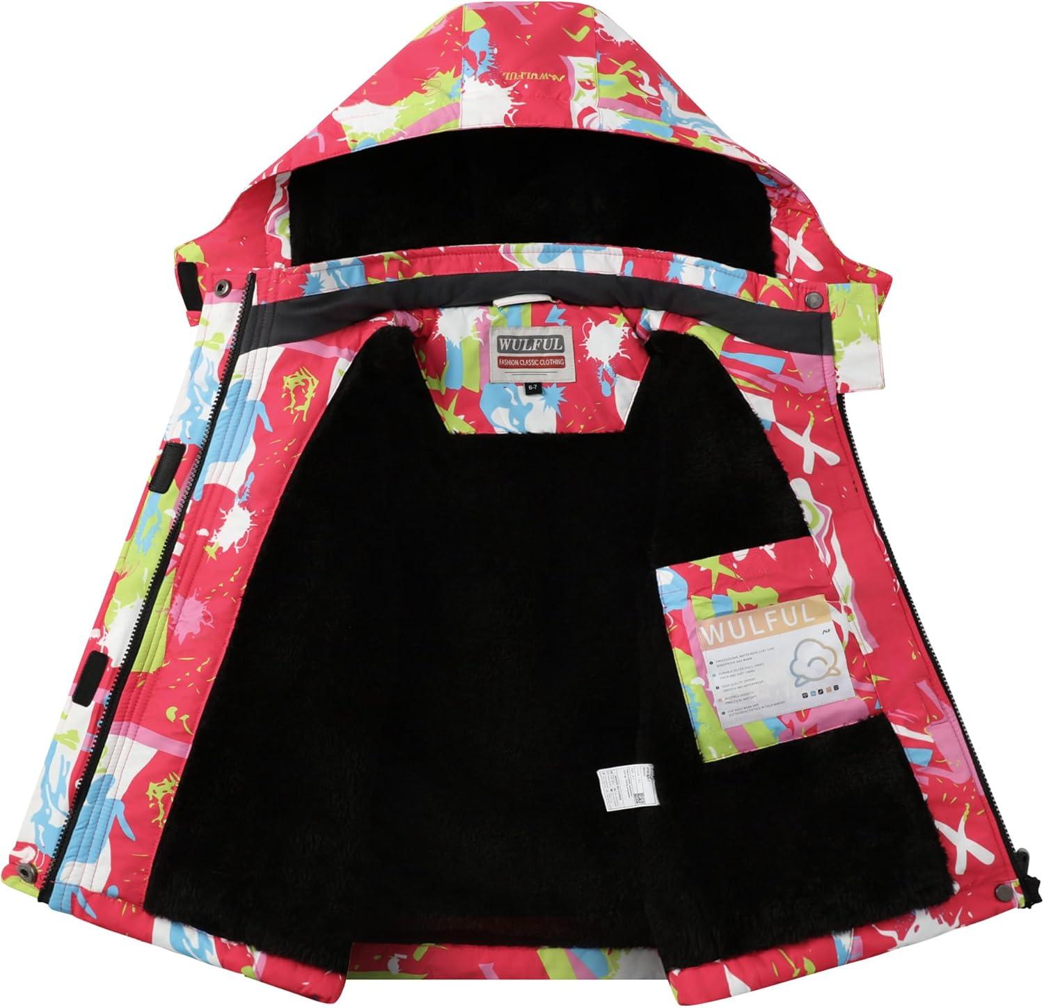 WULFUL Girl's Waterproof Ski Jacket Warm Fleece Hooded Winter Snow Coat(Multicolor)