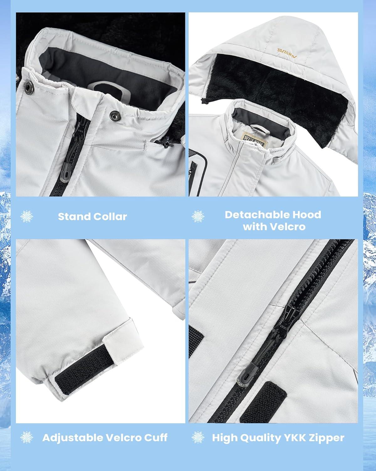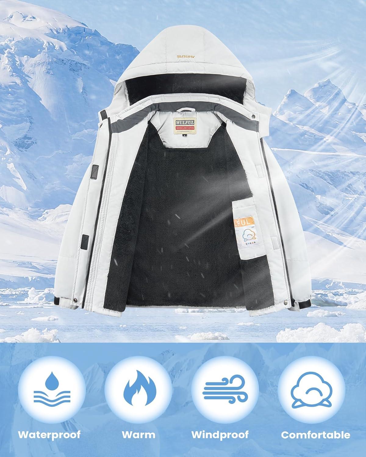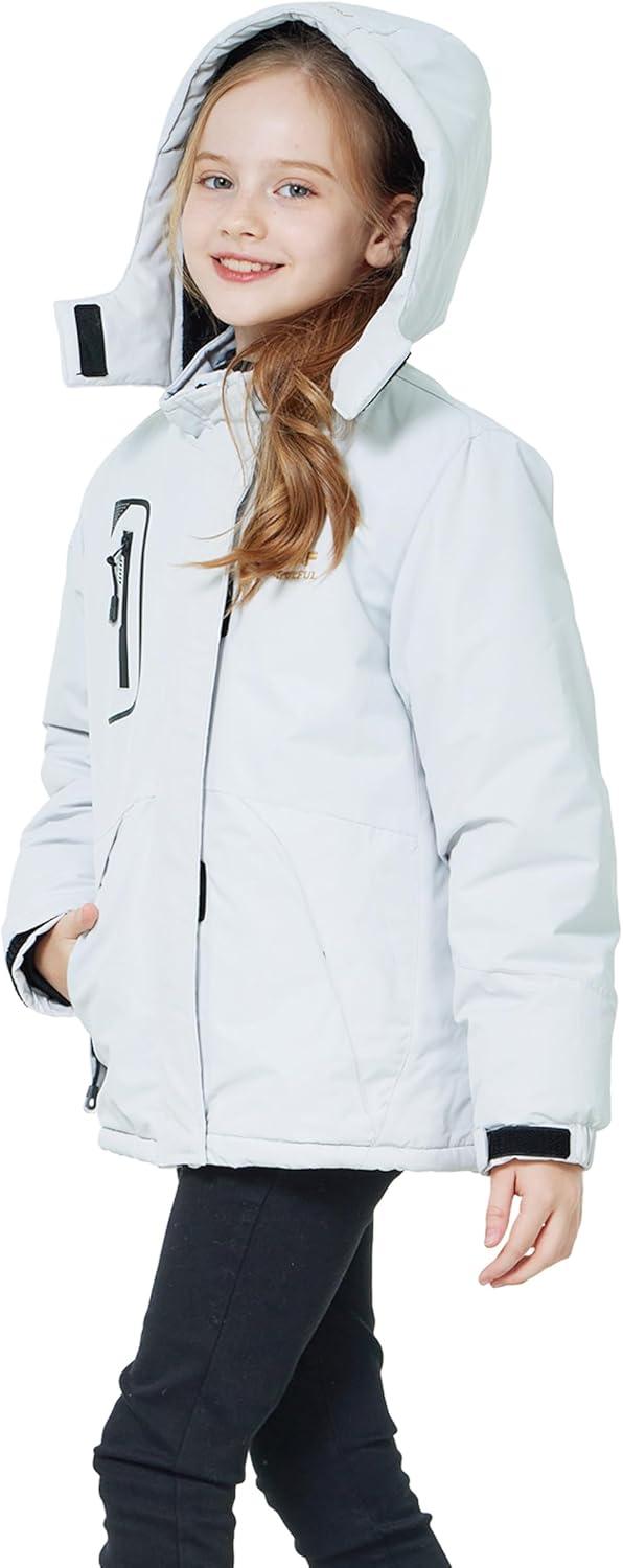 WULFUL Girl’s Waterproof Ski Jacket Warm Fleece Hooded Winter Snow Coat(Off-white)