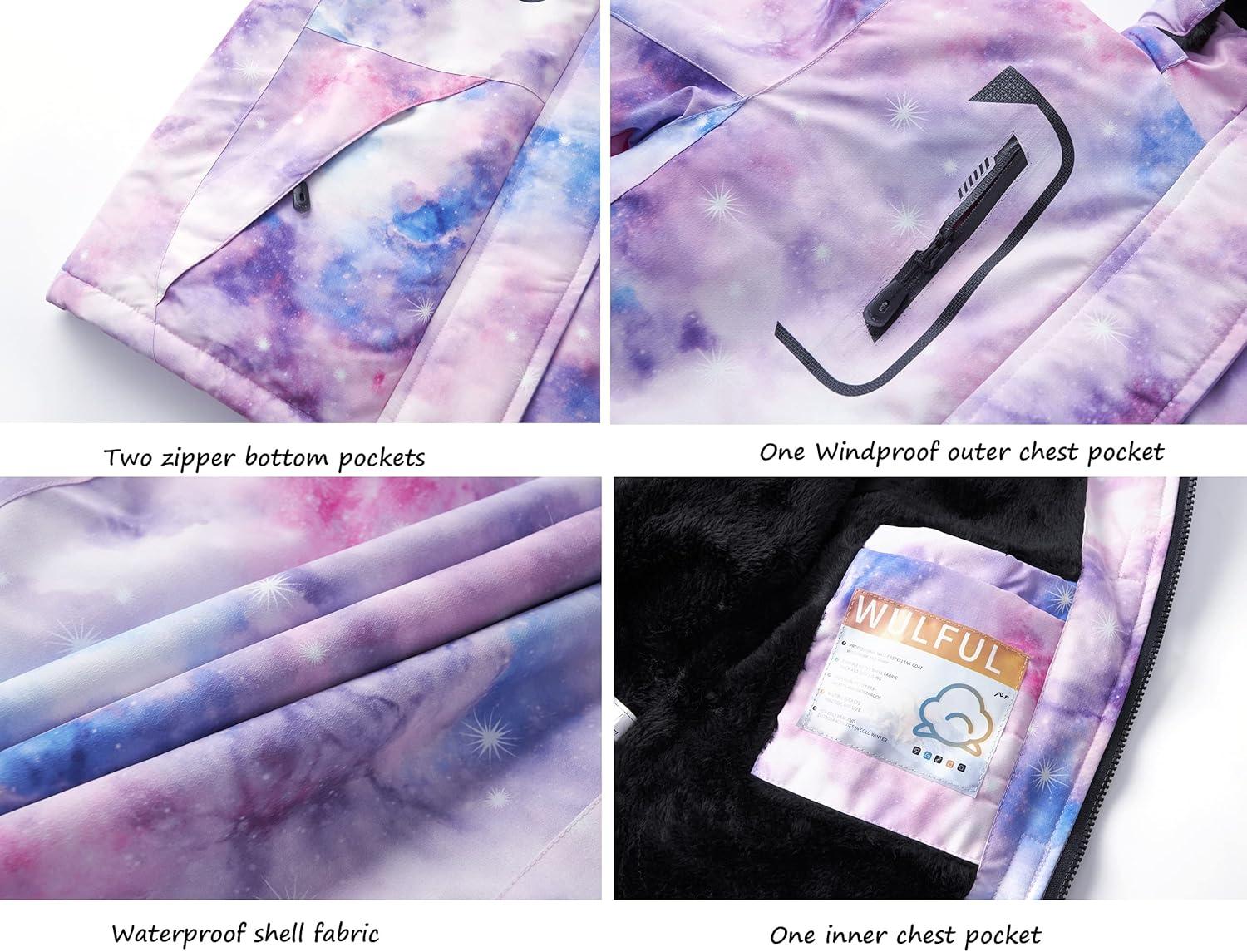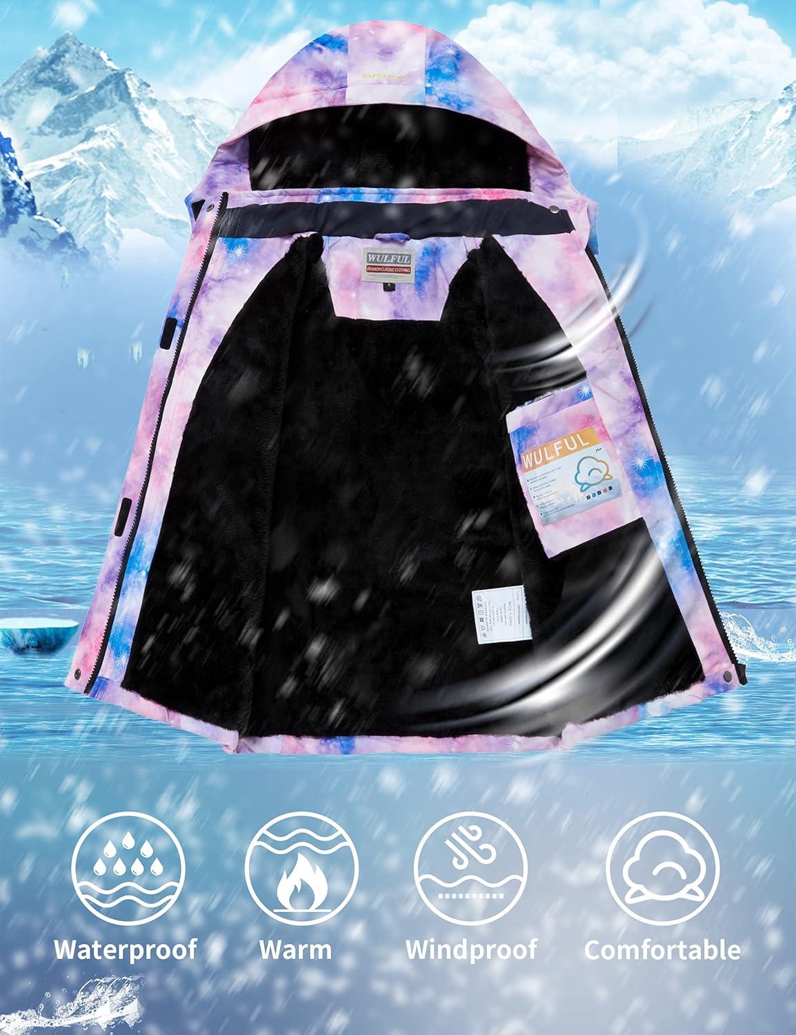 imageWULFUL Girls Waterproof Ski Jacket Warm Fleece Hooded Winter Snow CoatPattern 4