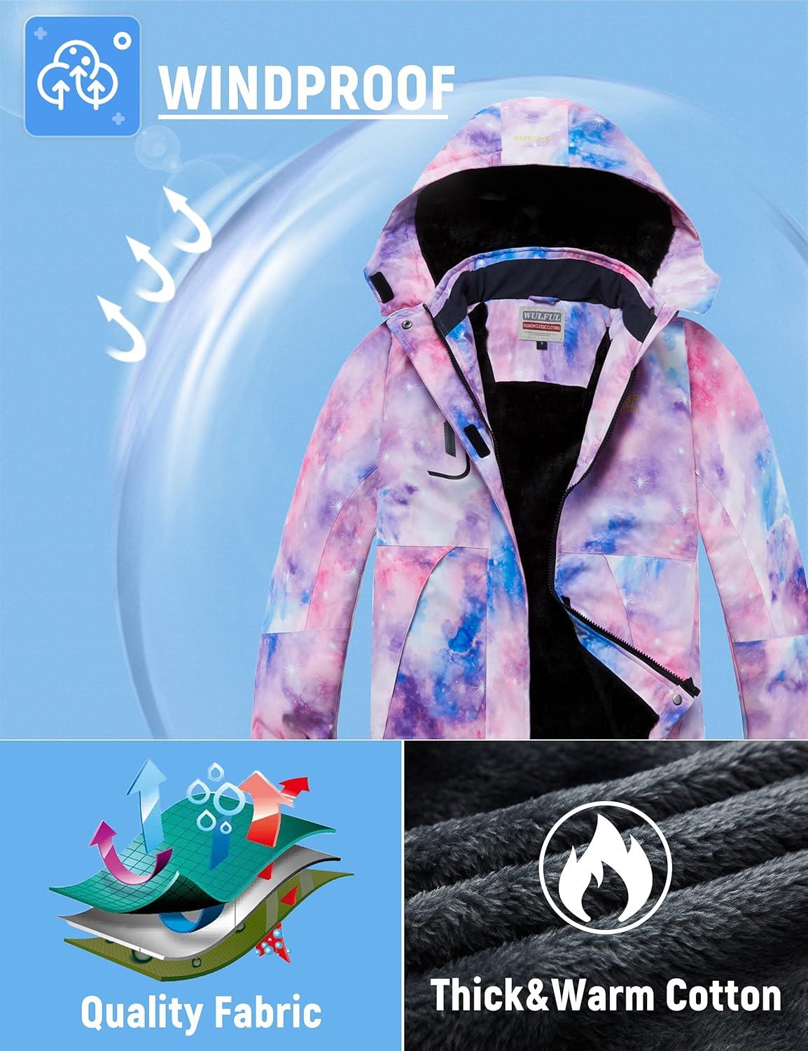 imageWULFUL Girls Waterproof Ski Jacket Warm Fleece Hooded Winter Snow CoatPattern 3