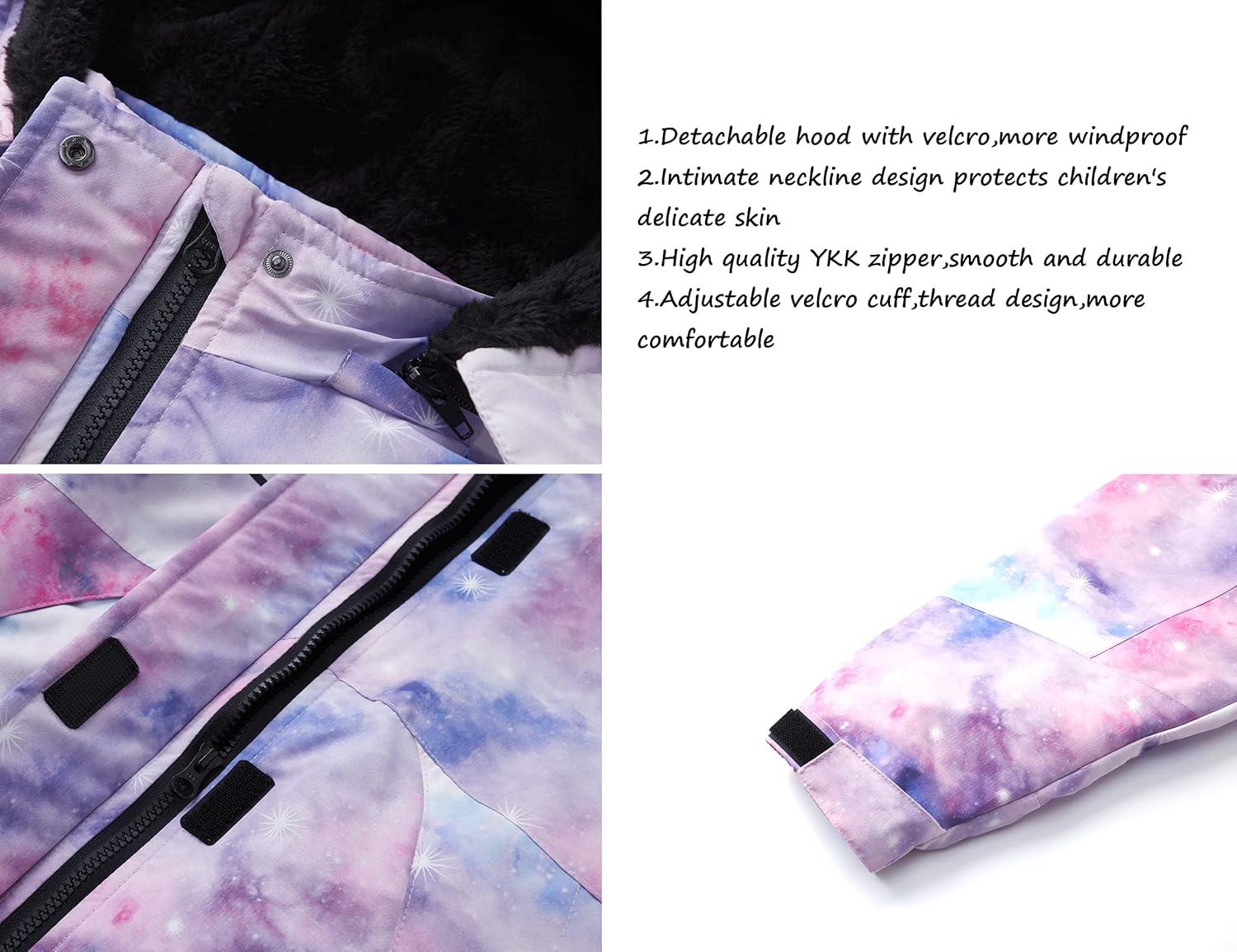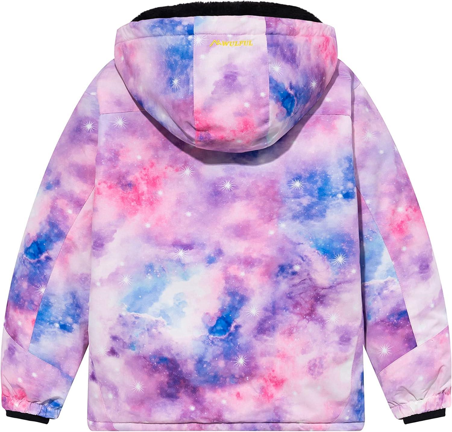WULFUL Girl’s Waterproof Ski Jacket Warm Fleece Hooded Winter Snow Coat(Pattern 4)