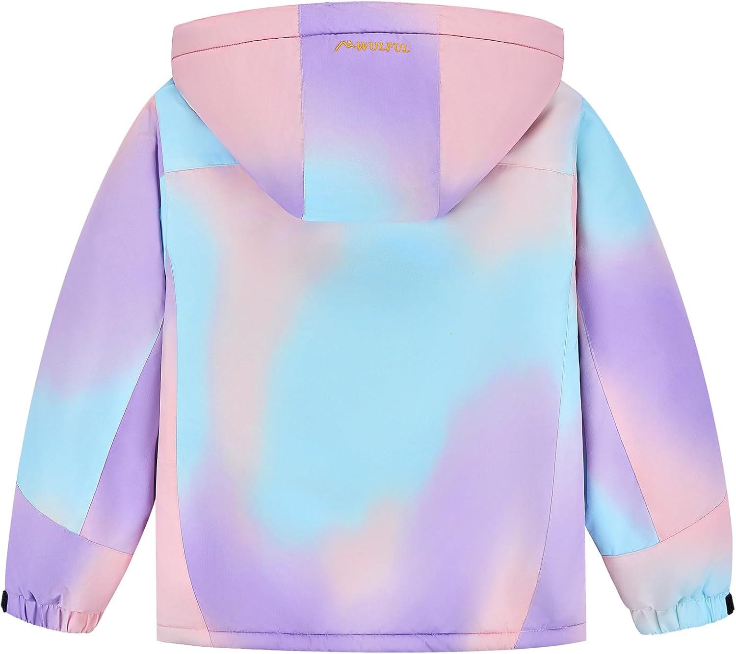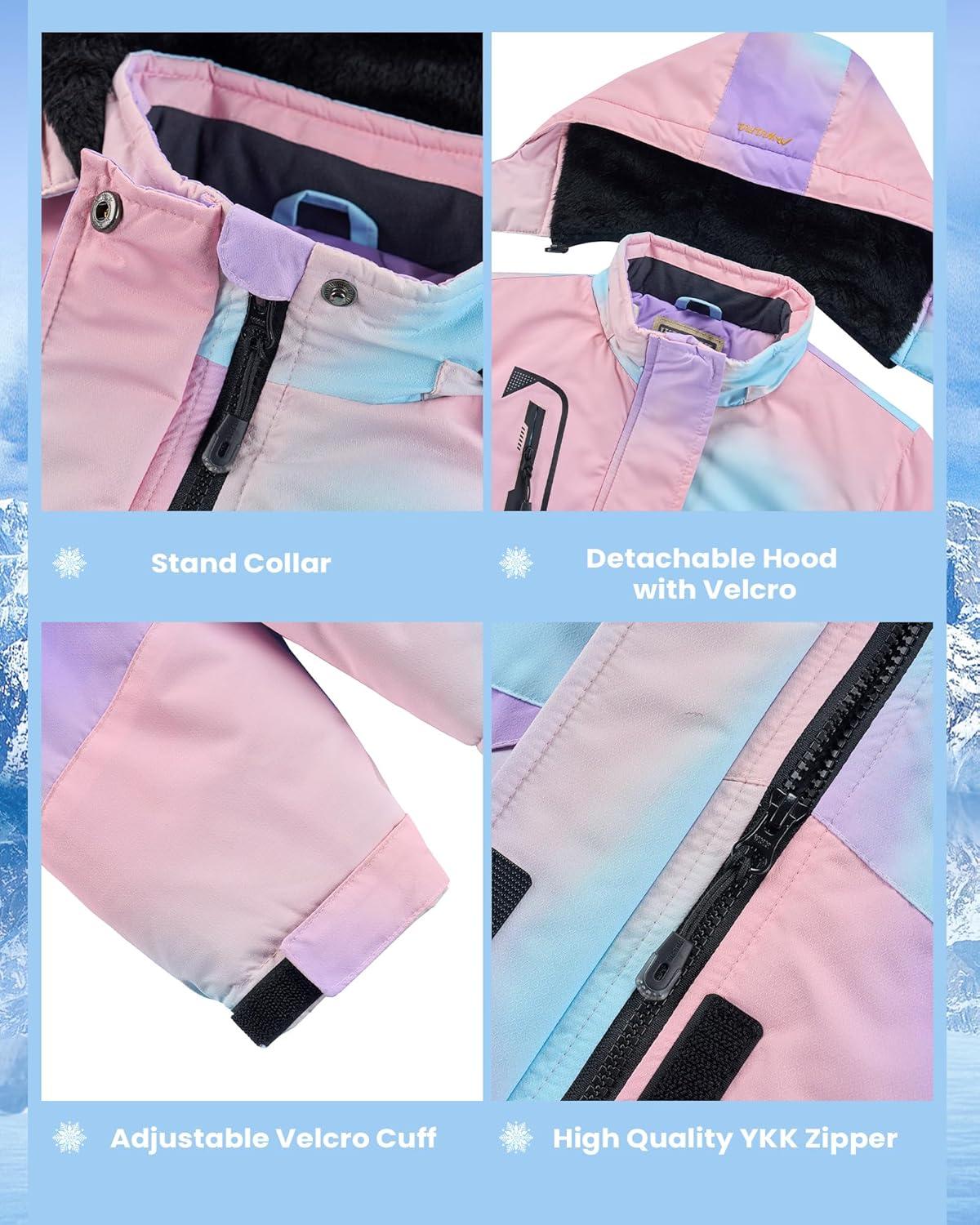 WULFUL Girl’s Waterproof Ski Jacket Warm Fleece Hooded Winter Snow Coat(Pink(blue))