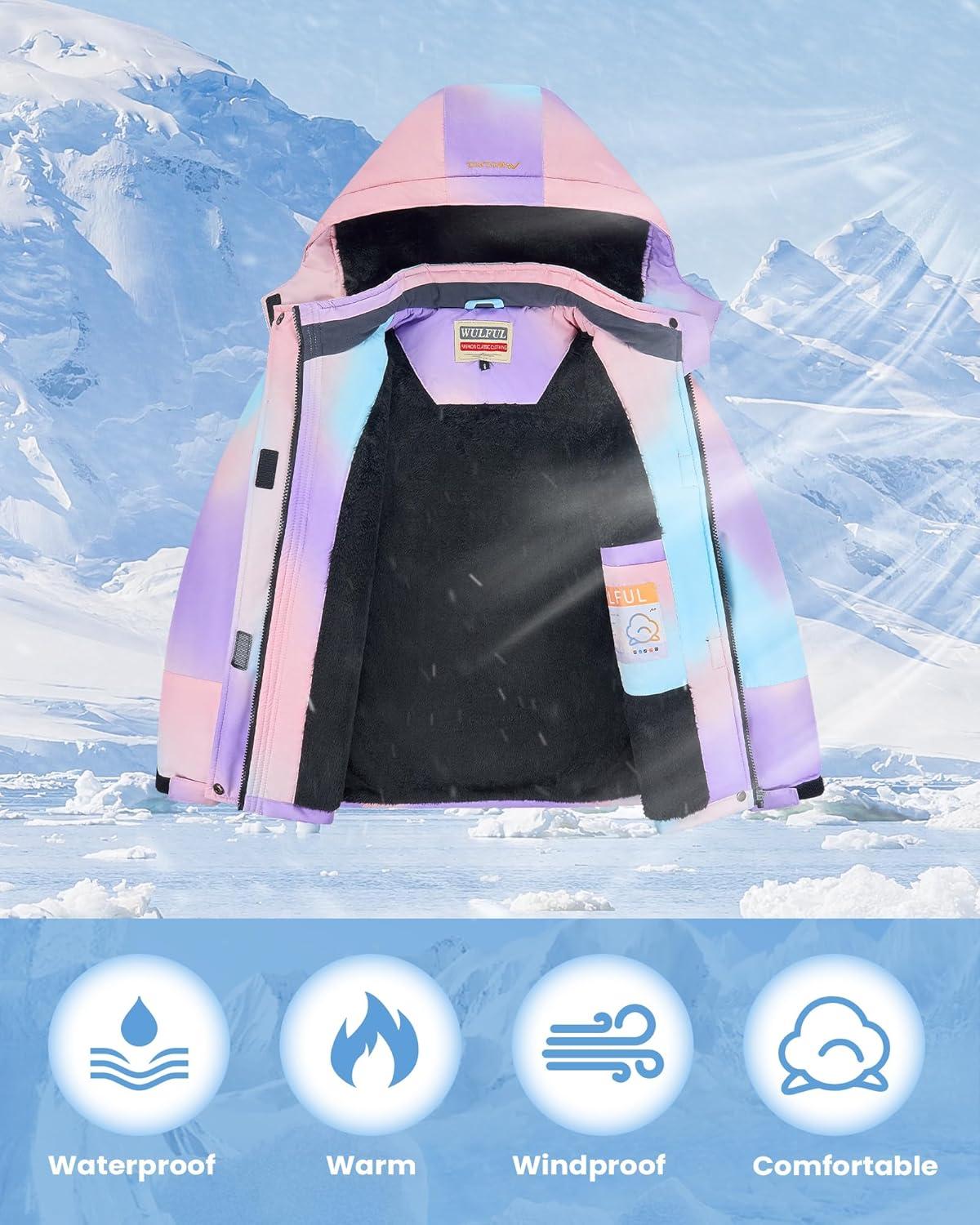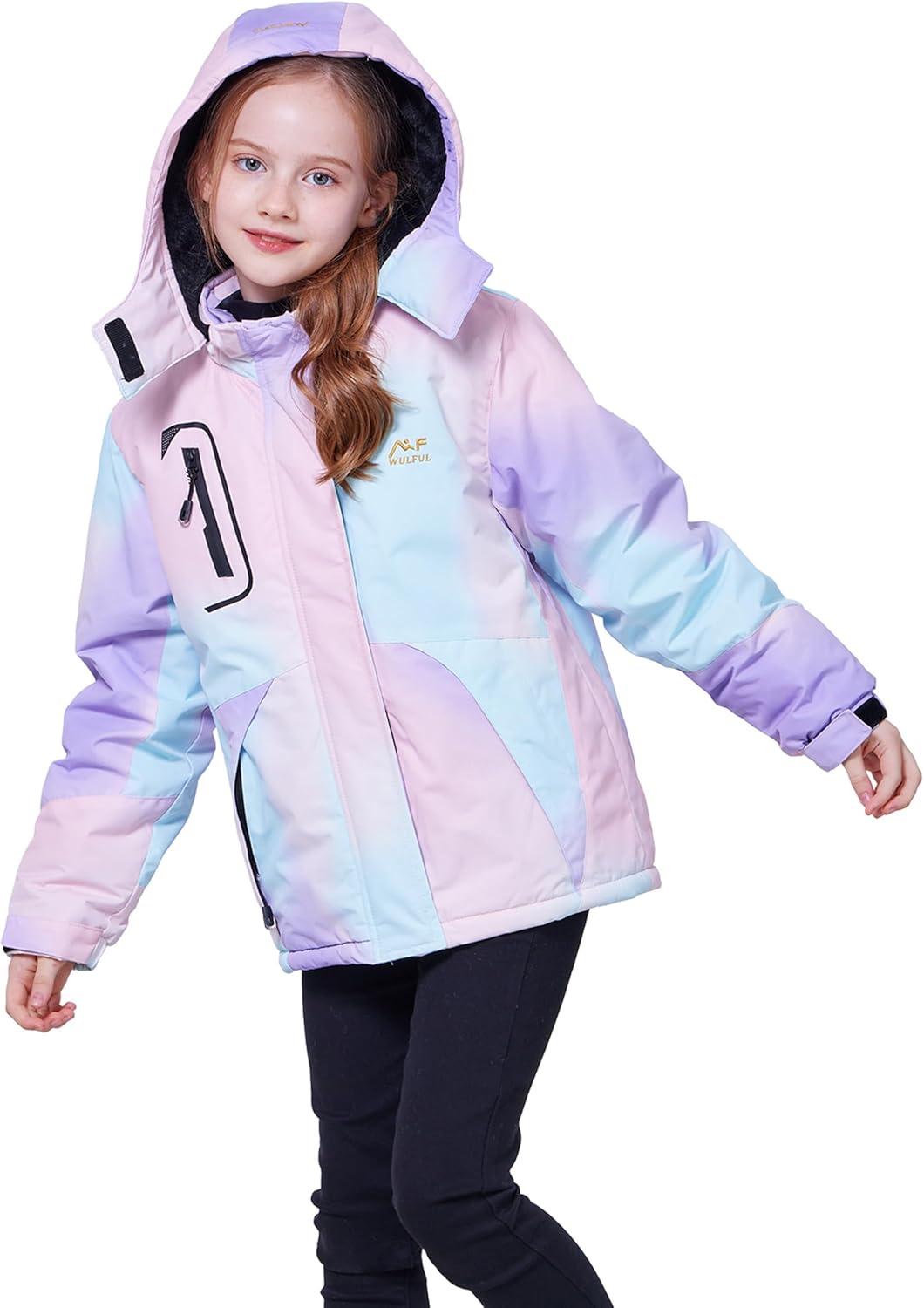 WULFUL Girl’s Waterproof Ski Jacket Warm Fleece Hooded Winter Snow Coat(Pink)