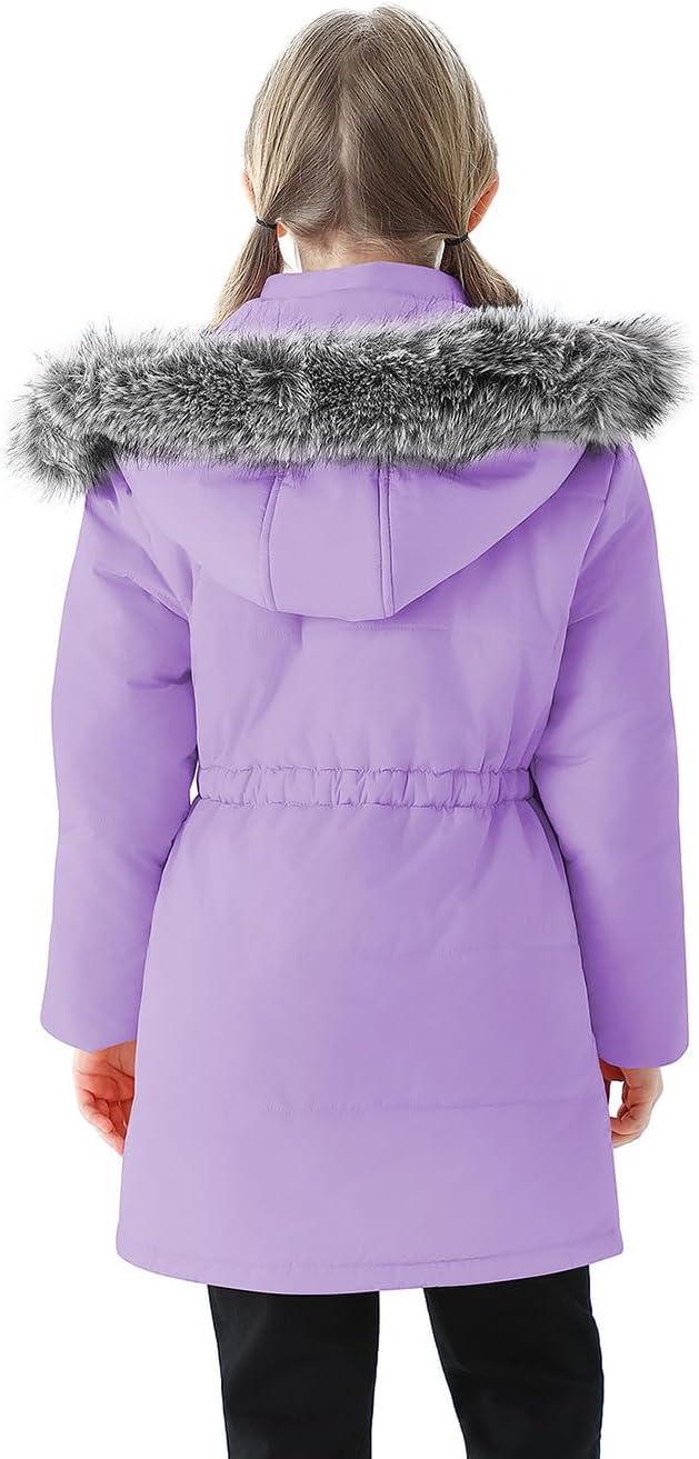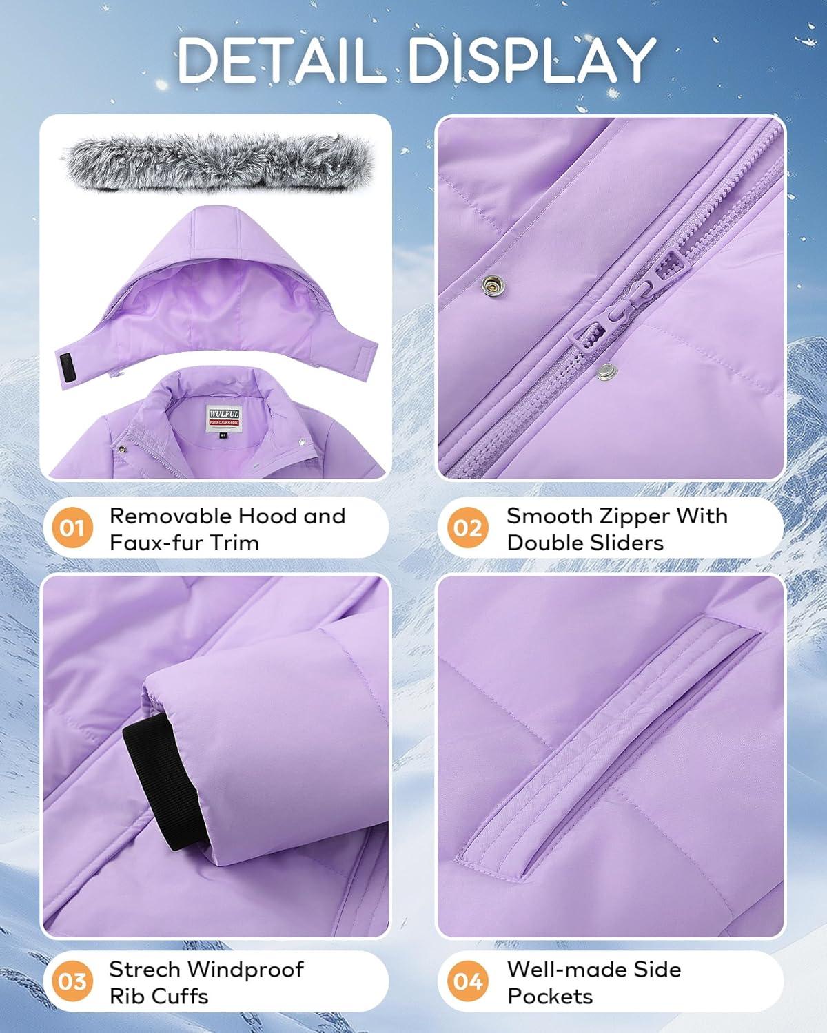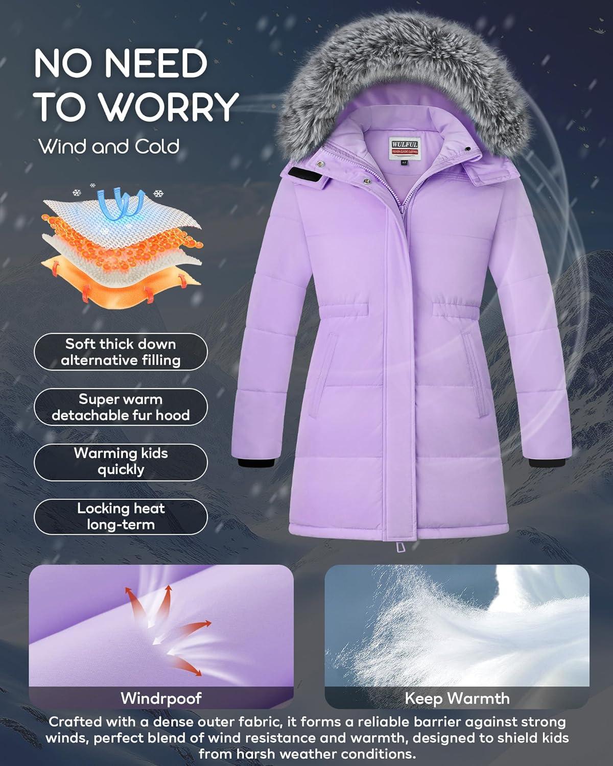 WULFUL Girl’s Winter Long Coats Hooded Parka Kids Warm Puffer Jacket(Light Purple)