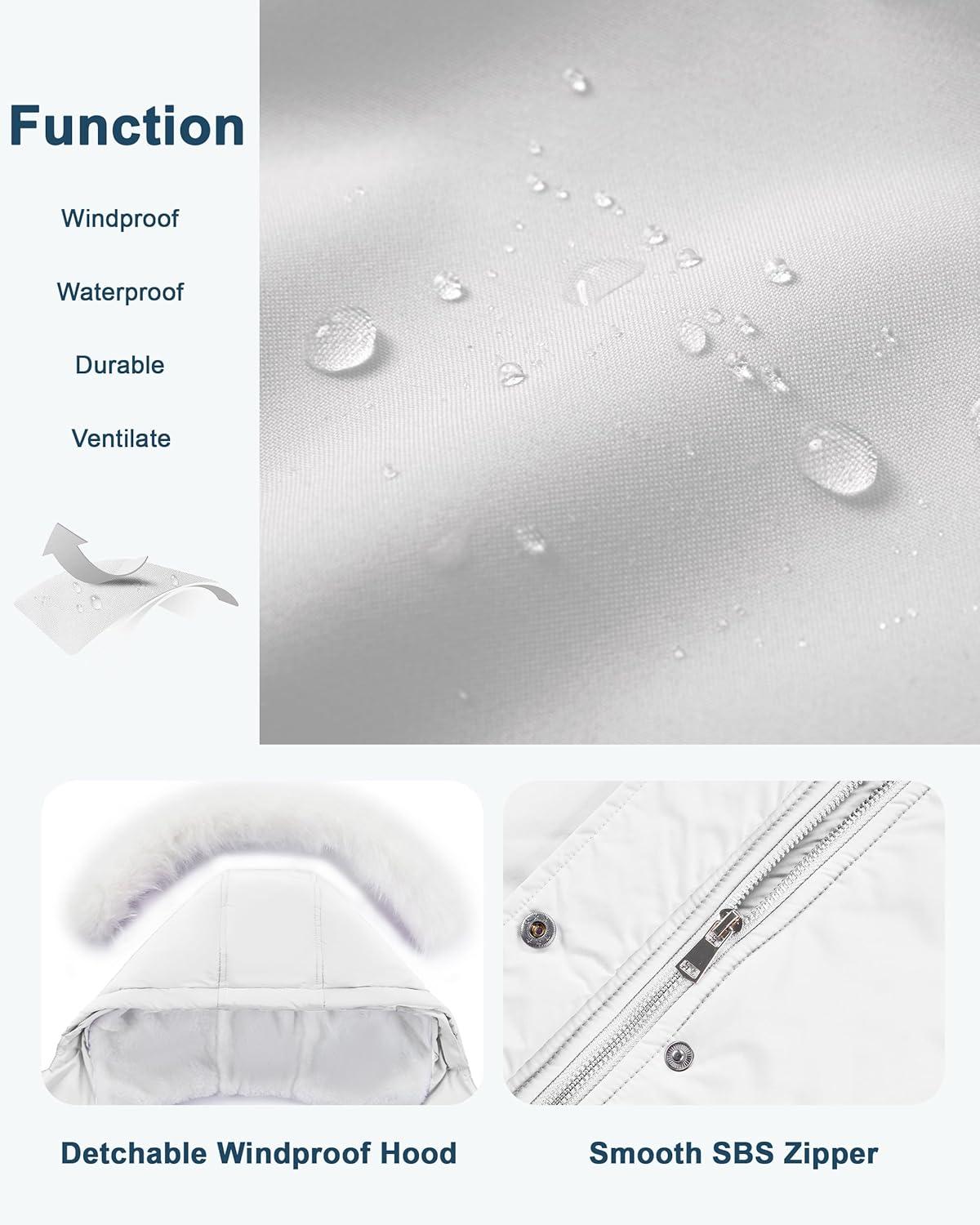 imageWULFUL Girls Winter Parka Coat Long Waterproof Warm Fleece Puffer JacketWhite