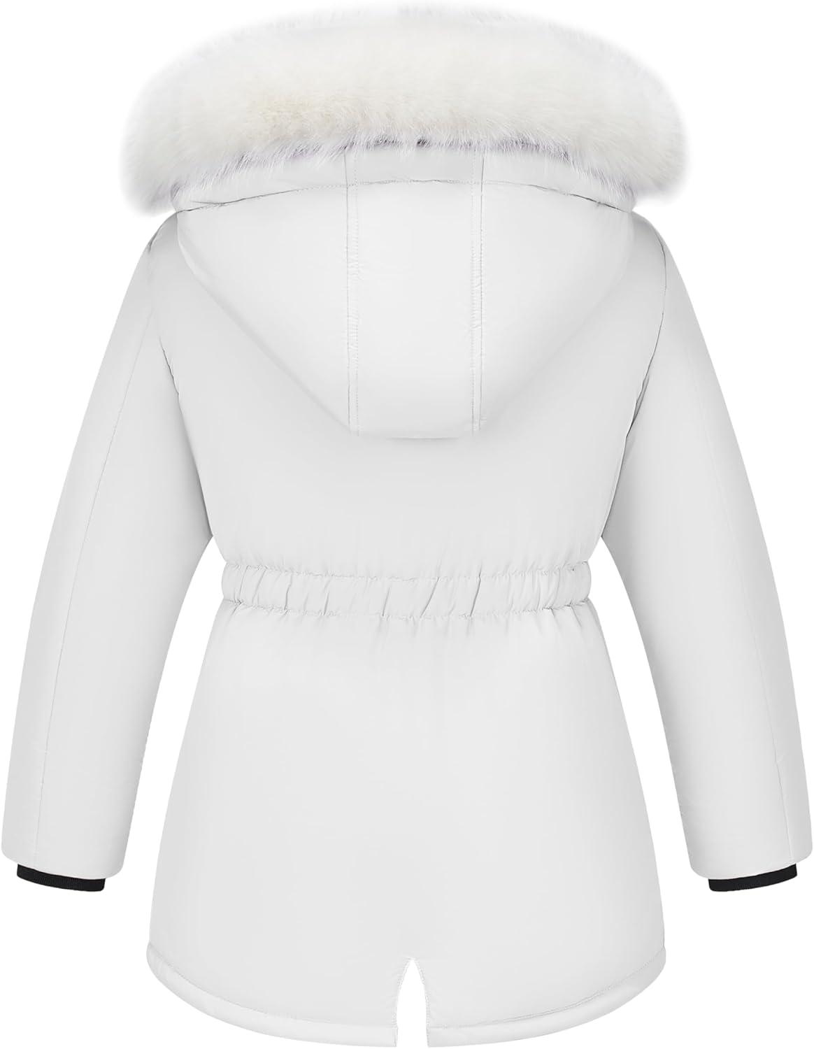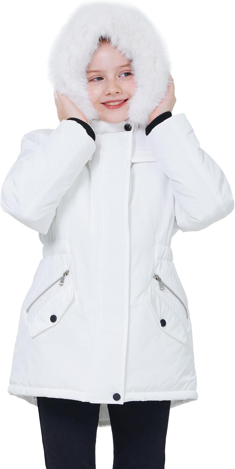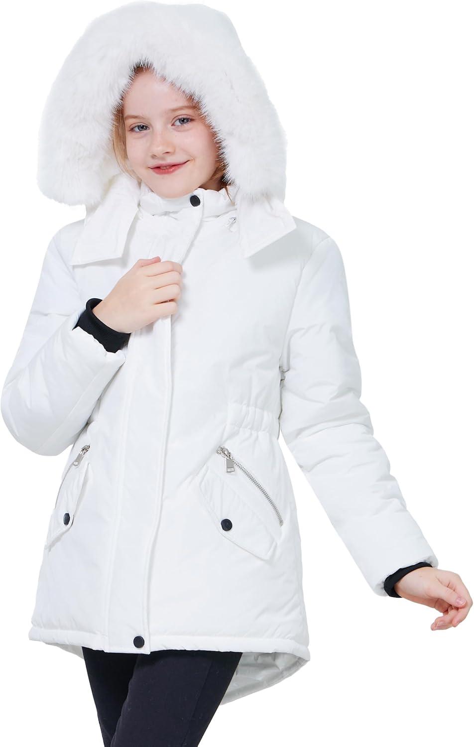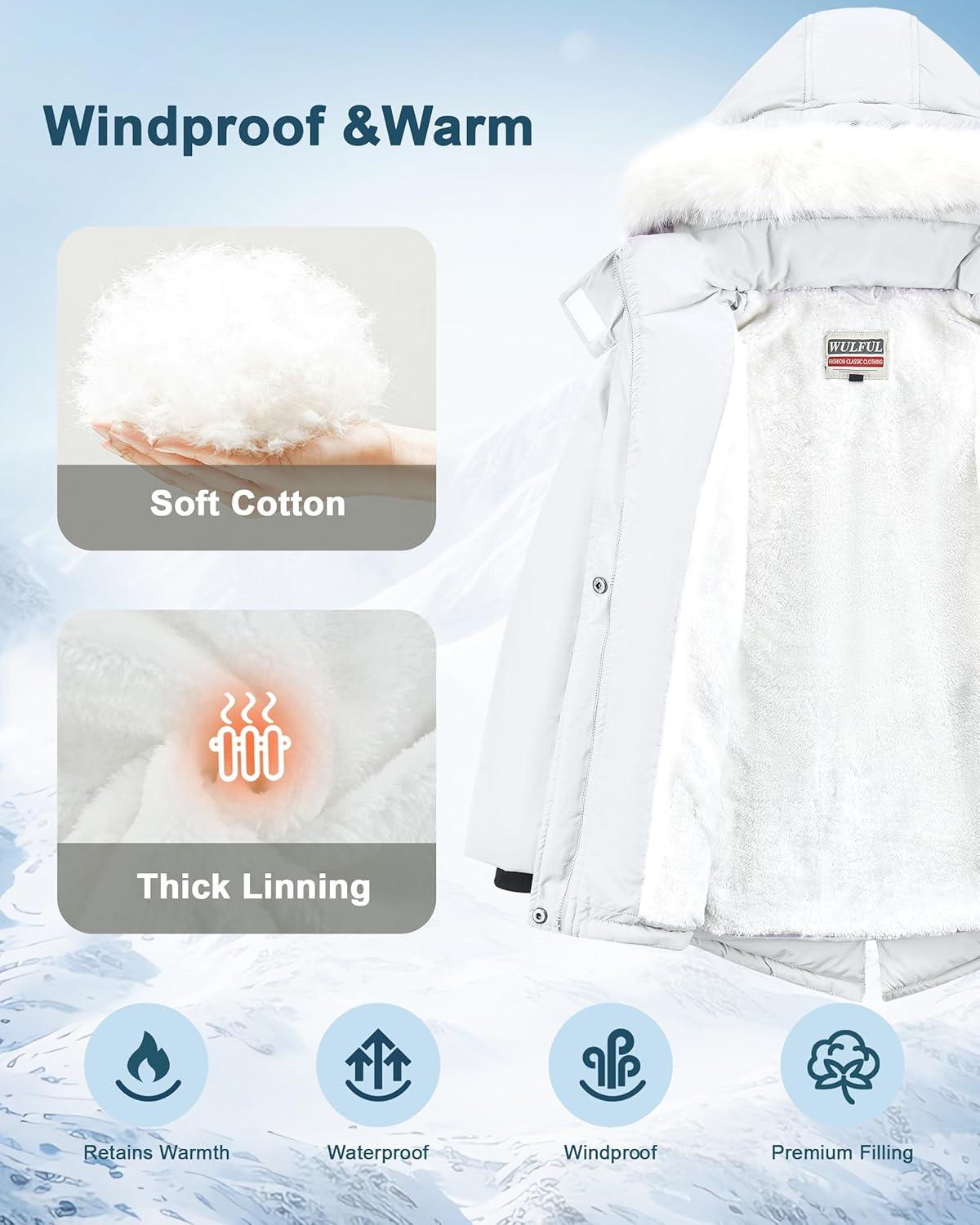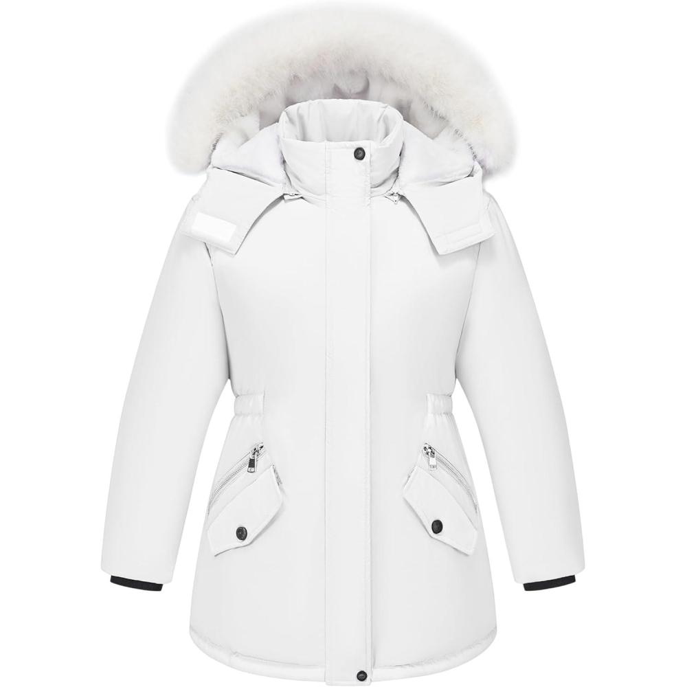 WULFUL Girl’s Winter Parka Coat Long Waterproof Warm Fleece Puffer Jacket(White)