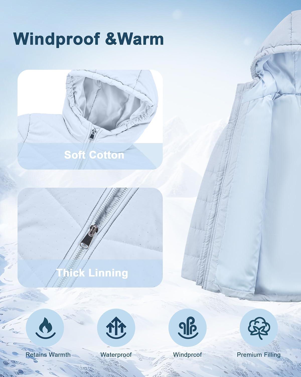 imageWULFUL Girls Winter Waterproof Coat Warm Hooded Parka Jacket LongBlue