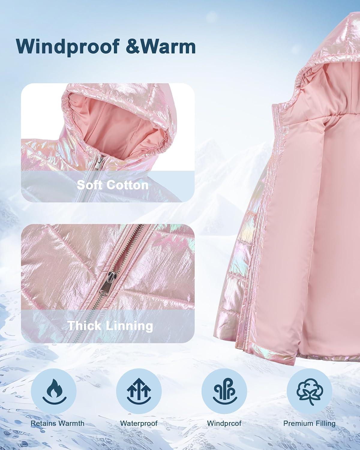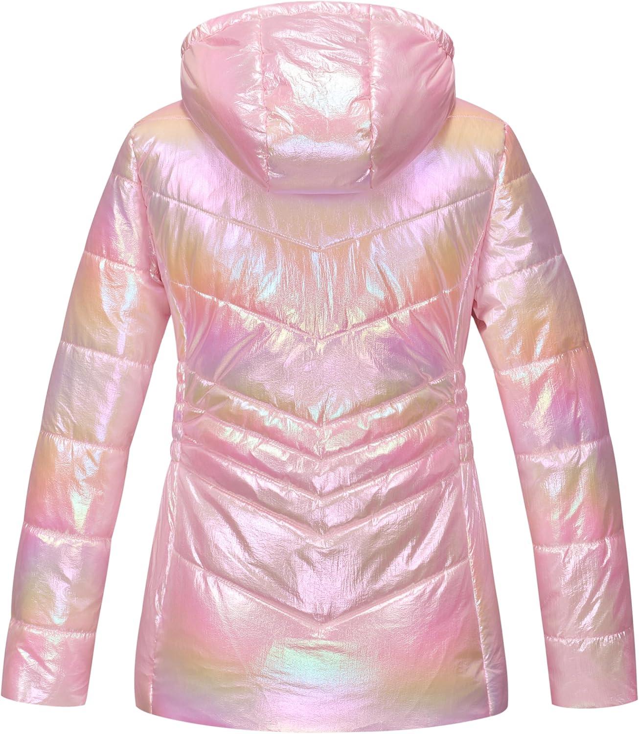 WULFUL Girl’s Winter Waterproof Coat Warm Hooded Parka Jacket Long(Gradient Pink)
