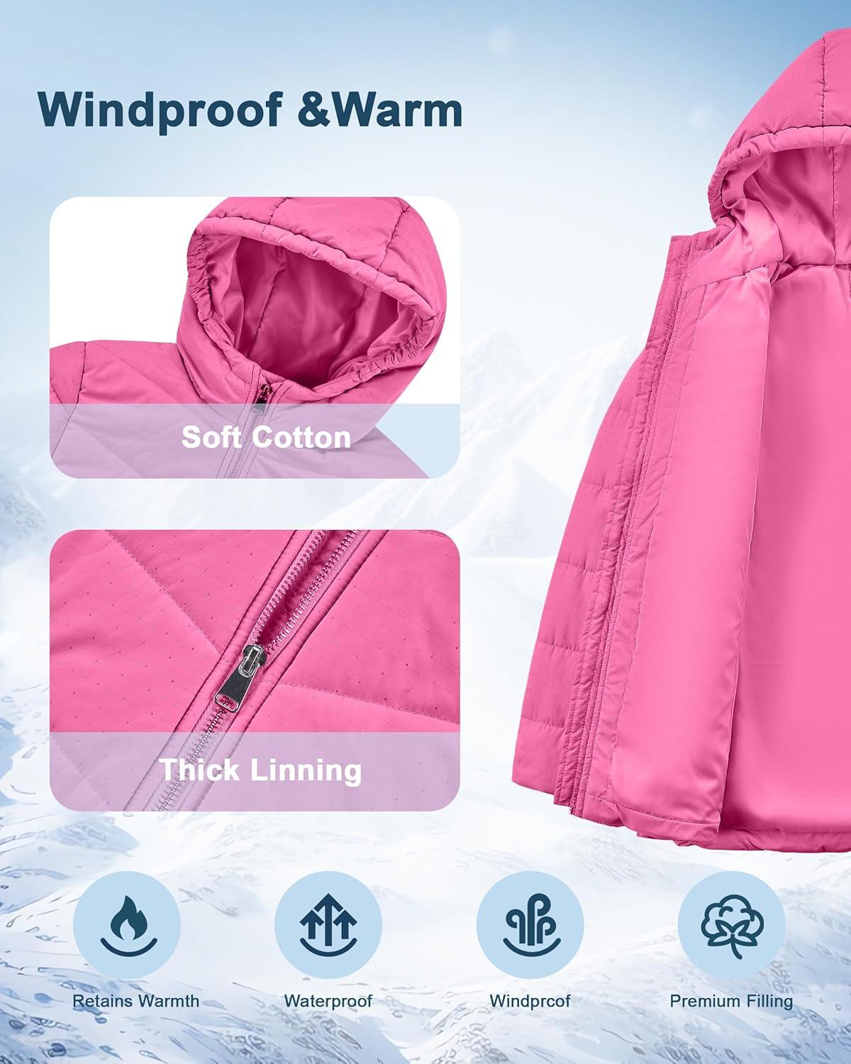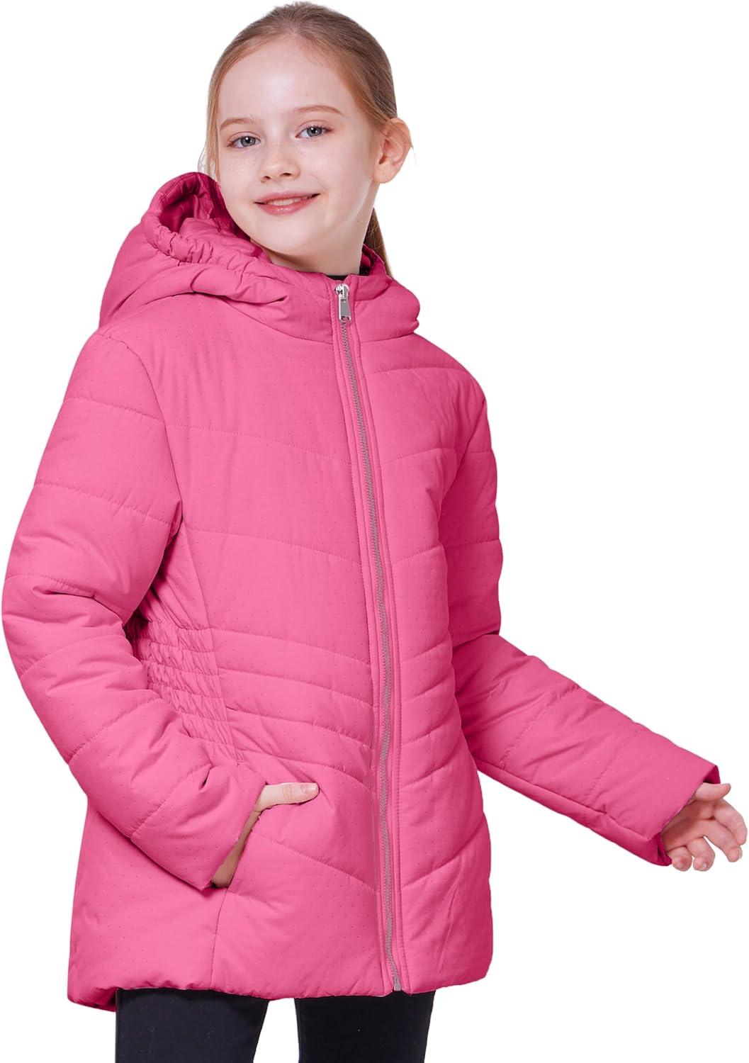 WULFUL Girl’s Winter Waterproof Coat Warm Hooded Parka Jacket Long(Rose Red)