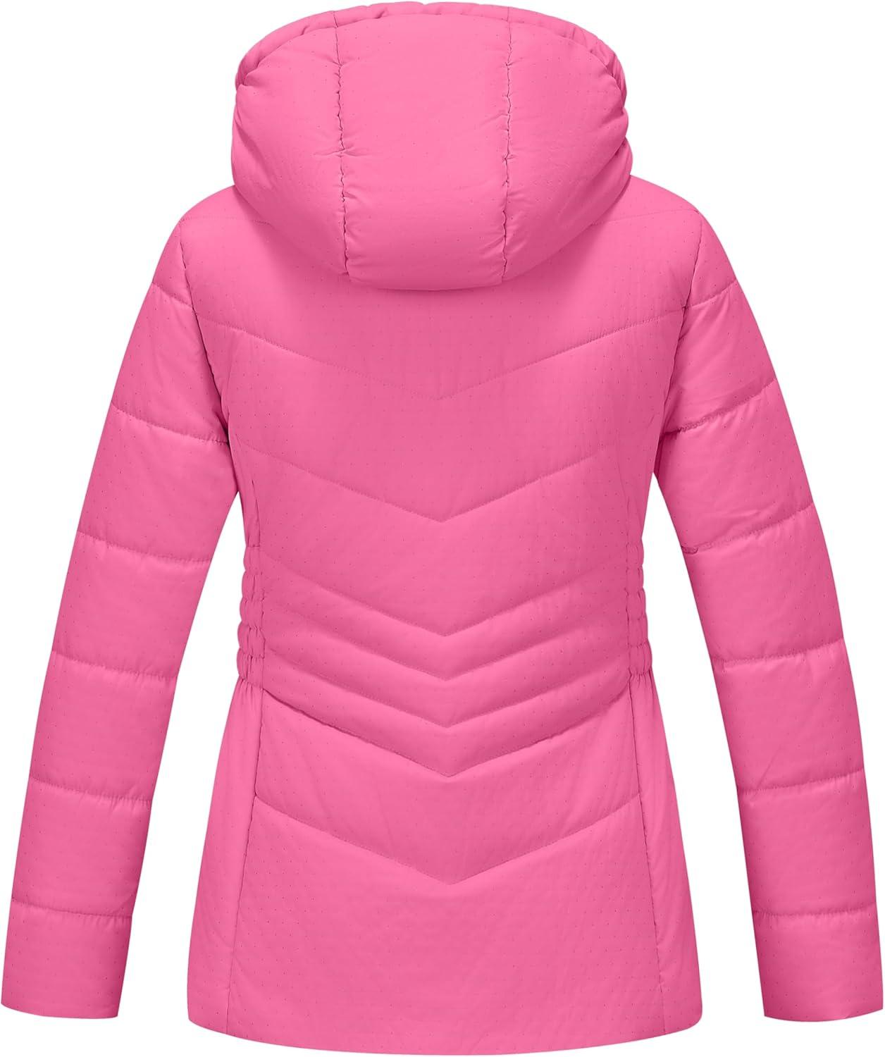 imageWULFUL Girls Winter Waterproof Coat Warm Hooded Parka Jacket LongRose Red
