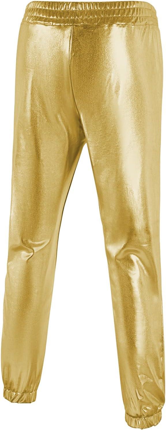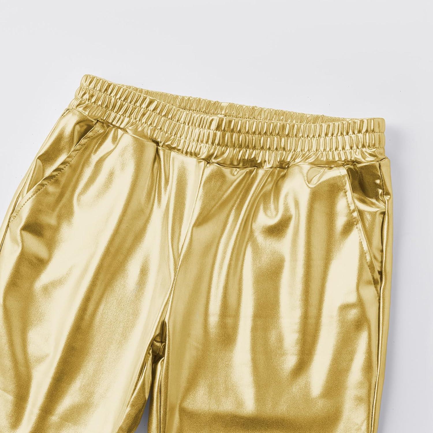 WULFUL Kids Boys Metallic 70s Disco Costume Sequin Party Jogger Pants(Gold02)