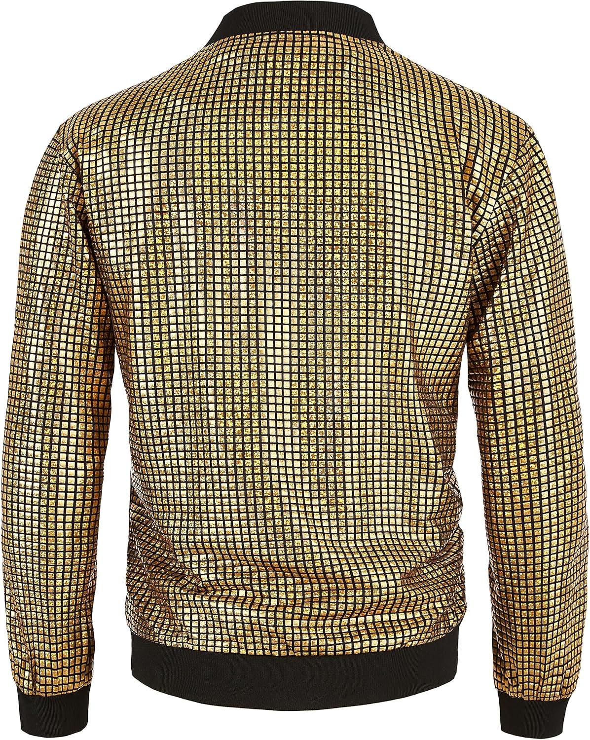 WULFUL Kids Boys Varsity Bomber Jacket 70s Disco Costume Party Sequin Metallic Jackets(Gold)