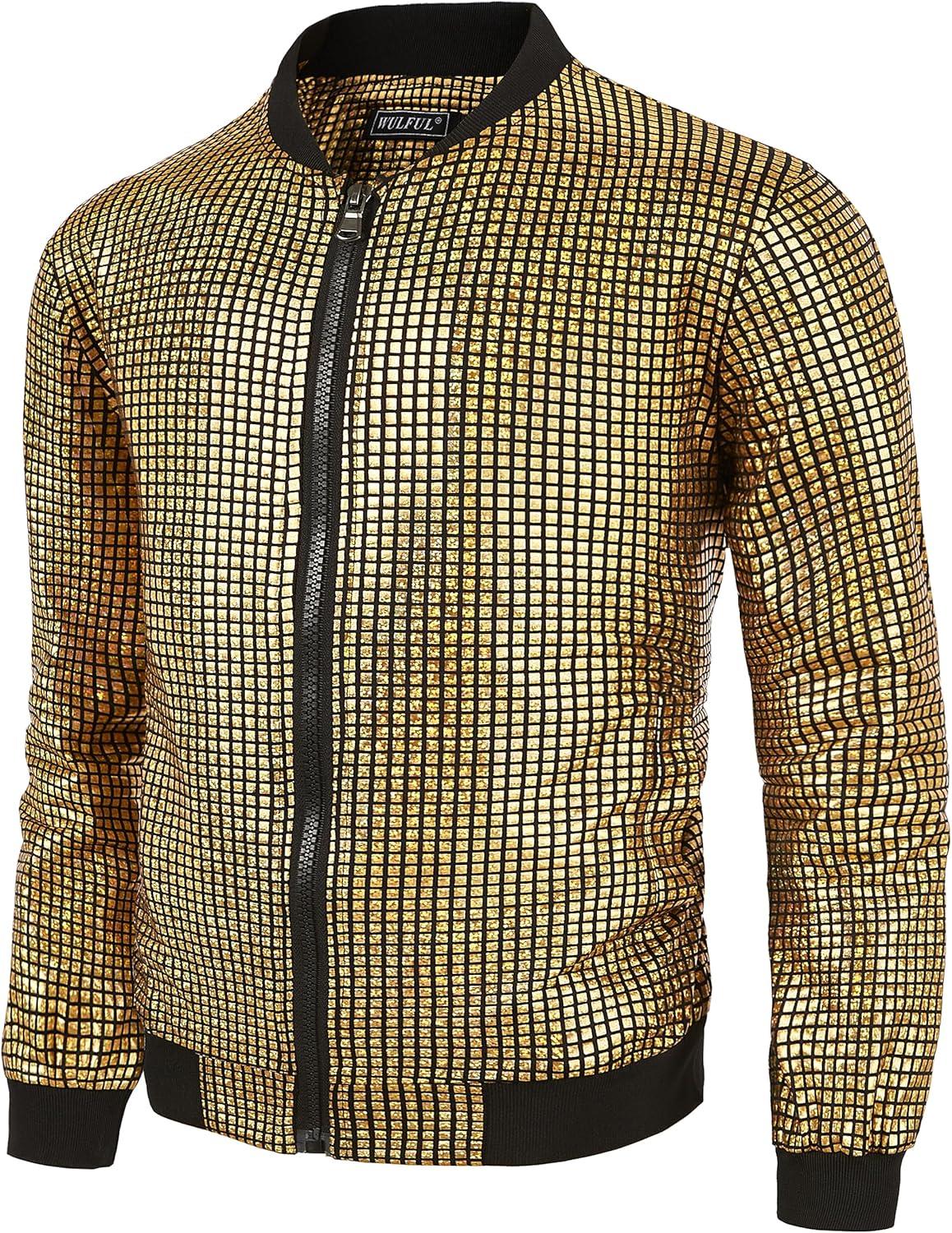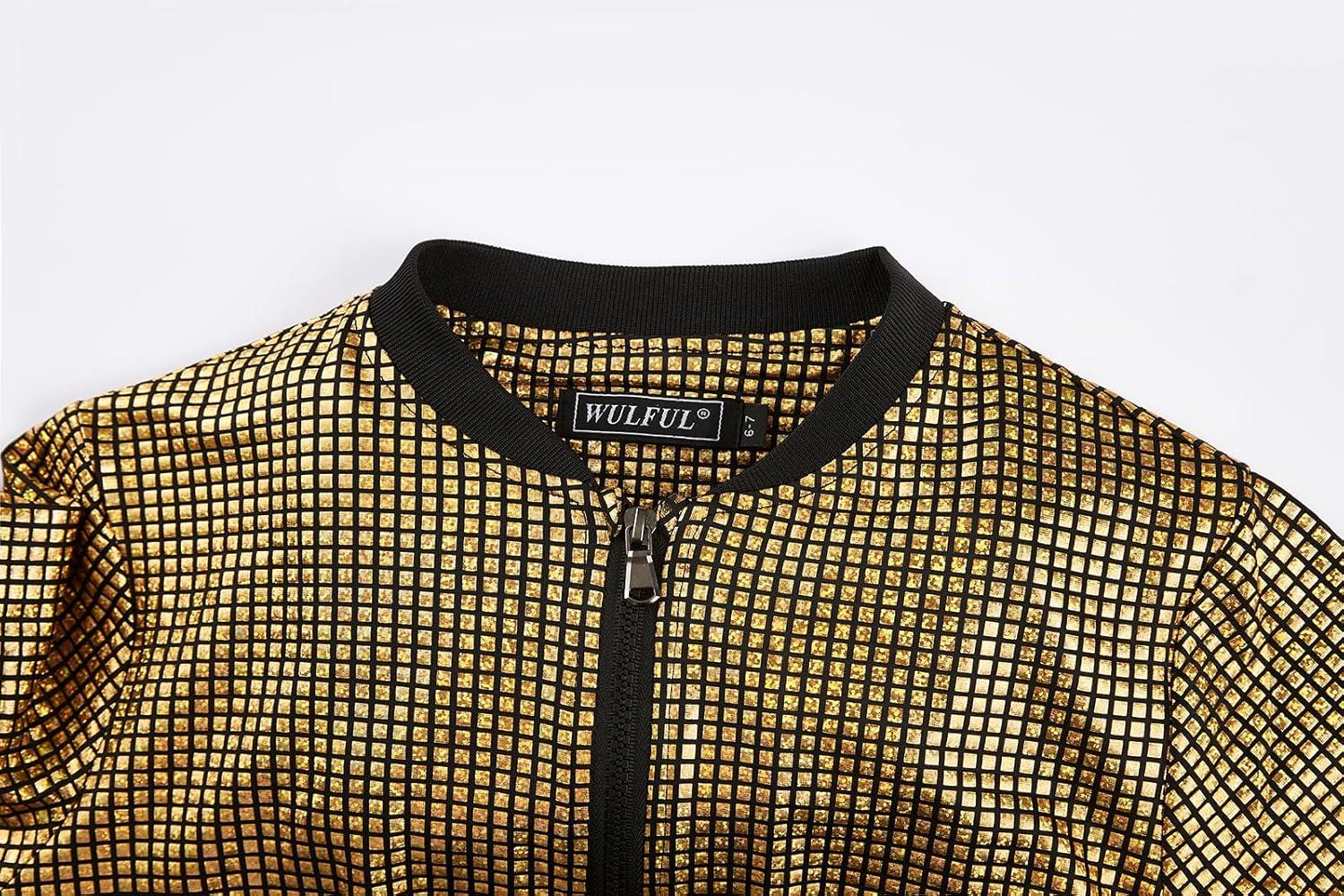 WULFUL Kids Boys Varsity Bomber Jacket 70s Disco Costume Party Sequin Metallic Jackets(Multicolored)