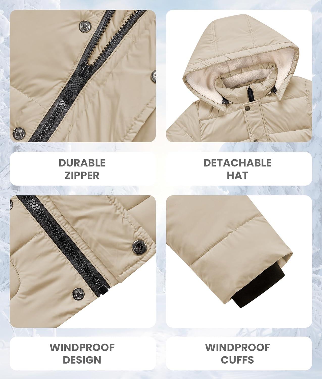 imageWULFUL Kids Boys Winter Coat Detachable Hat Puffer Windbreaker Warm Cotton Jacket Parka Down Outdoor CoatsBrown