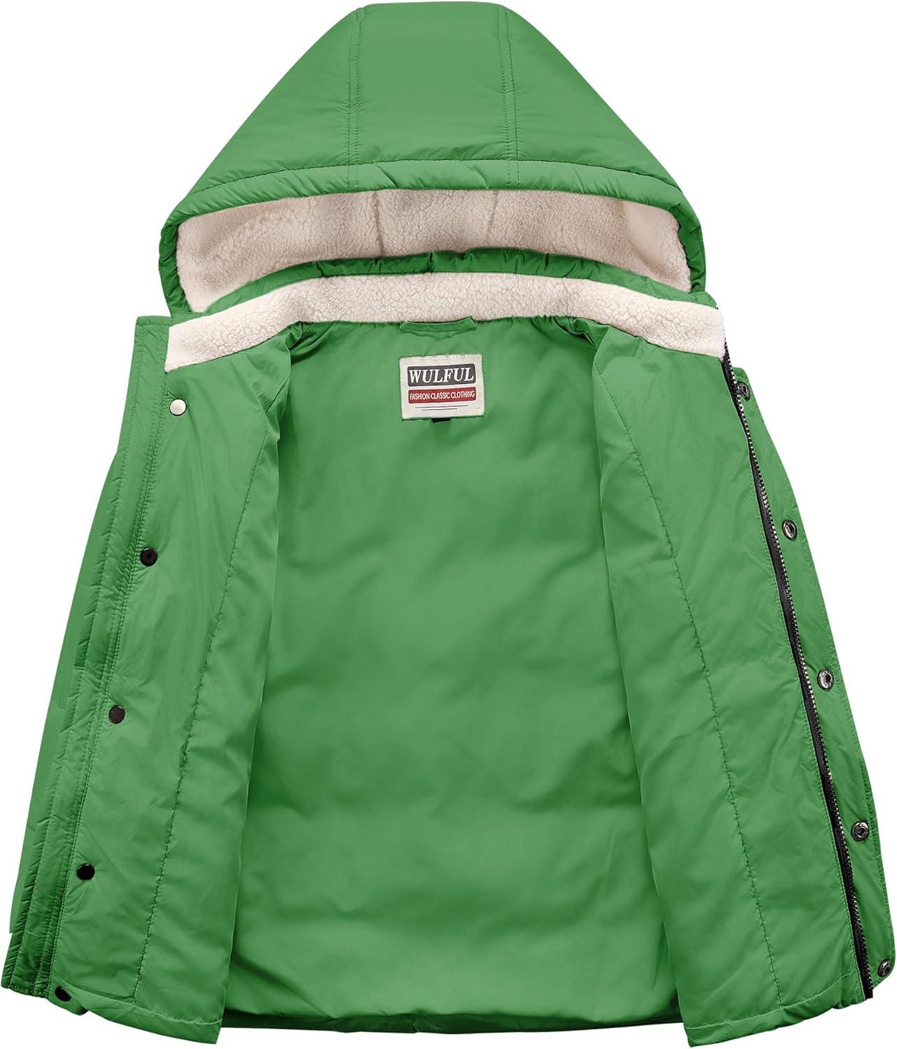 WULFUL Kids Boy's Winter Coat Detachable Hat Puffer Windbreaker Warm Cotton Jacket Parka Down Outdoor Coats(Green)
