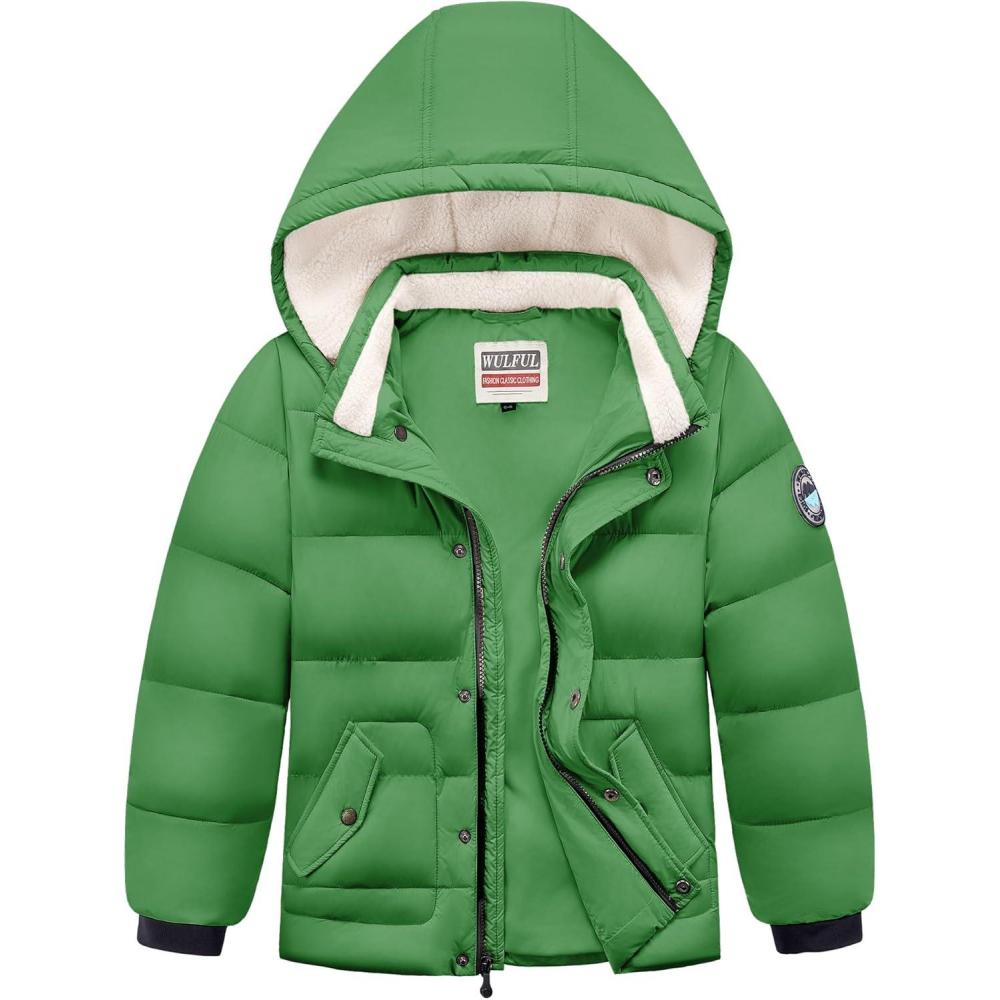 imageWULFUL Kids Boys Winter Coat Detachable Hat Puffer Windbreaker Warm Cotton Jacket Parka Down Outdoor CoatsGreen