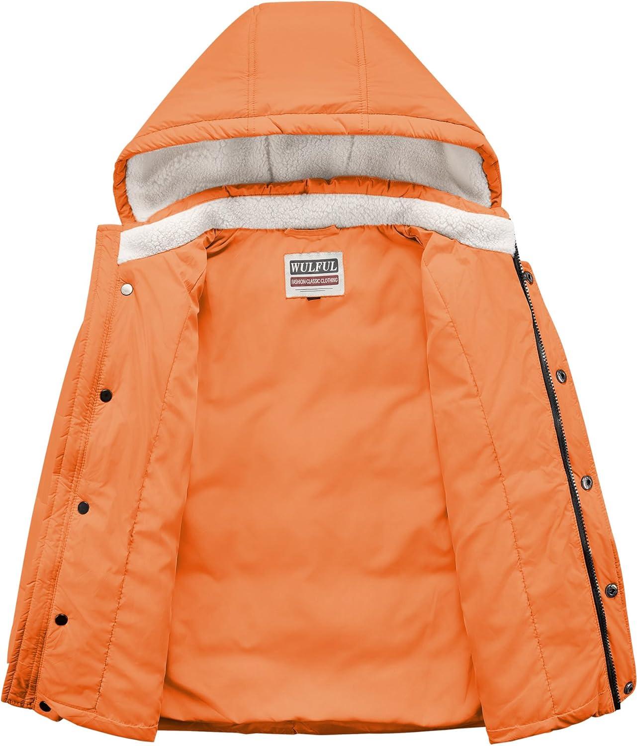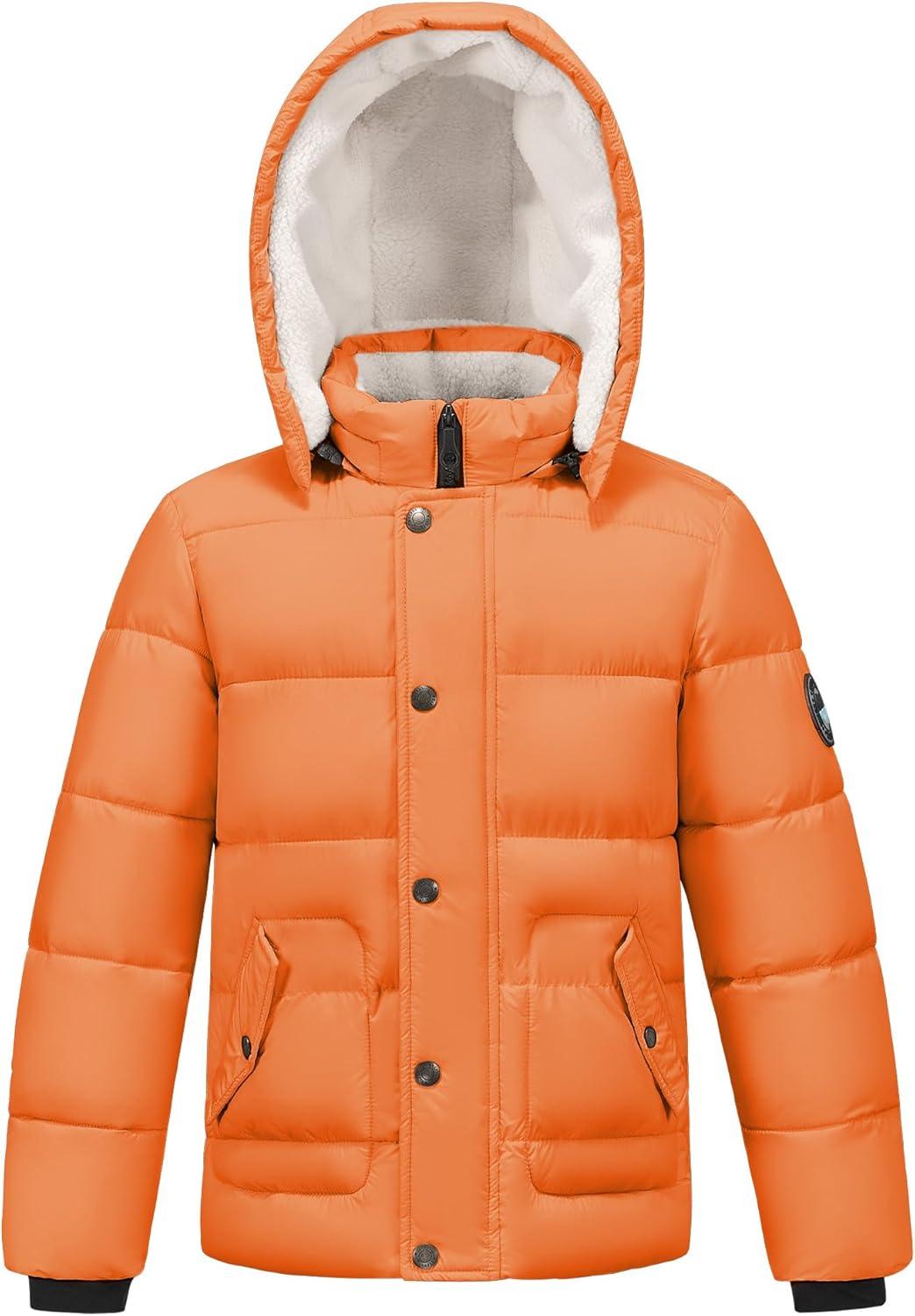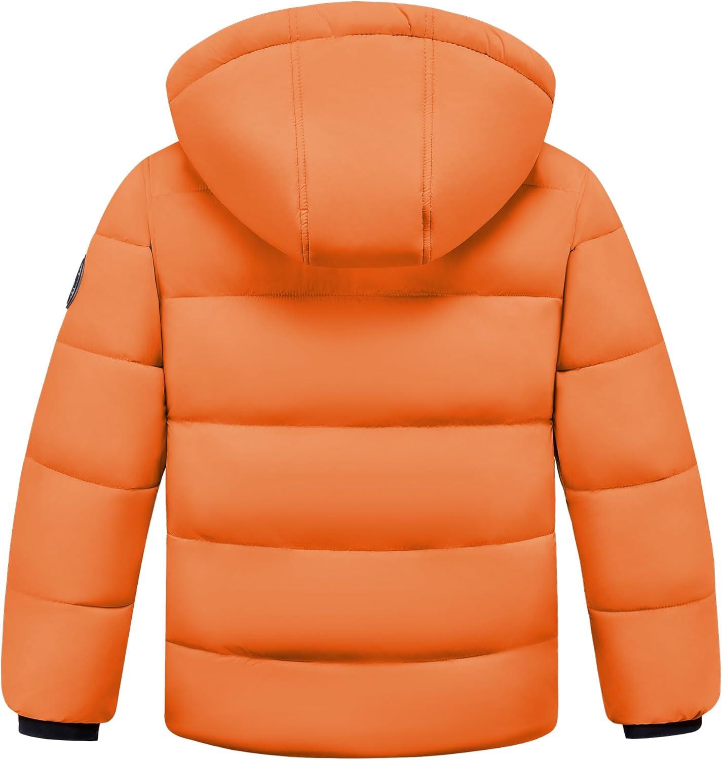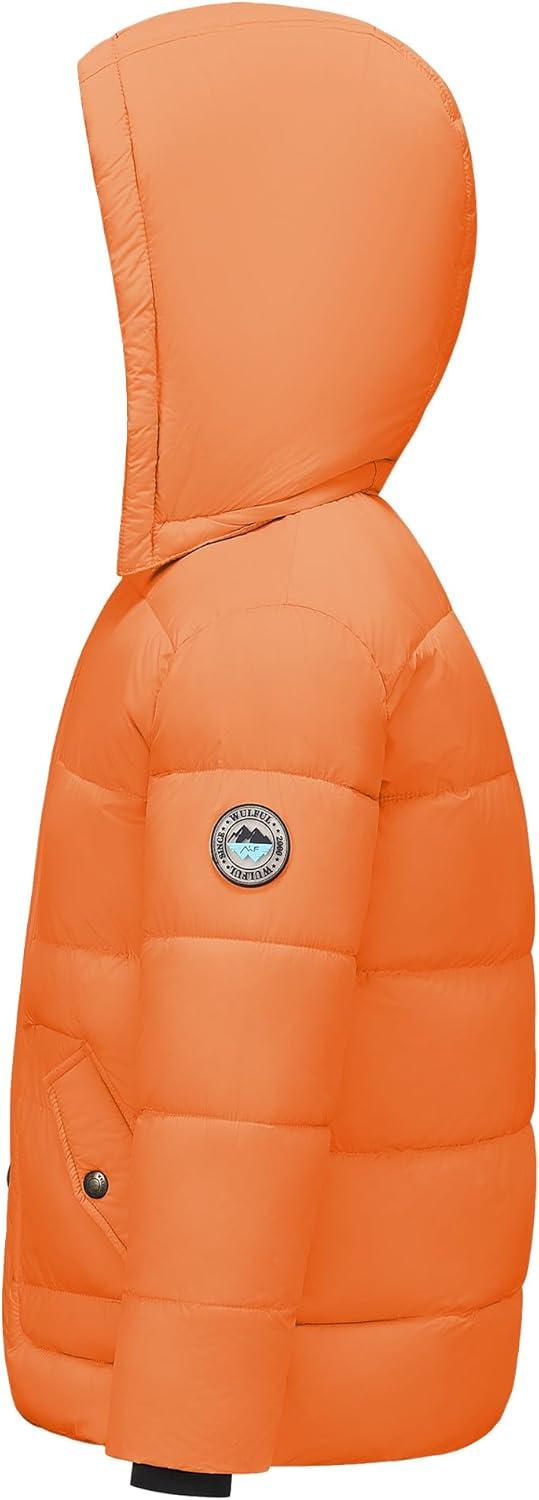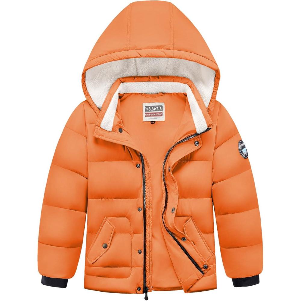 WULFUL Kids Boy's Winter Coat Detachable Hat Puffer Windbreaker Warm Cotton Jacket Parka Down Outdoor Coats(Orange)