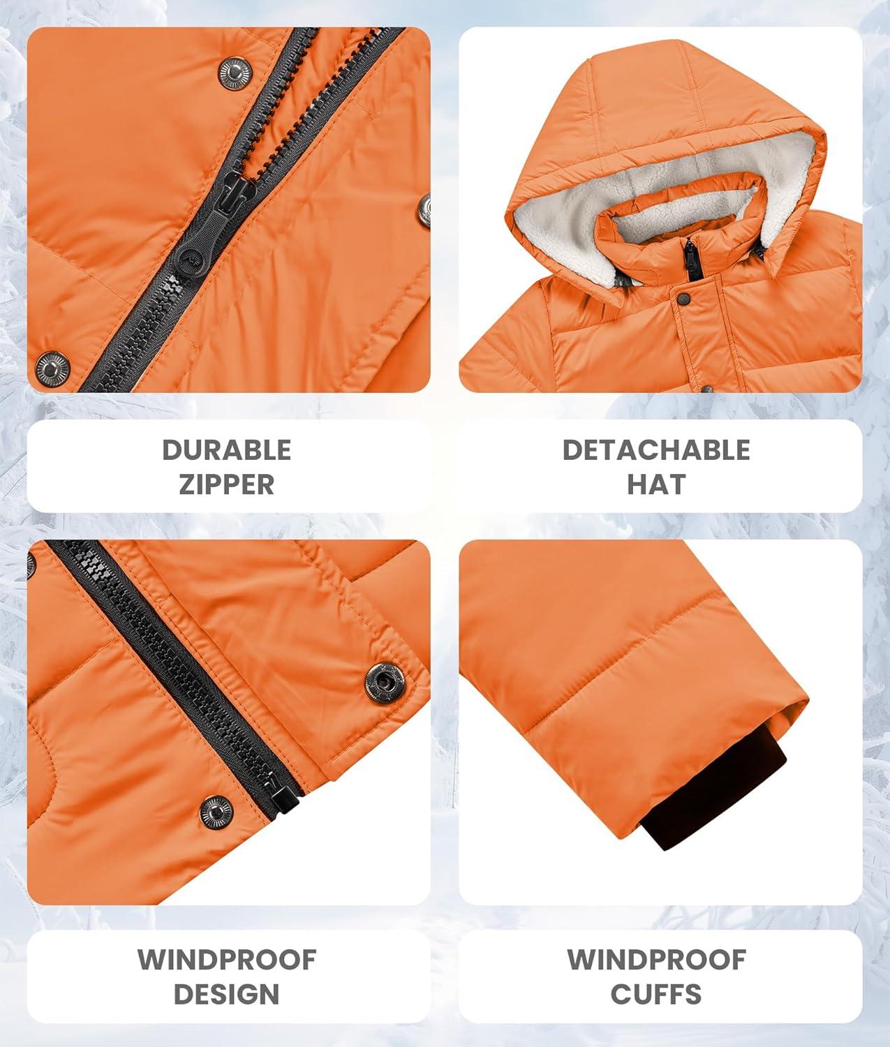 imageWULFUL Kids Boys Winter Coat Detachable Hat Puffer Windbreaker Warm Cotton Jacket Parka Down Outdoor CoatsOrange