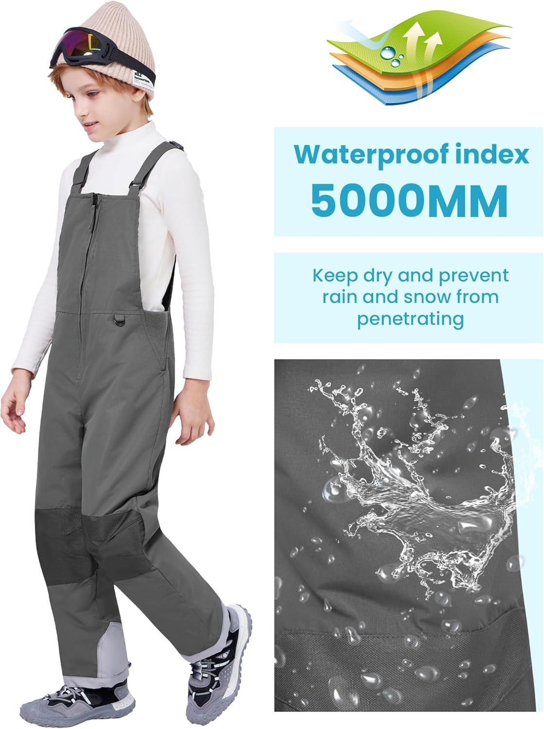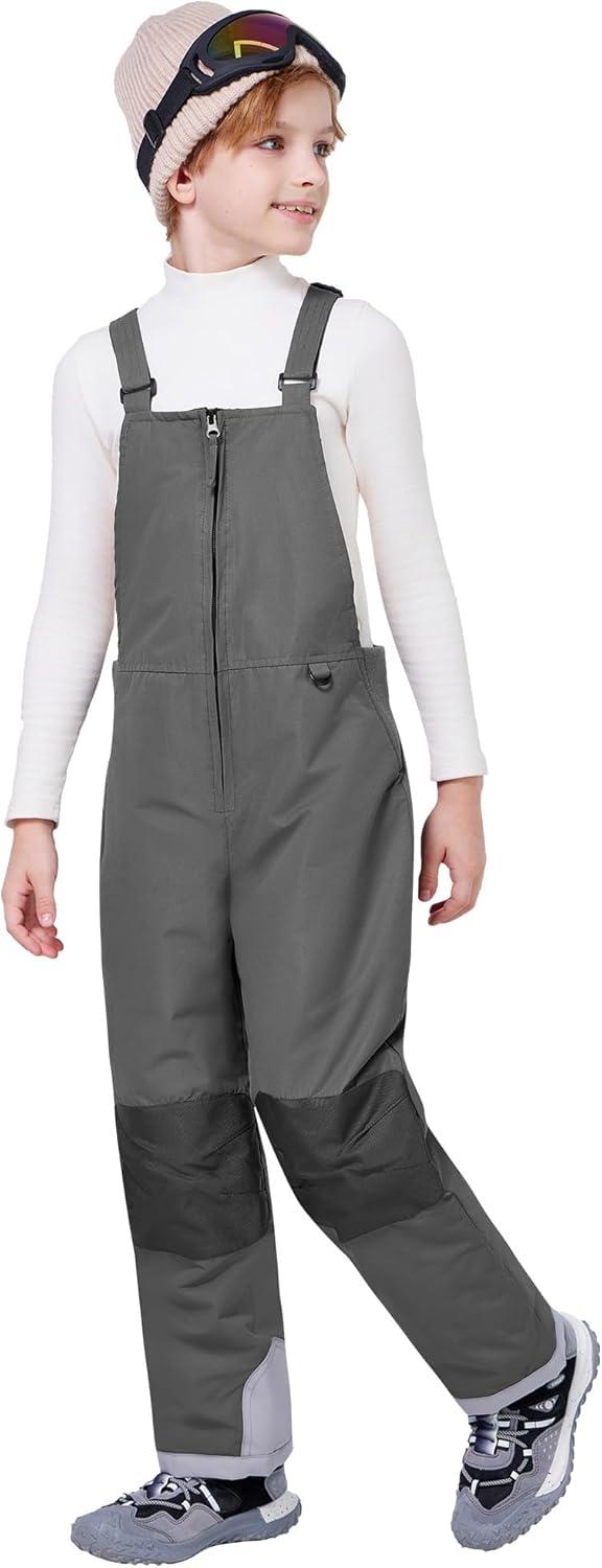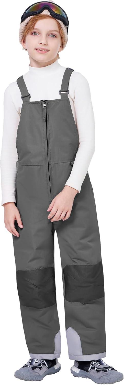 WULFUL Kids Waterproof Ski Bib Boys Girls Winter Snow Pants(Dark Grey)