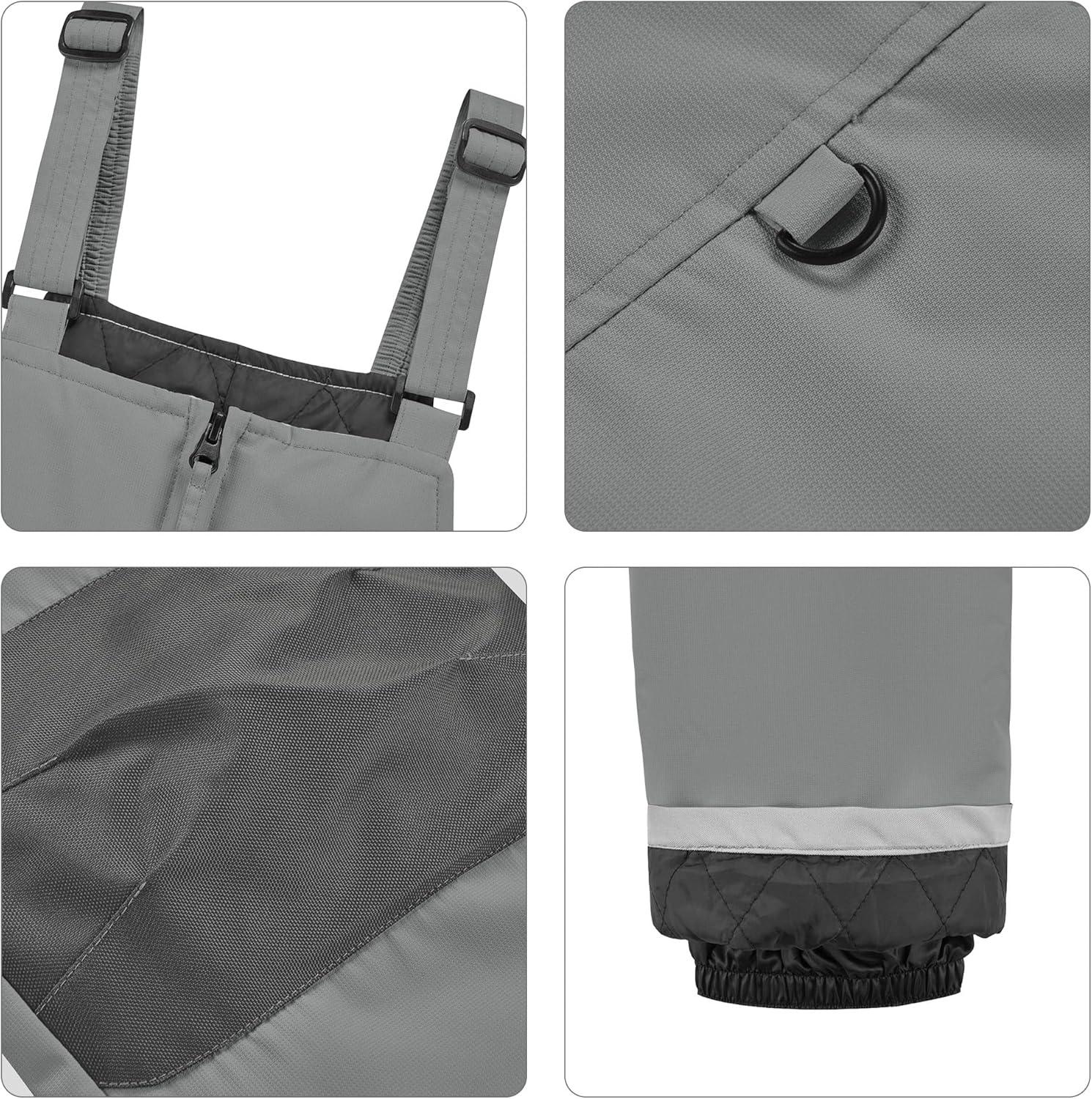 WULFUL Kids Waterproof Ski Bib Boys Girls Winter Snow Pants(Light Grey)