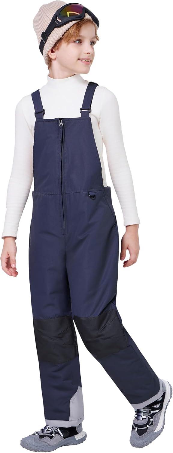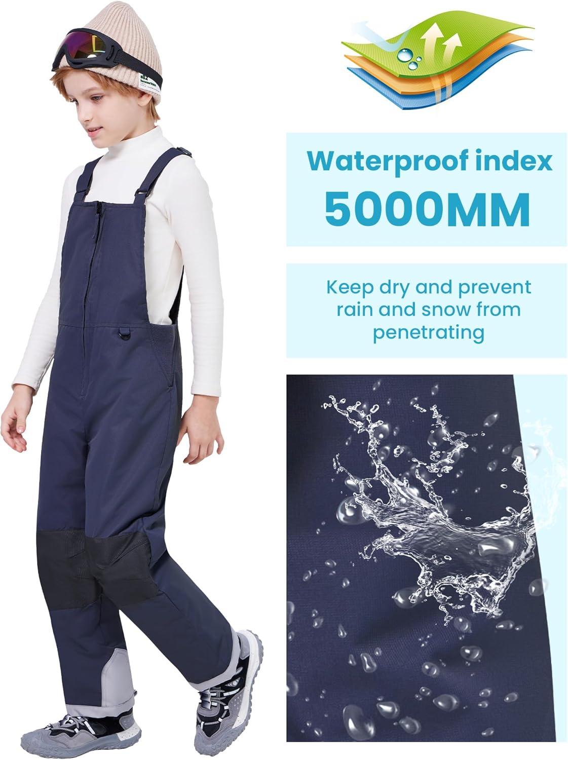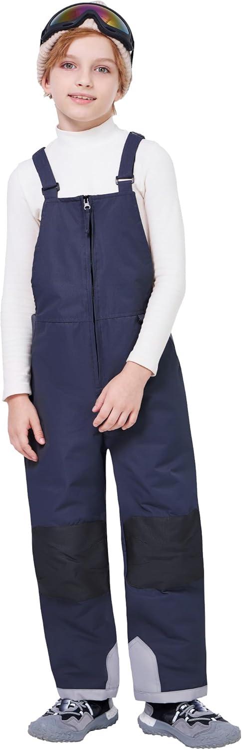 WULFUL Kids Waterproof Ski Bib Boys Girls Winter Snow Pants(Navy)