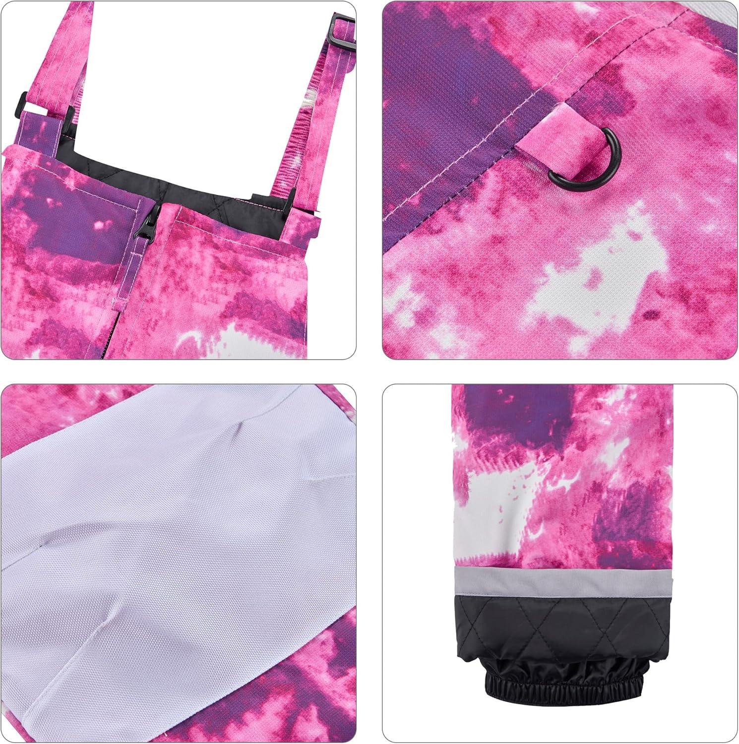 WULFUL Kids Waterproof Ski Bib Boys Girls Winter Snow Pants(Pink)
