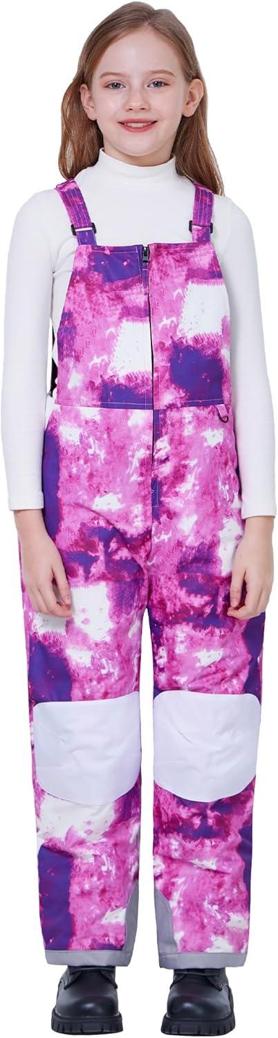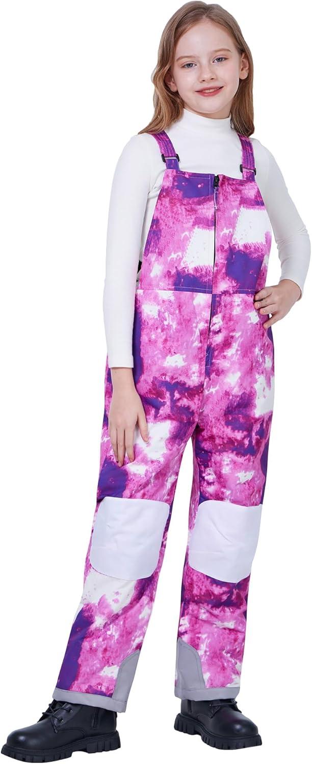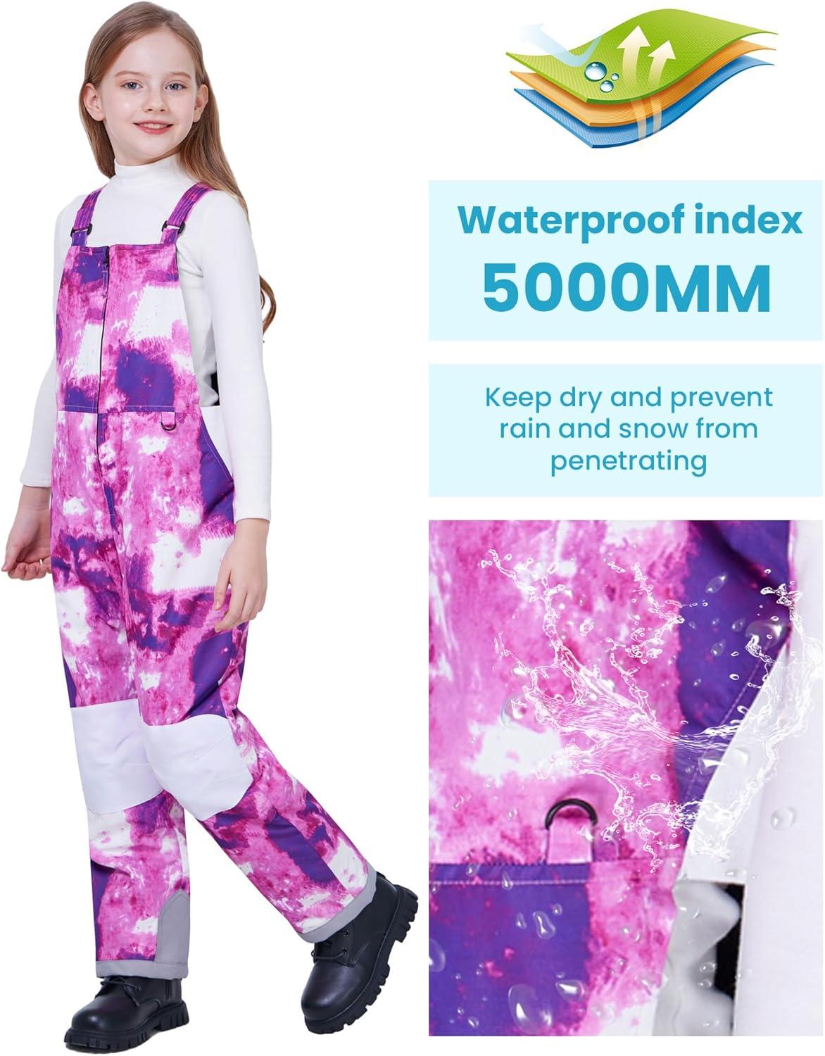 WULFUL Kids Waterproof Ski Bib Boys Girls Winter Snow Pants(Purple Camo)