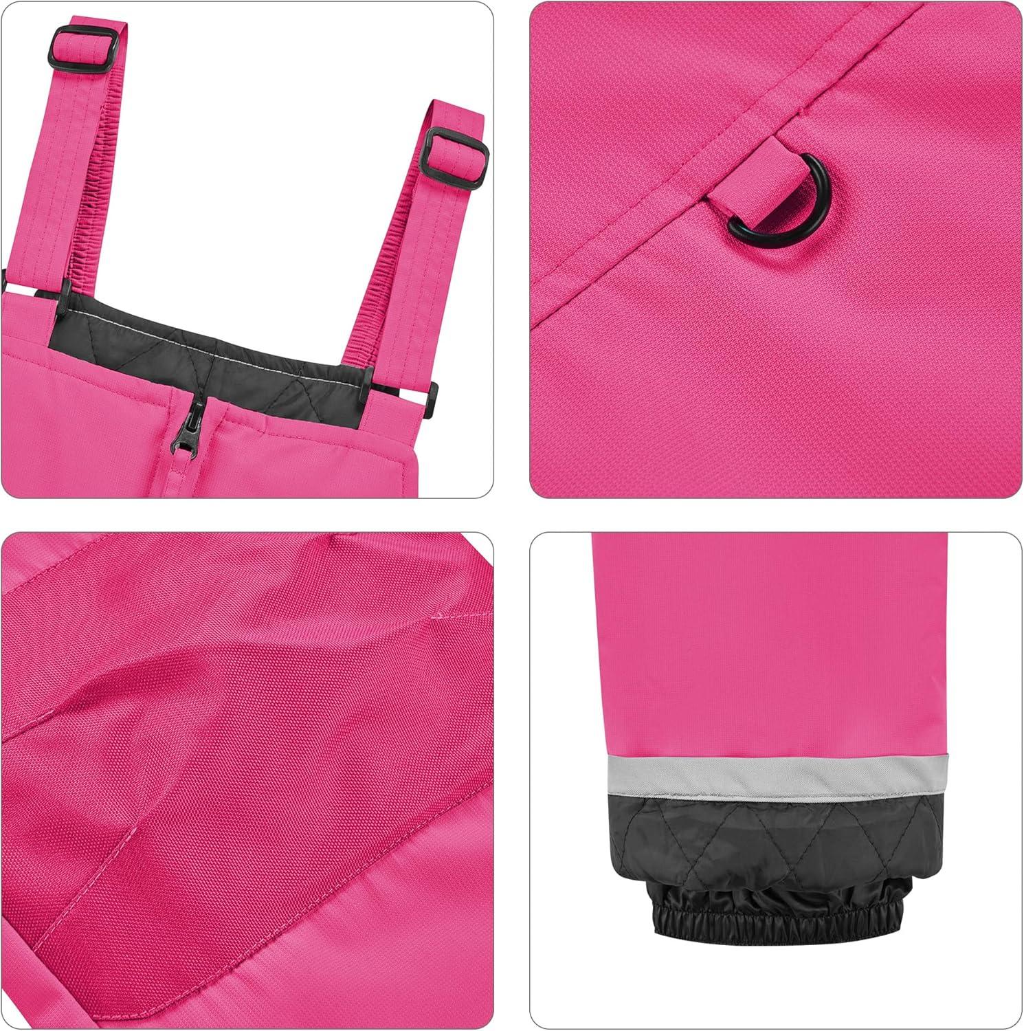 WULFUL Kids Waterproof Ski Bib Boys Girls Winter Snow Pants(Rose Red)