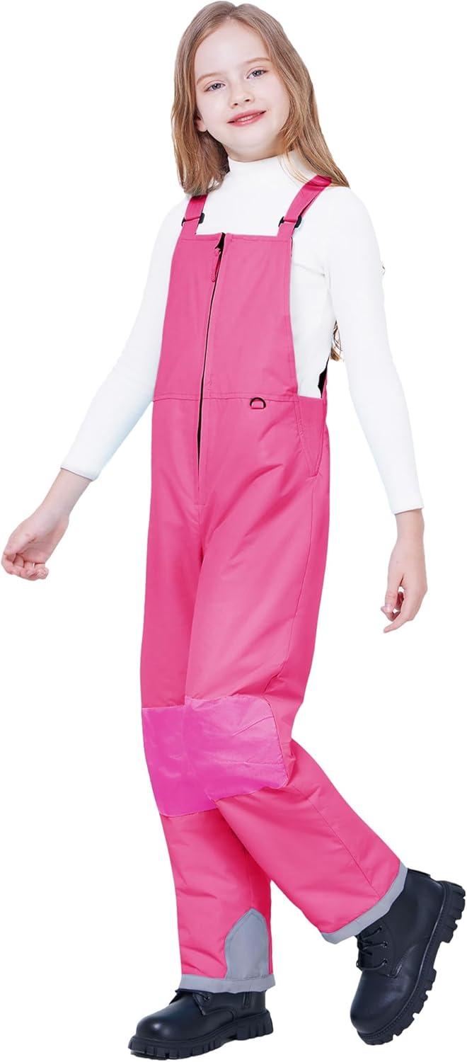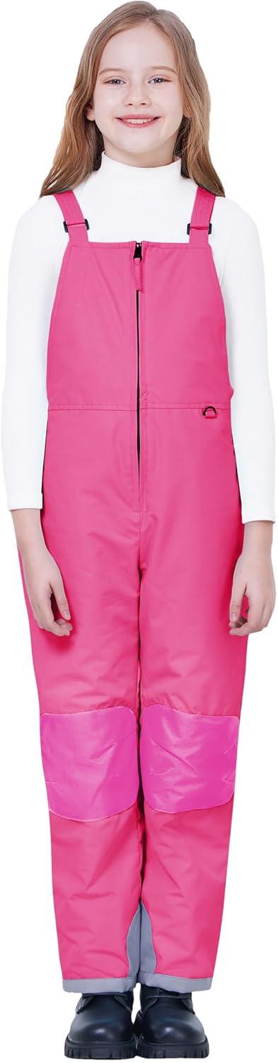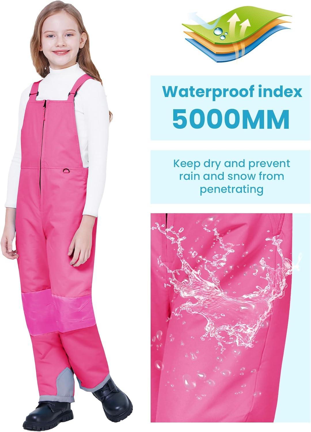 imageWULFUL Kids Waterproof Ski Bib Boys Girls Winter Snow PantsRose Red