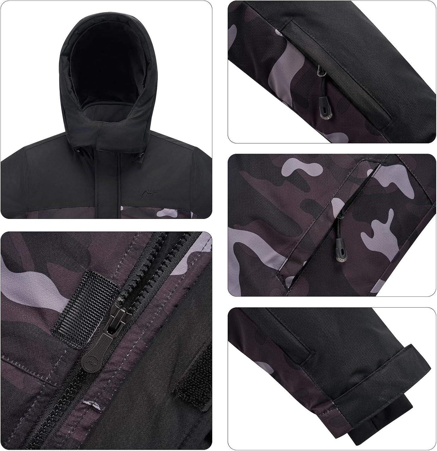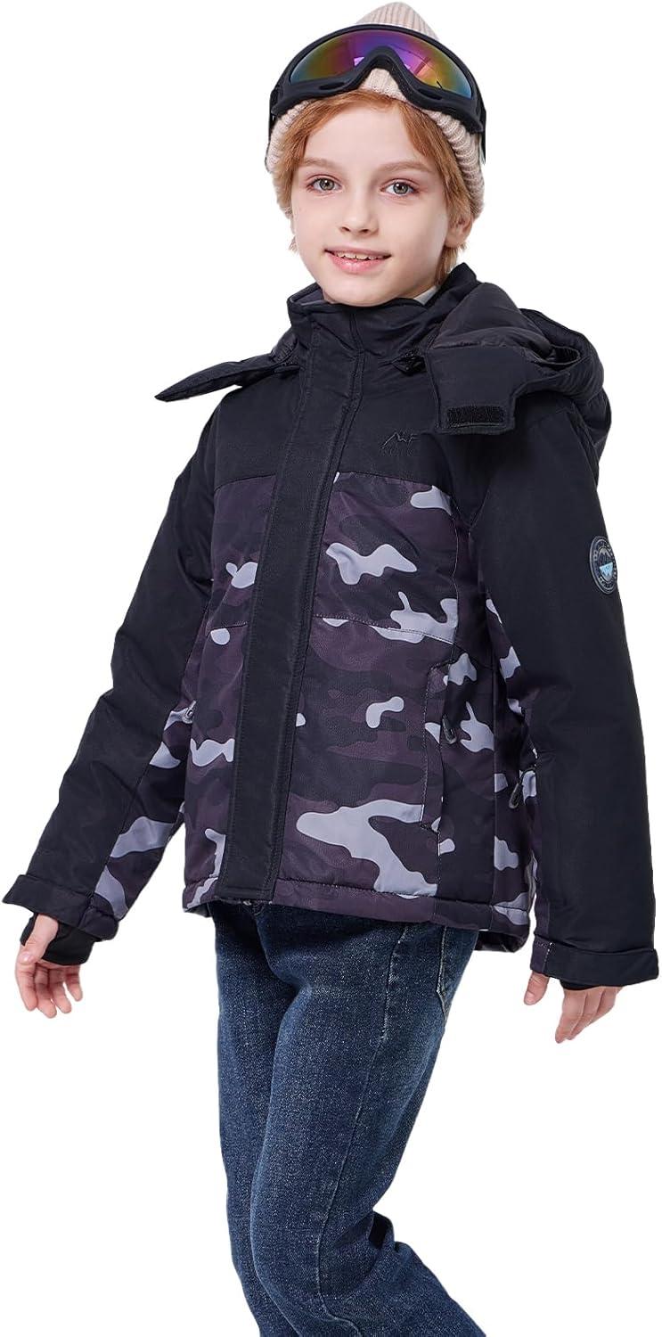 WULFUL Kid’s Waterproof Ski Jacket Warm Fleece Hooded Boy’s and Girl’s Winter Snow Coat Outwear,Windproof RainCoat(Black Camouflage)