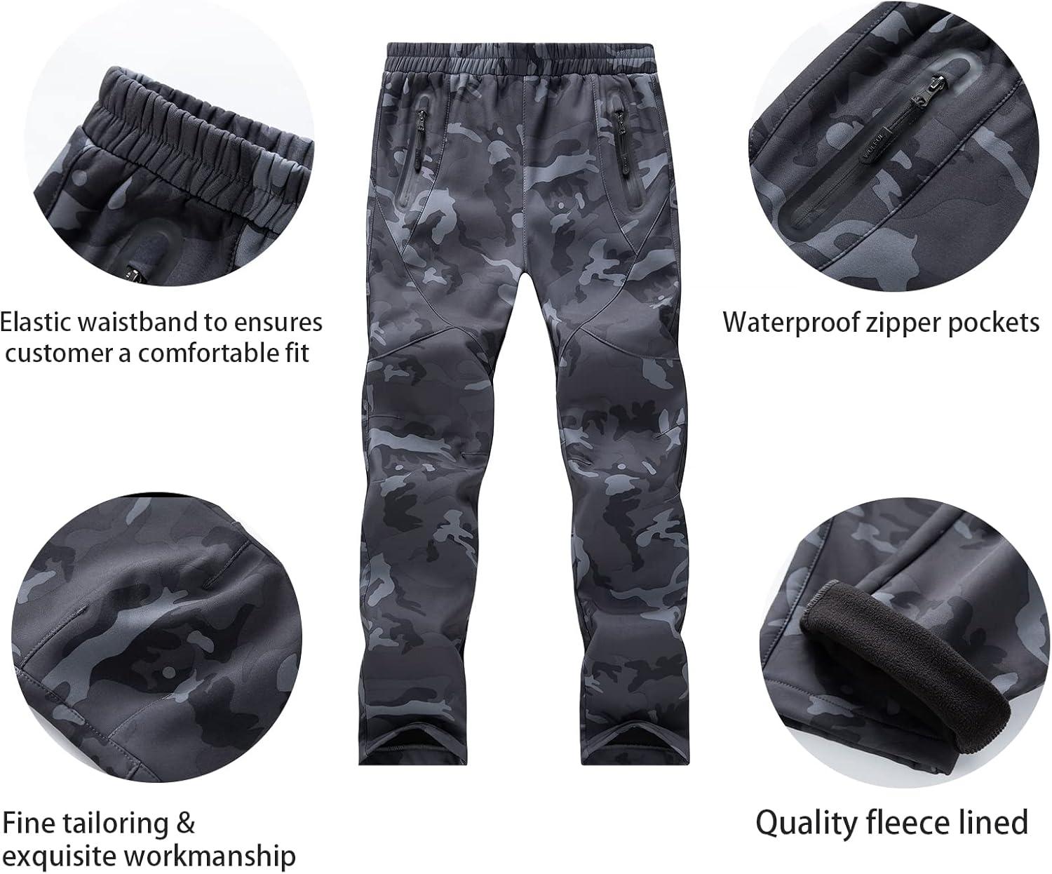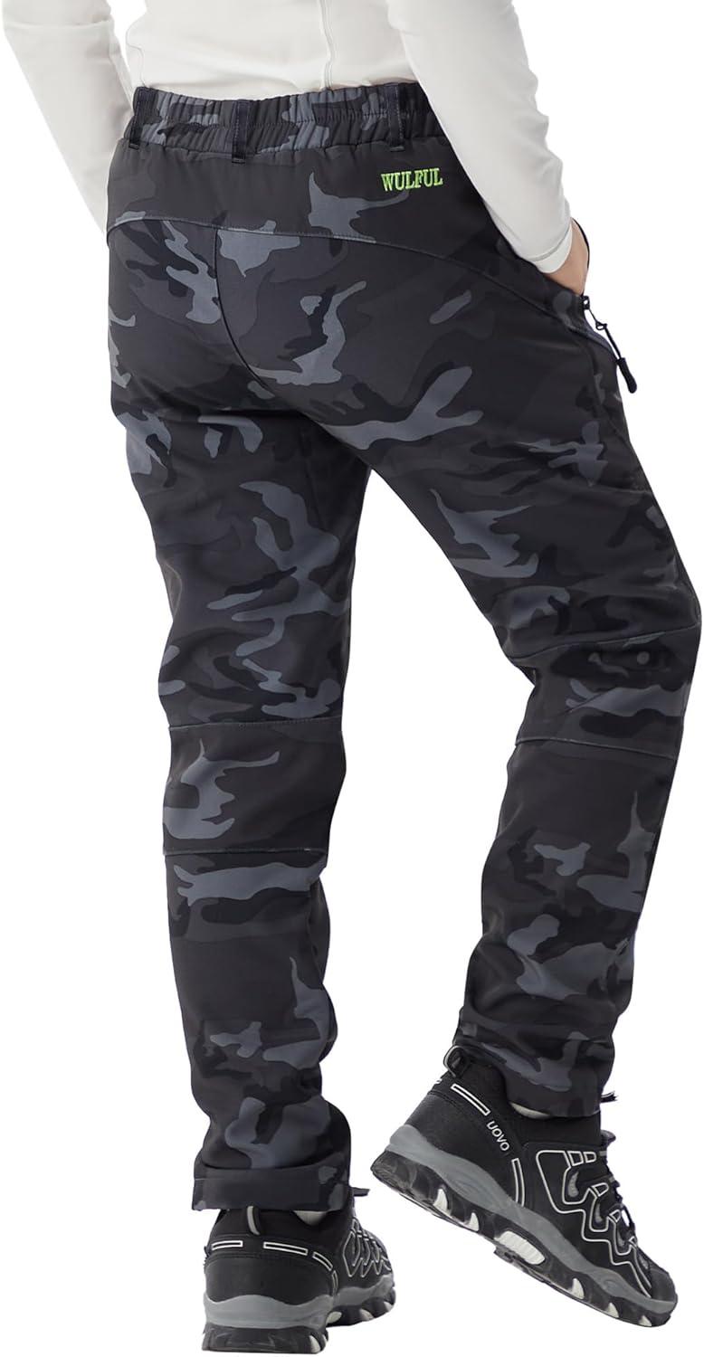 WULFUL Kids Waterproof Snow Ski Pants Boys Girls Outdoor Winter Fleece Hiking Insulated Snowboard Pants(Camo)