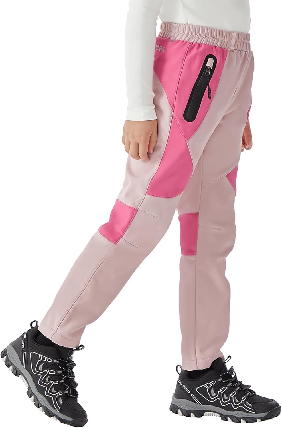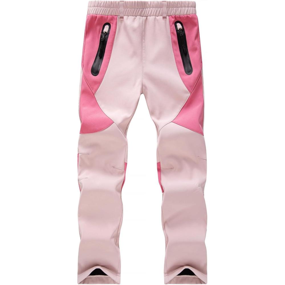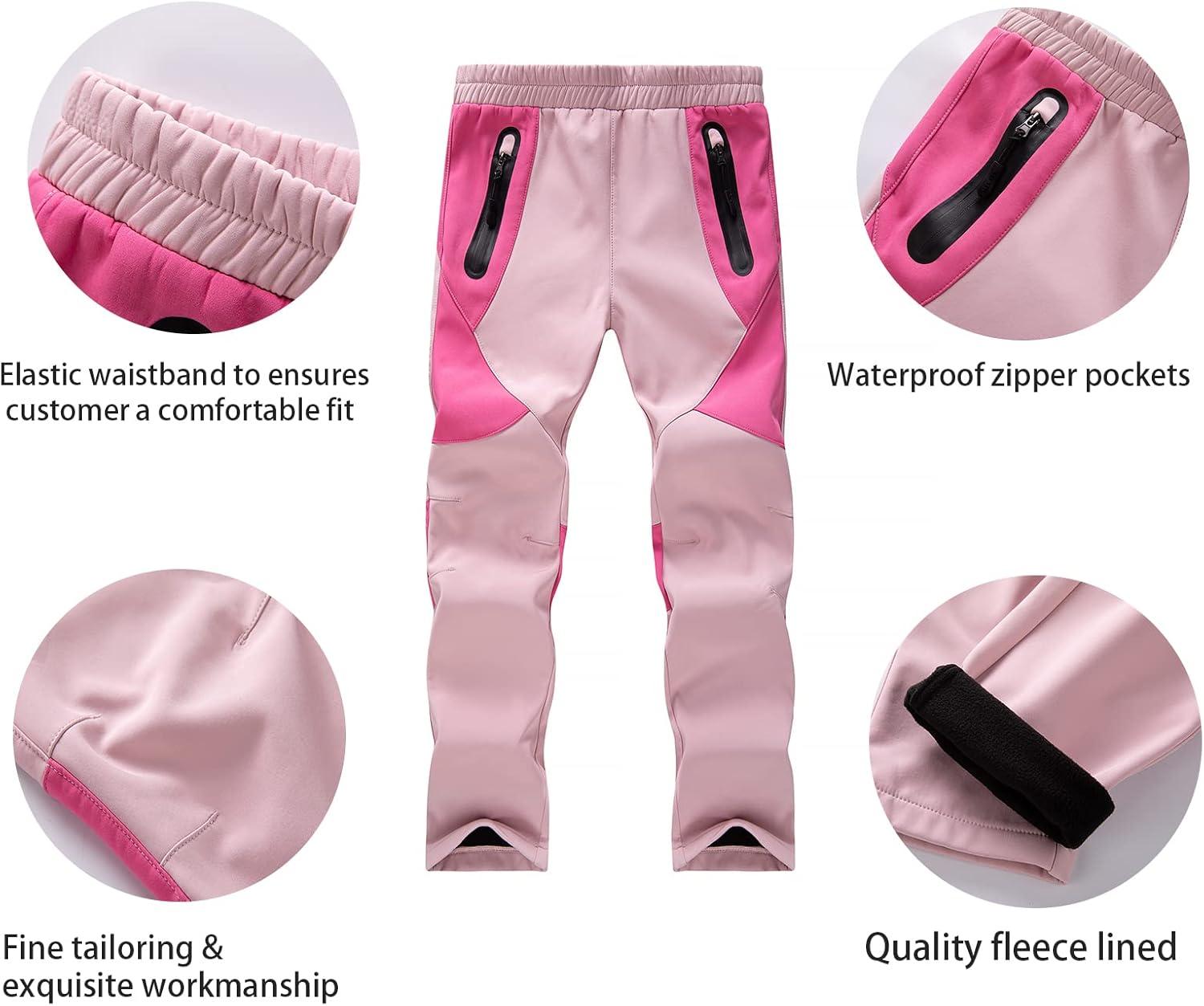 WULFUL Kids Waterproof Snow Ski Pants Boys Girls Outdoor Winter Fleece Hiking Insulated Snowboard Pants(Pink)