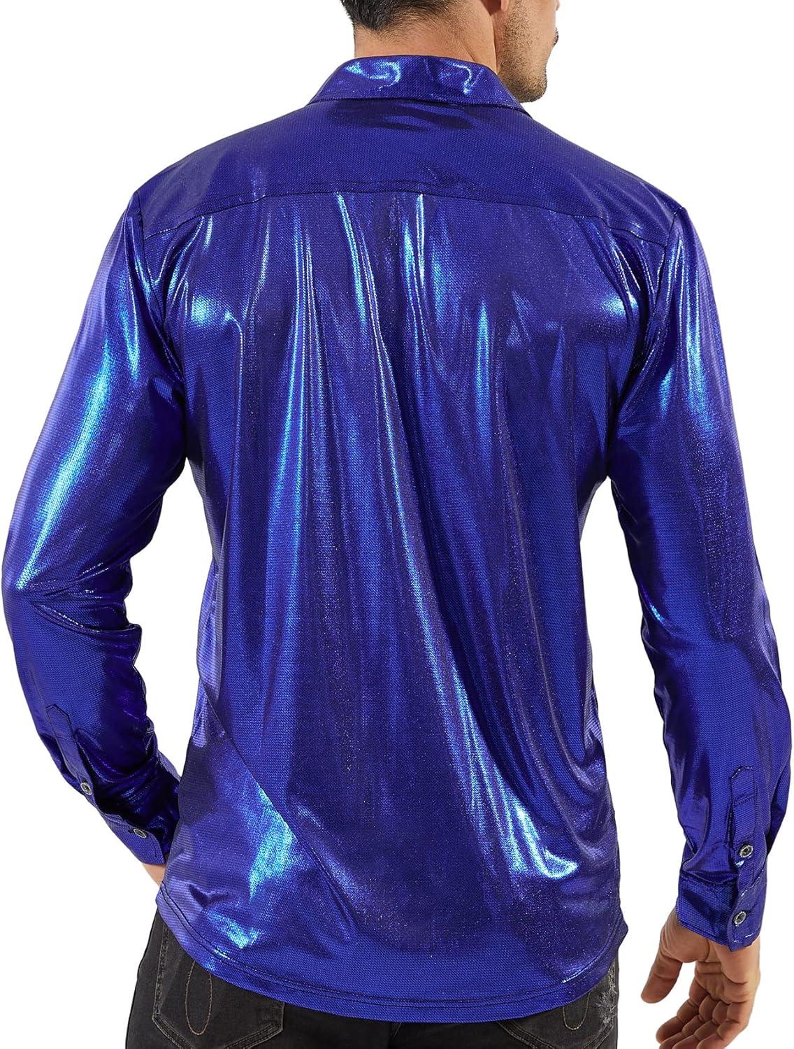 imageWULFUL Men Dress Shirt Sequins Long Sleeve Button Down Shirt Luxury Disco Party Nightclub Christmas Prom CostumeBlue 0175