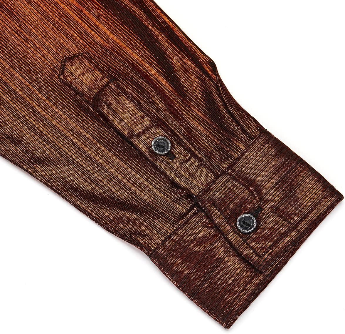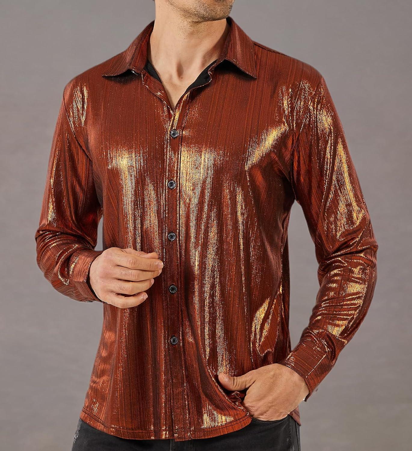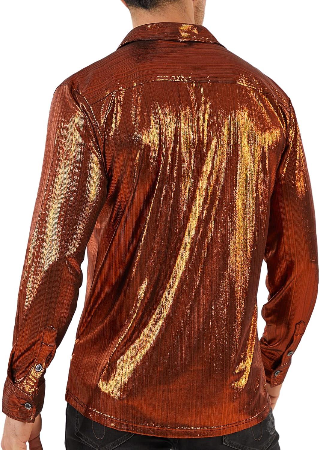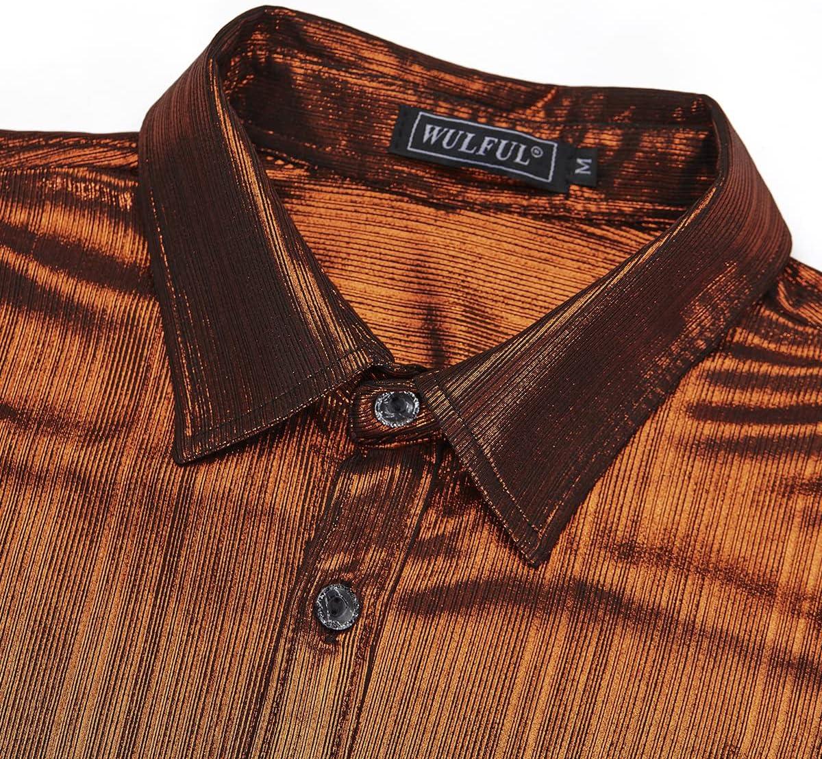 WULFUL Men Dress Shirt Sequins Long Sleeve Button Down Shirt Luxury Disco Party Nightclub Christmas Prom Costume(Brown0157)