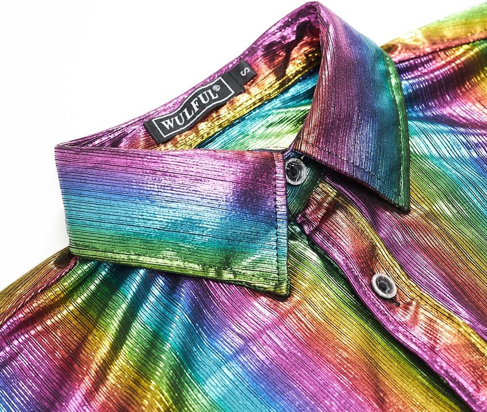 WULFUL Men Dress Shirt Sequins Long Sleeve Button Down Shirt Luxury Disco Party Nightclub Christmas Prom Costume(Multicolor022)