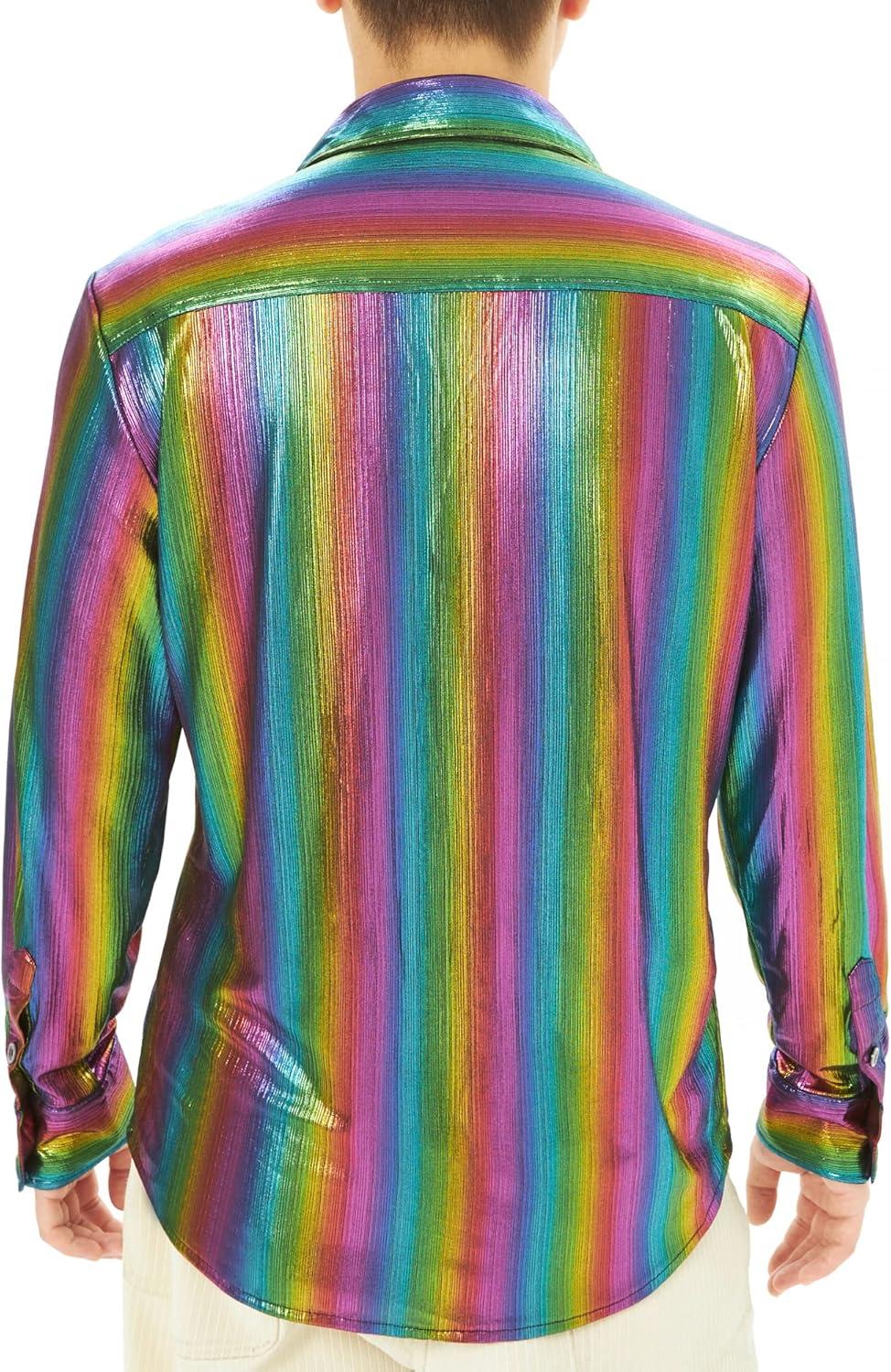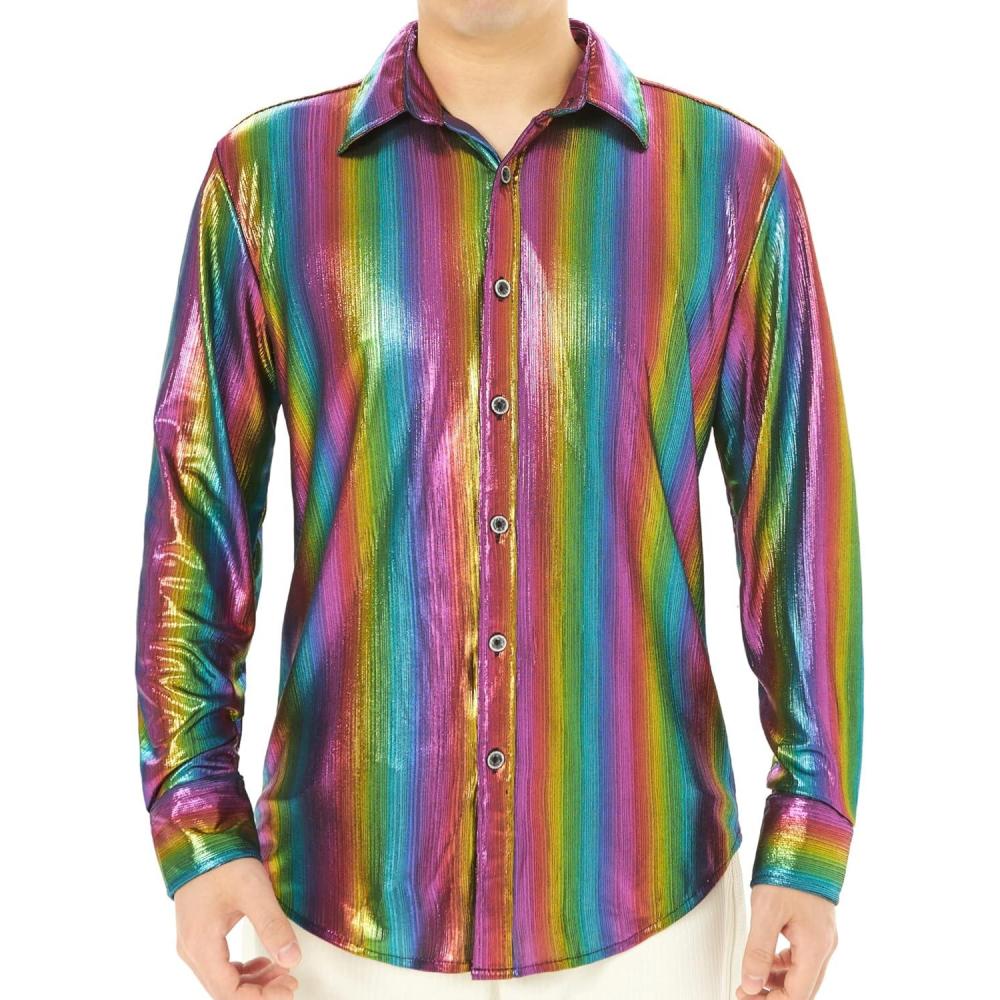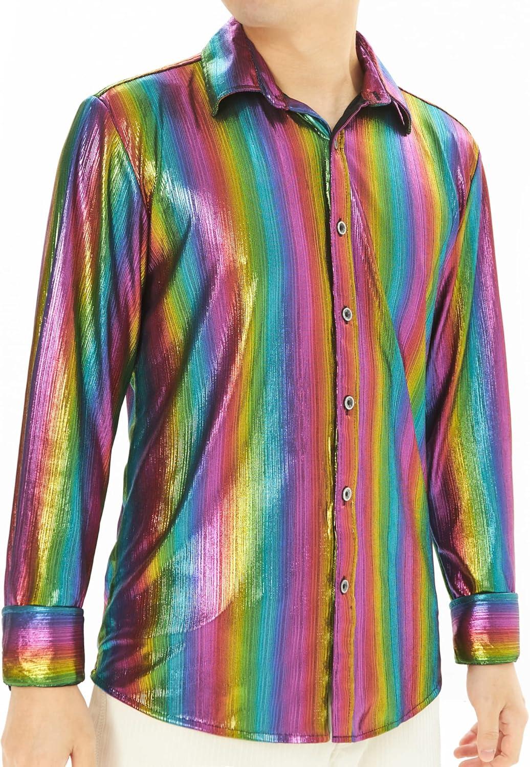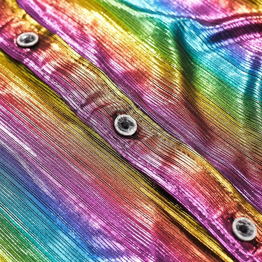 WULFUL Men Dress Shirt Sequins Long Sleeve Button Down Shirt Luxury Disco Party Nightclub Christmas Prom Costume(Multicolor01)
