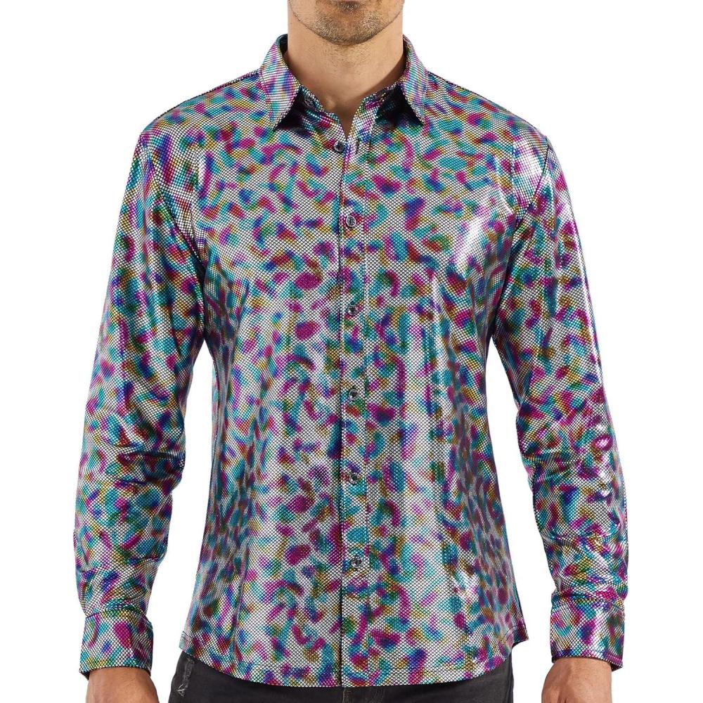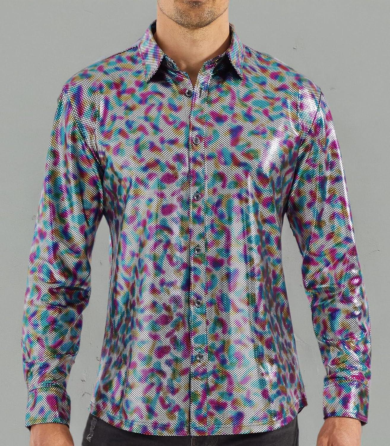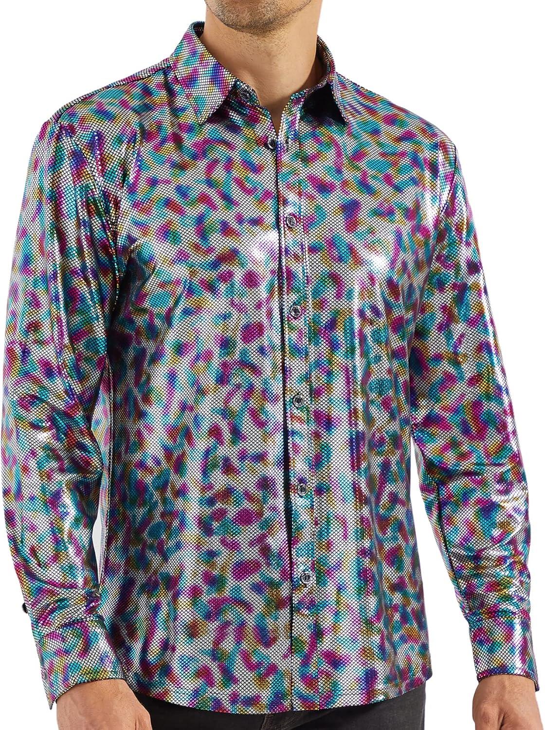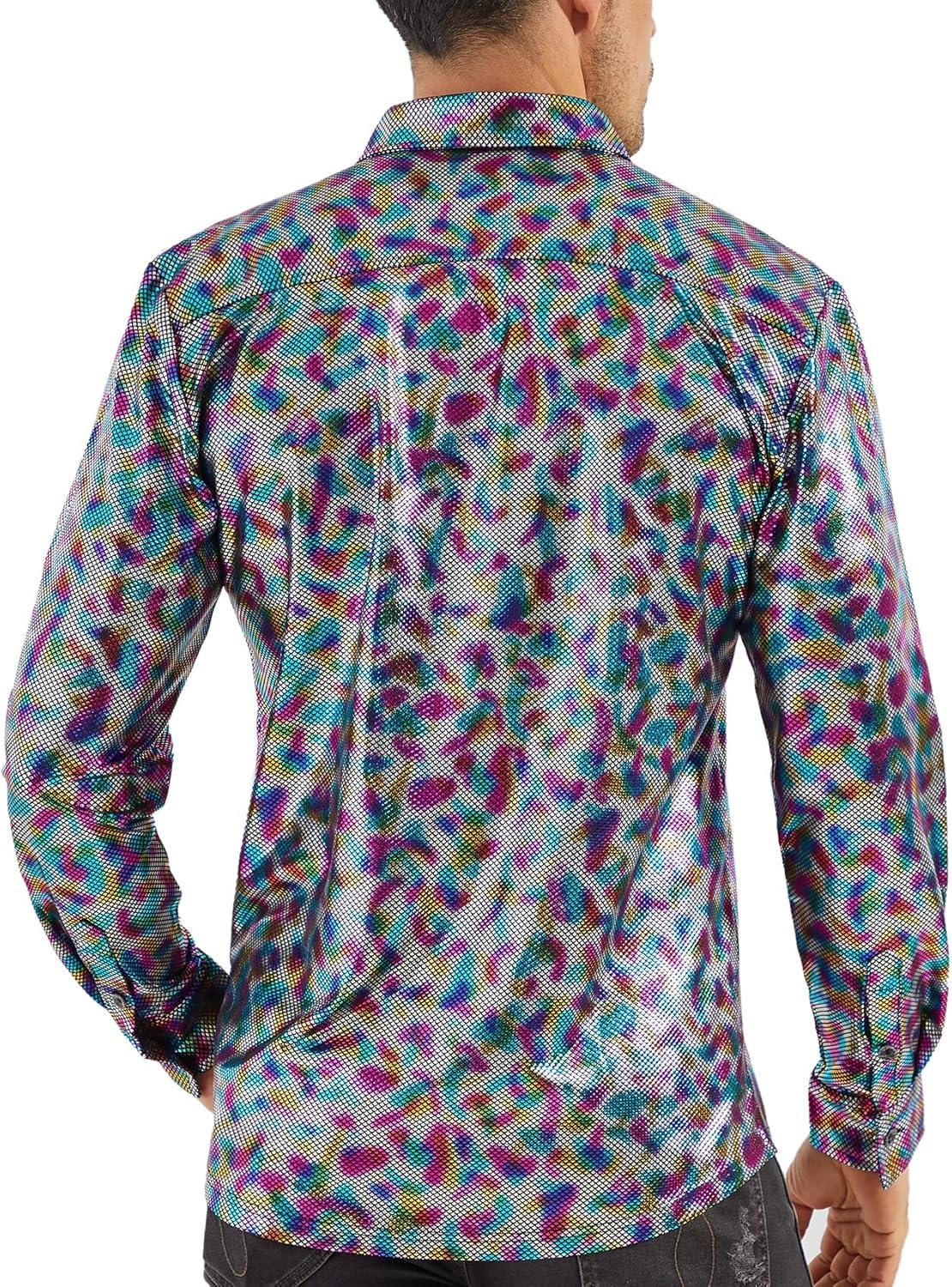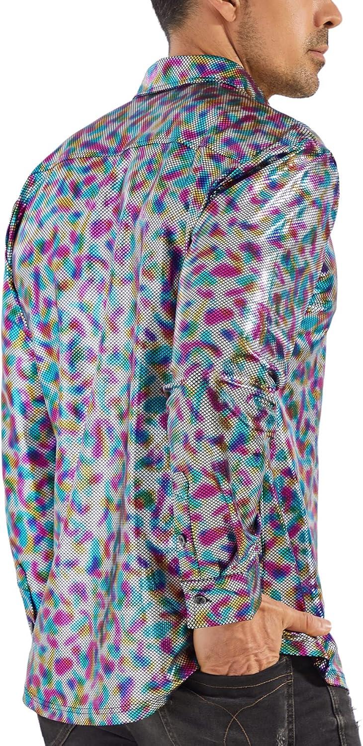 WULFUL Men Dress Shirt Sequins Long Sleeve Button Down Shirt Luxury Disco Party Nightclub Christmas Prom Costume(Multicolor01)