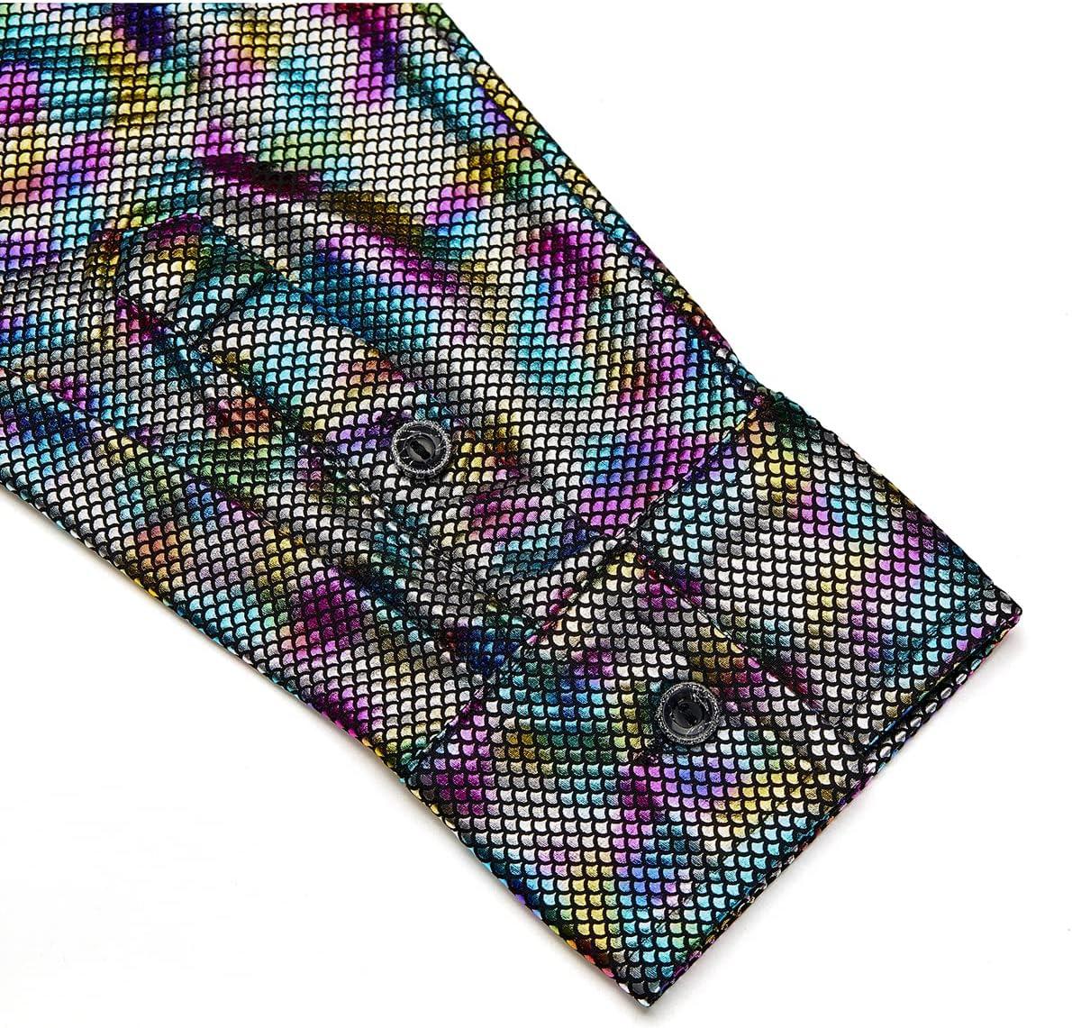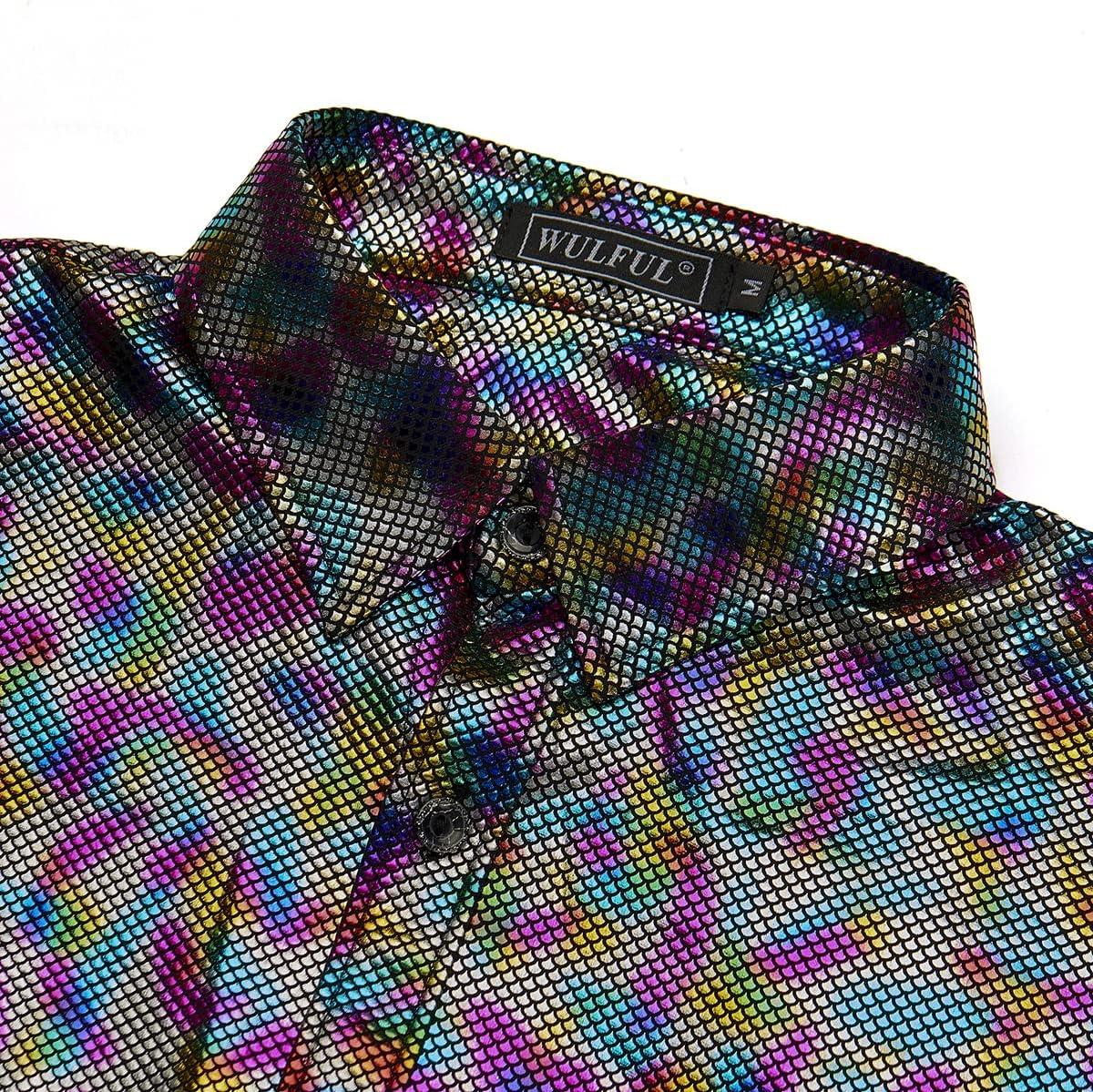 WULFUL Men Dress Shirt Sequins Long Sleeve Button Down Shirt Luxury Disco Party Nightclub Christmas Prom Costume(Multicolor022)